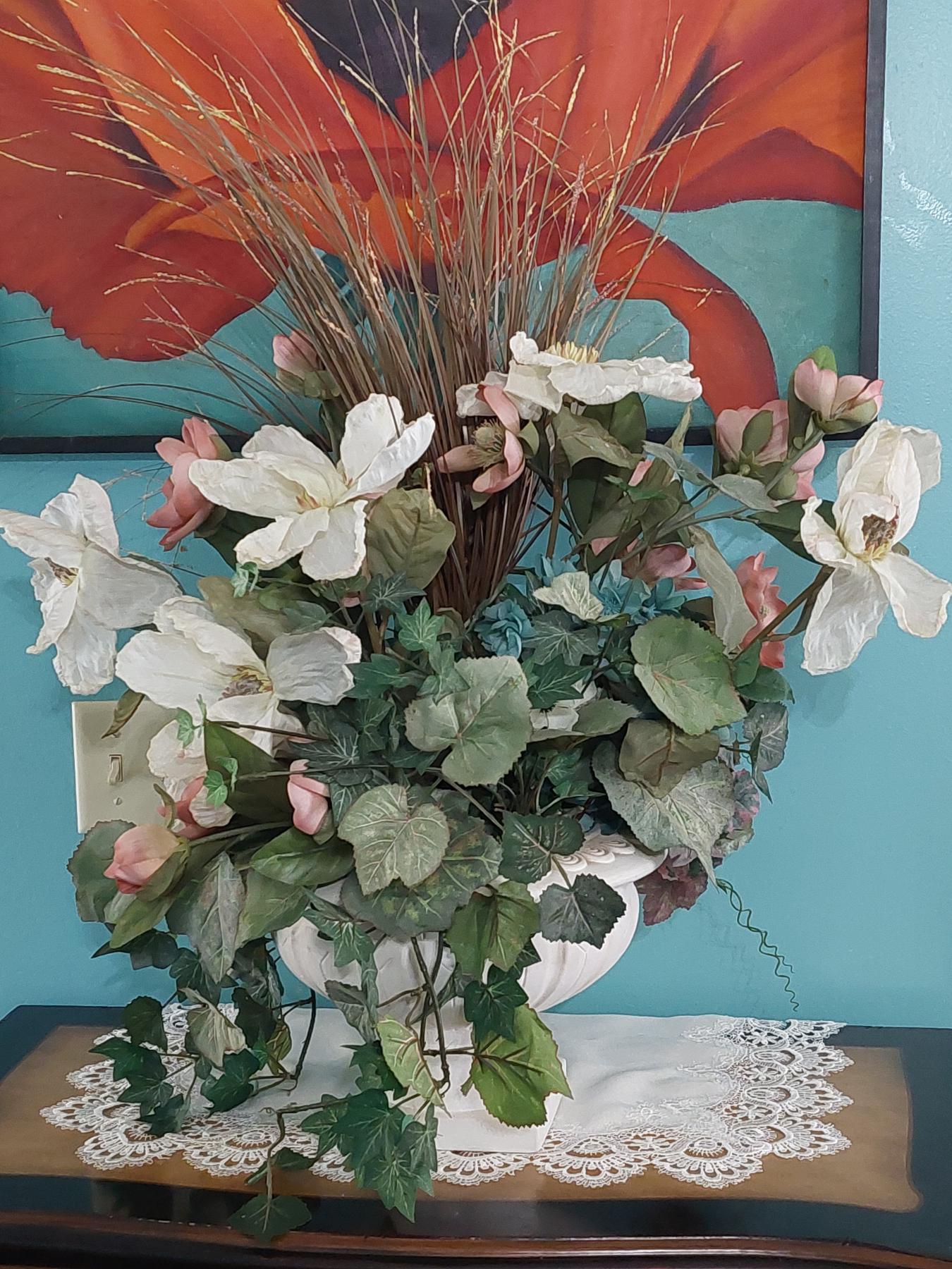 Floral Decorated 13" Vase As Shown - 32" Overall