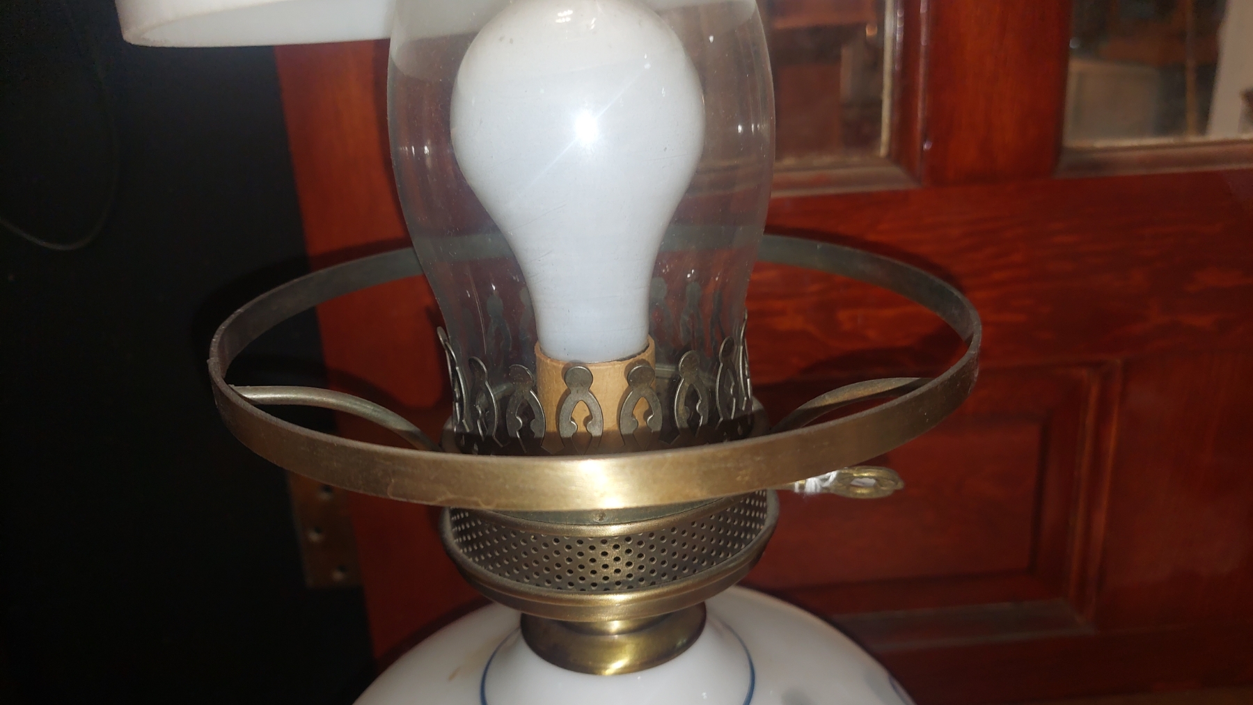 Floral Decorated 2 Globe Parlor Lamp As Shown - Ruffled Upper Globe - 24" Tall - Perfect