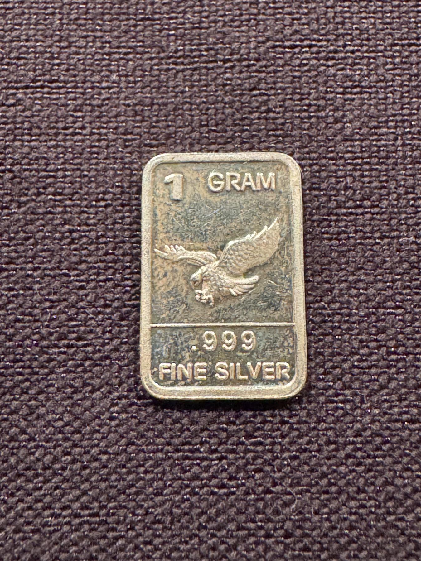 Flying Eagle 1 Gram Troy Oz Fine Pure .999 Silver Bar - Mint Condition