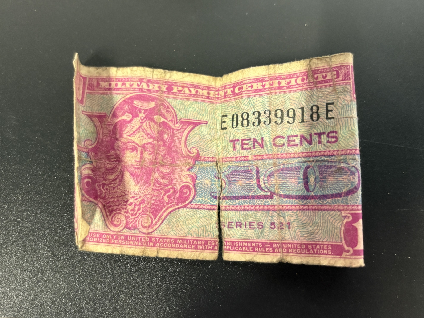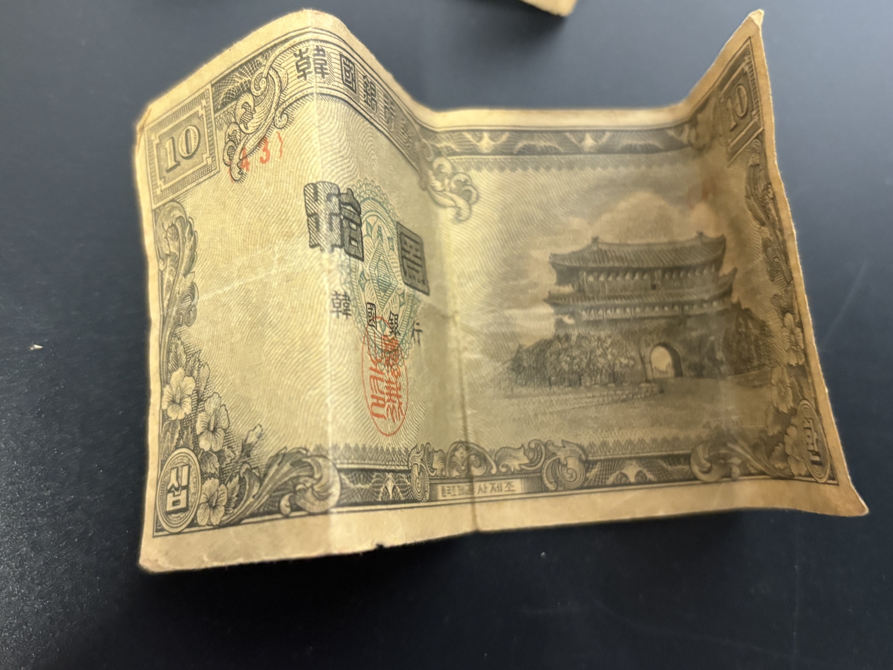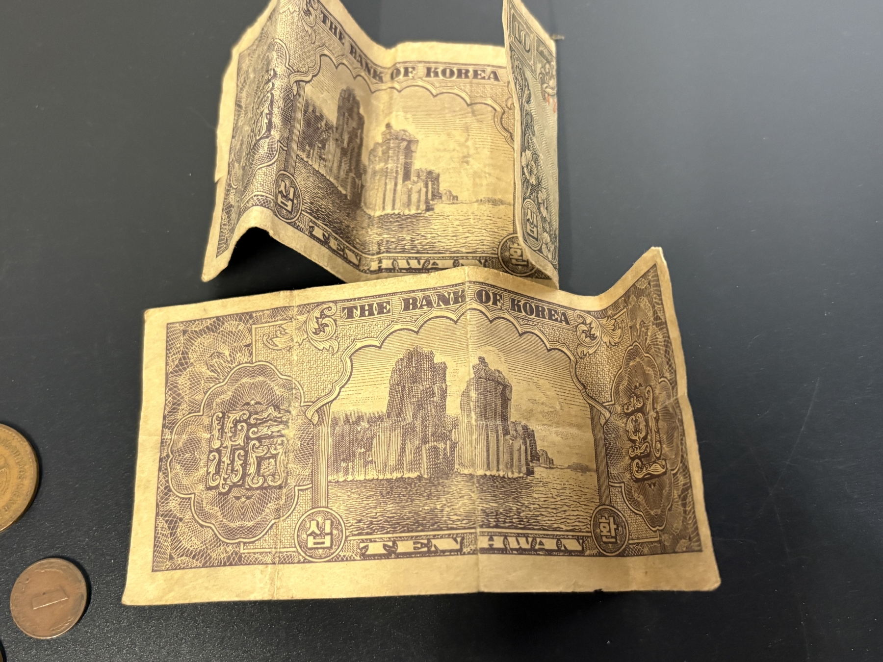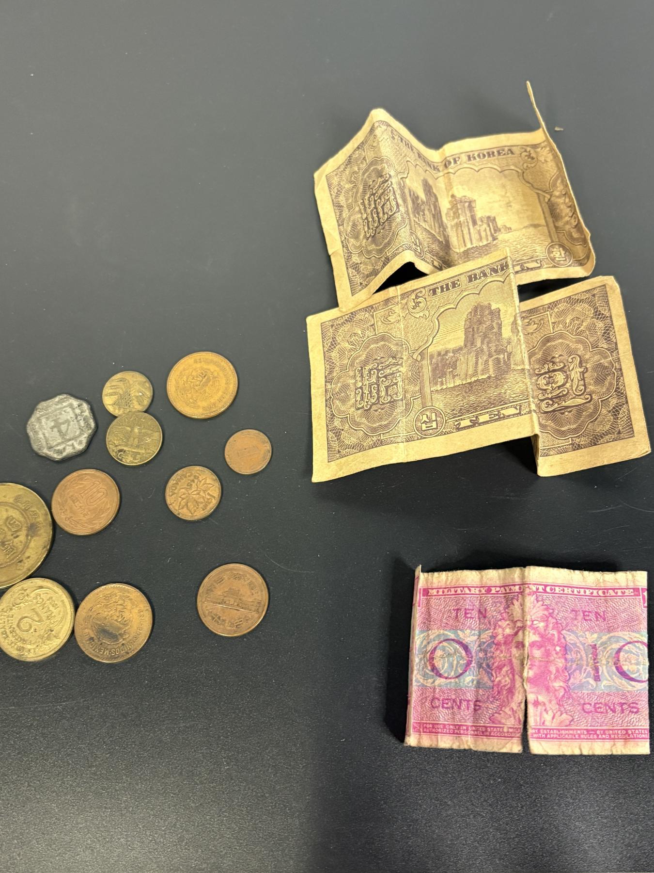 Foreign Paper Money & Coins - Includes Military Payment Certificate Ten Cents - Bank of Korea - Foreign Coins