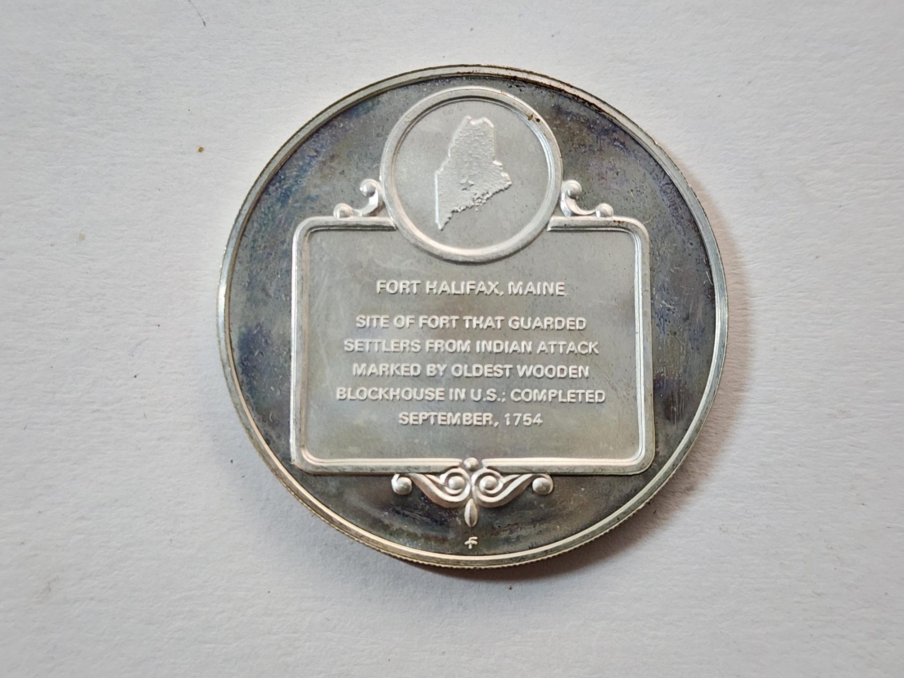 Fort Halifax Maine Commemorative Sterling Silver Coin TW: 25.5g