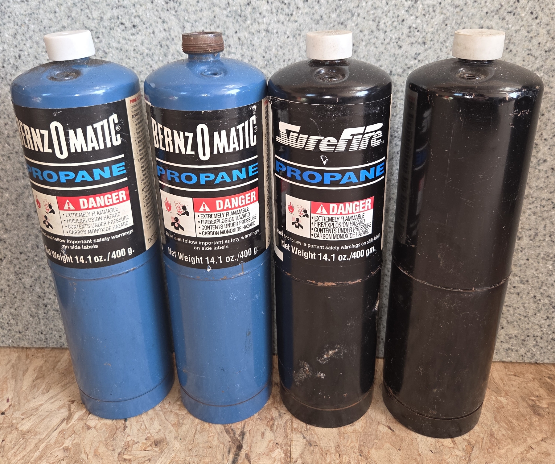 Four 14.1oz Propane Tanks 3 Full, 1 Nearly Empty