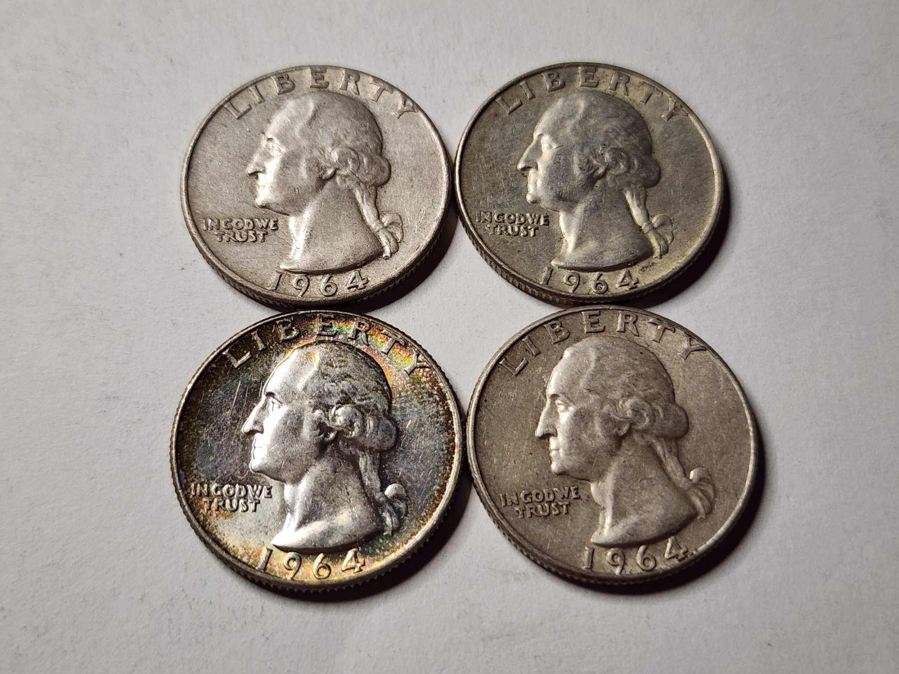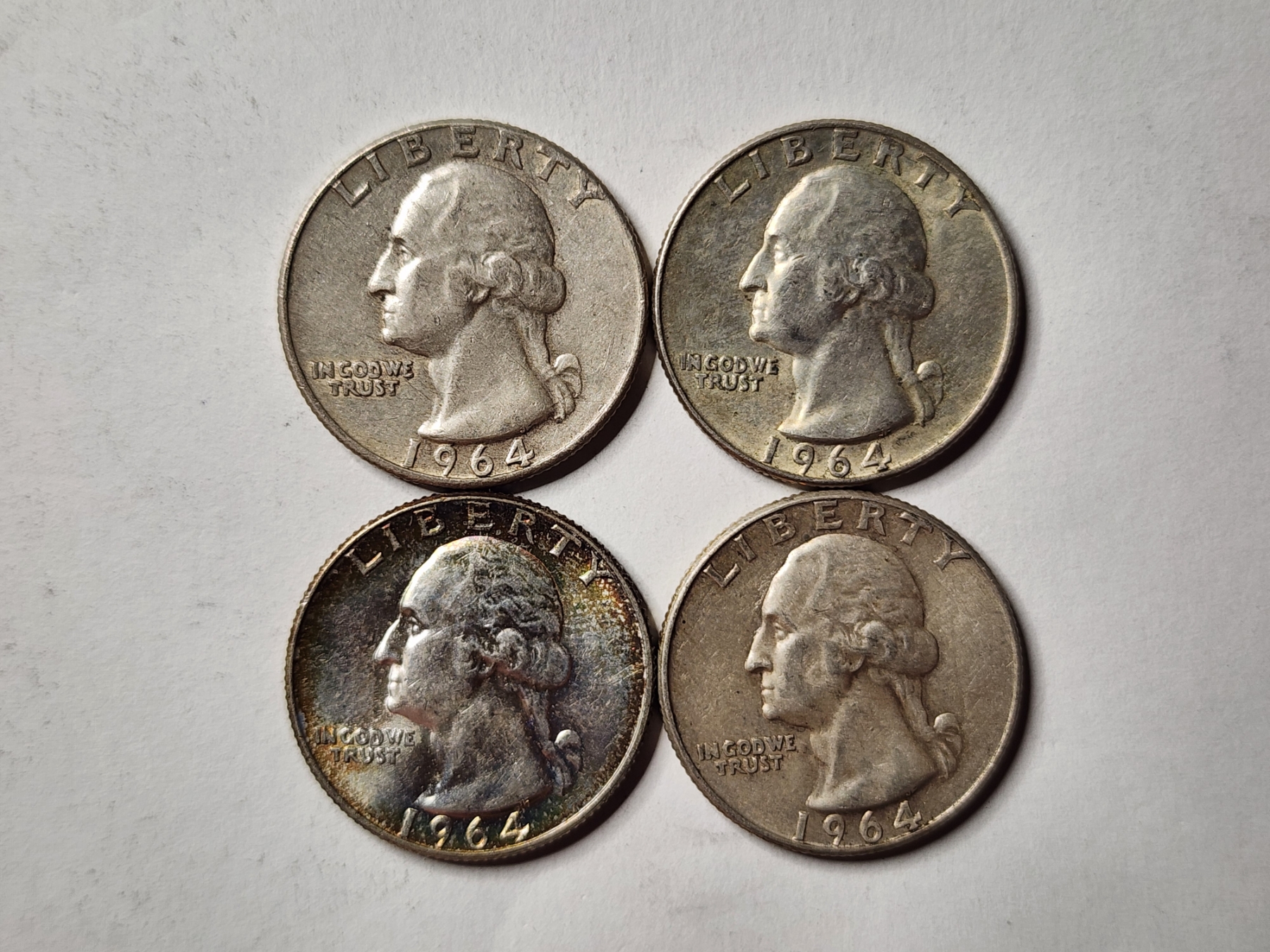 Four 90% Silver United States 1964 Washington Quarters ~ $1.00 in Face Value! ~ VERY NICE COINS!