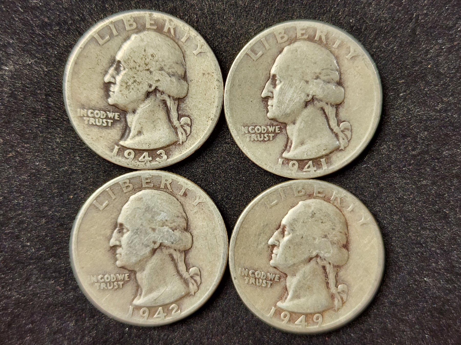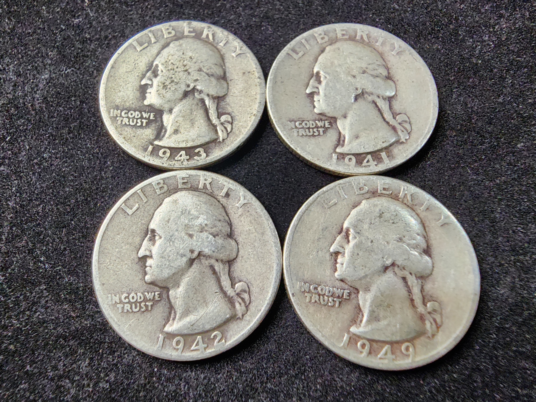 Four 90% Silver Washington Head Quarters - $1.00 Face Value