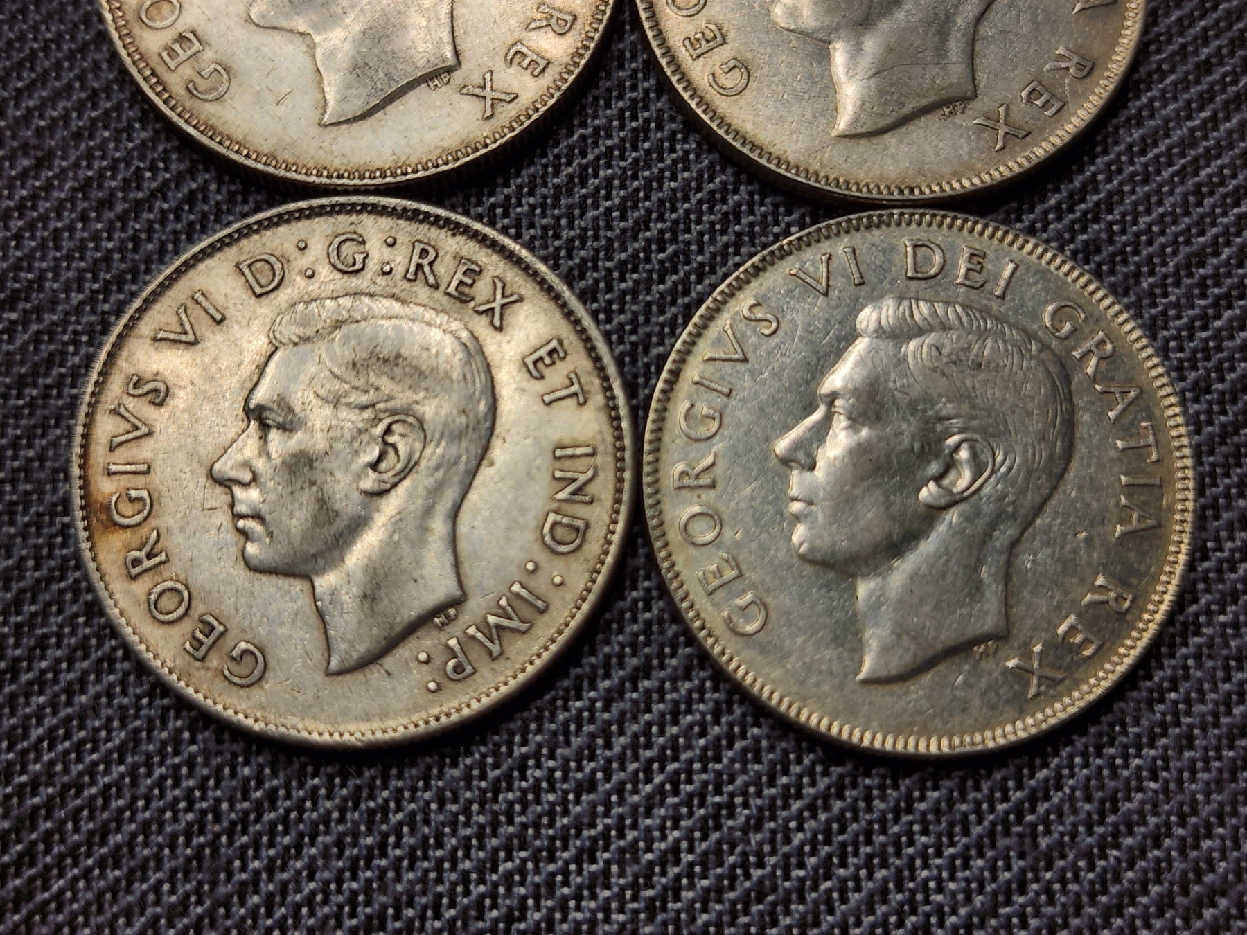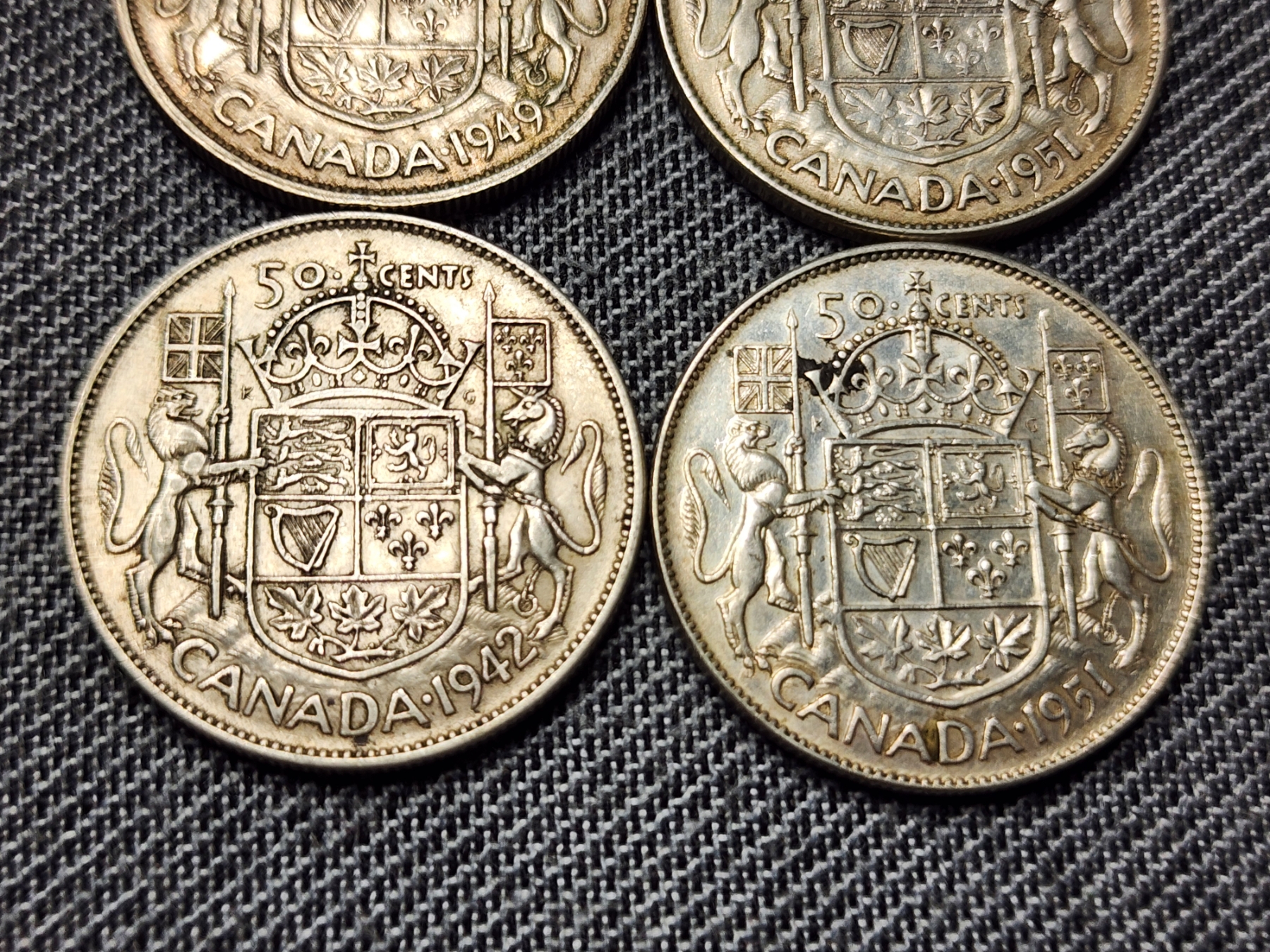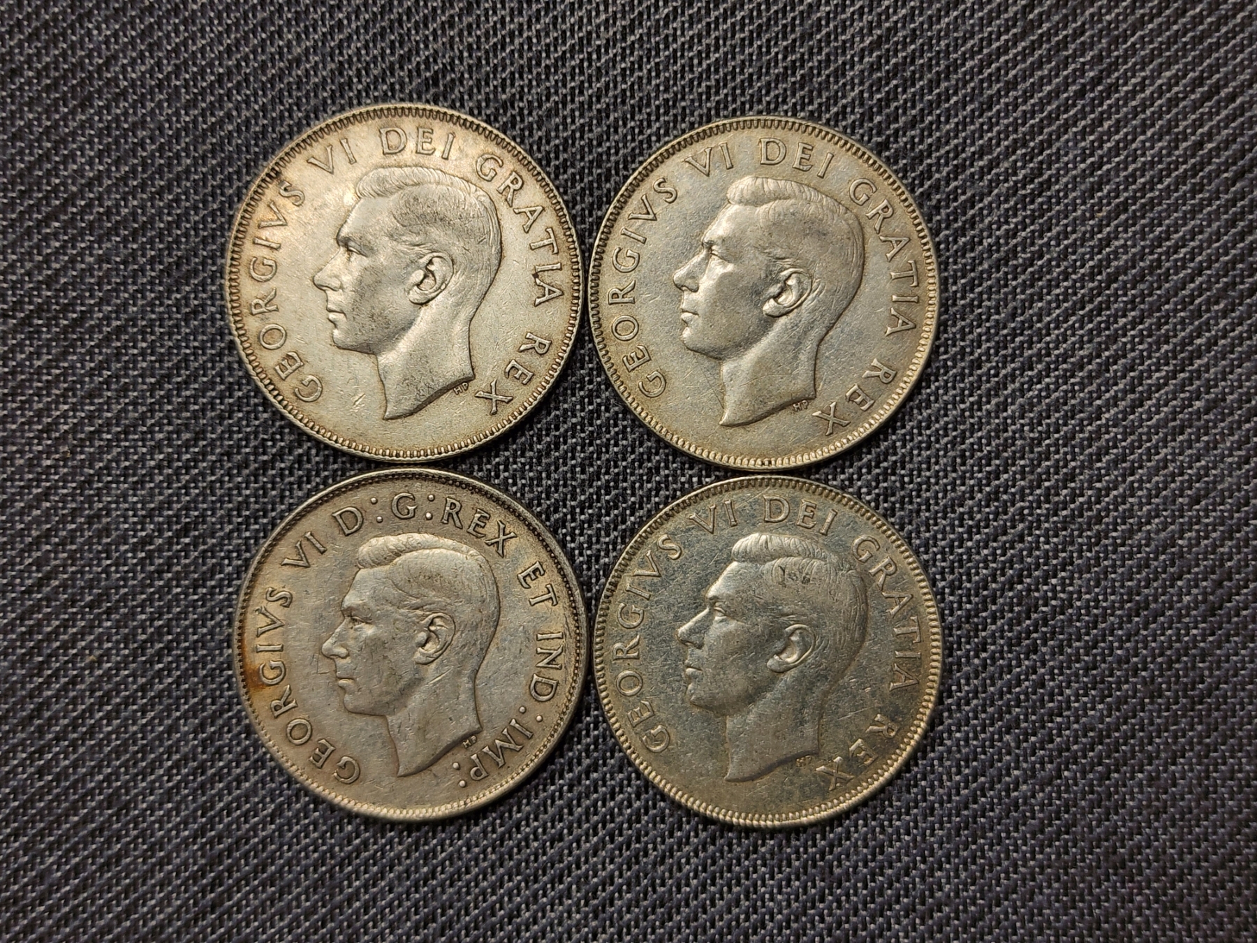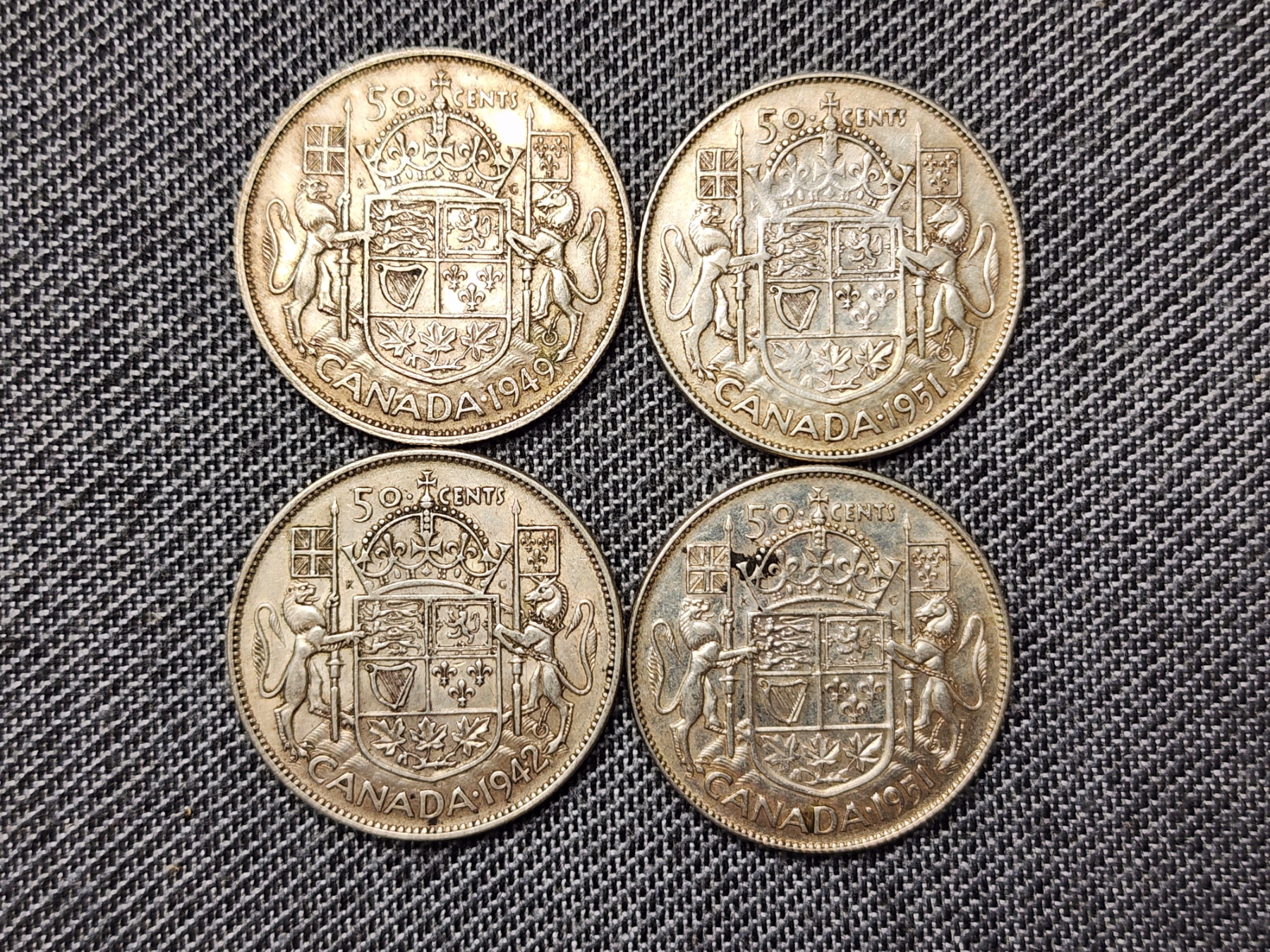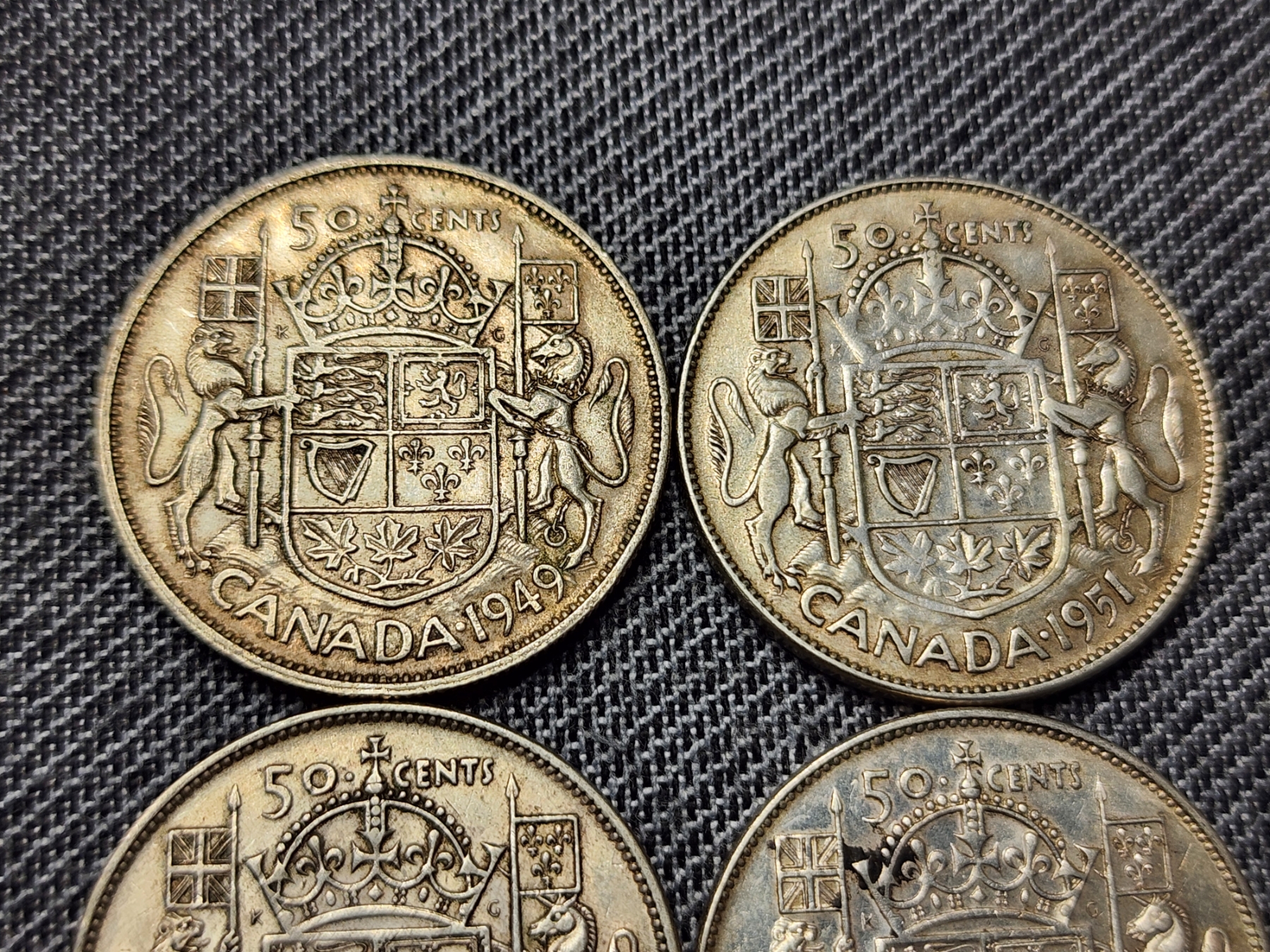 Four Assorted 80% Silver Canadian Half Dollars - ASW: 0.3 Oz Per Coin - About 1.2 Oz ASW Total!