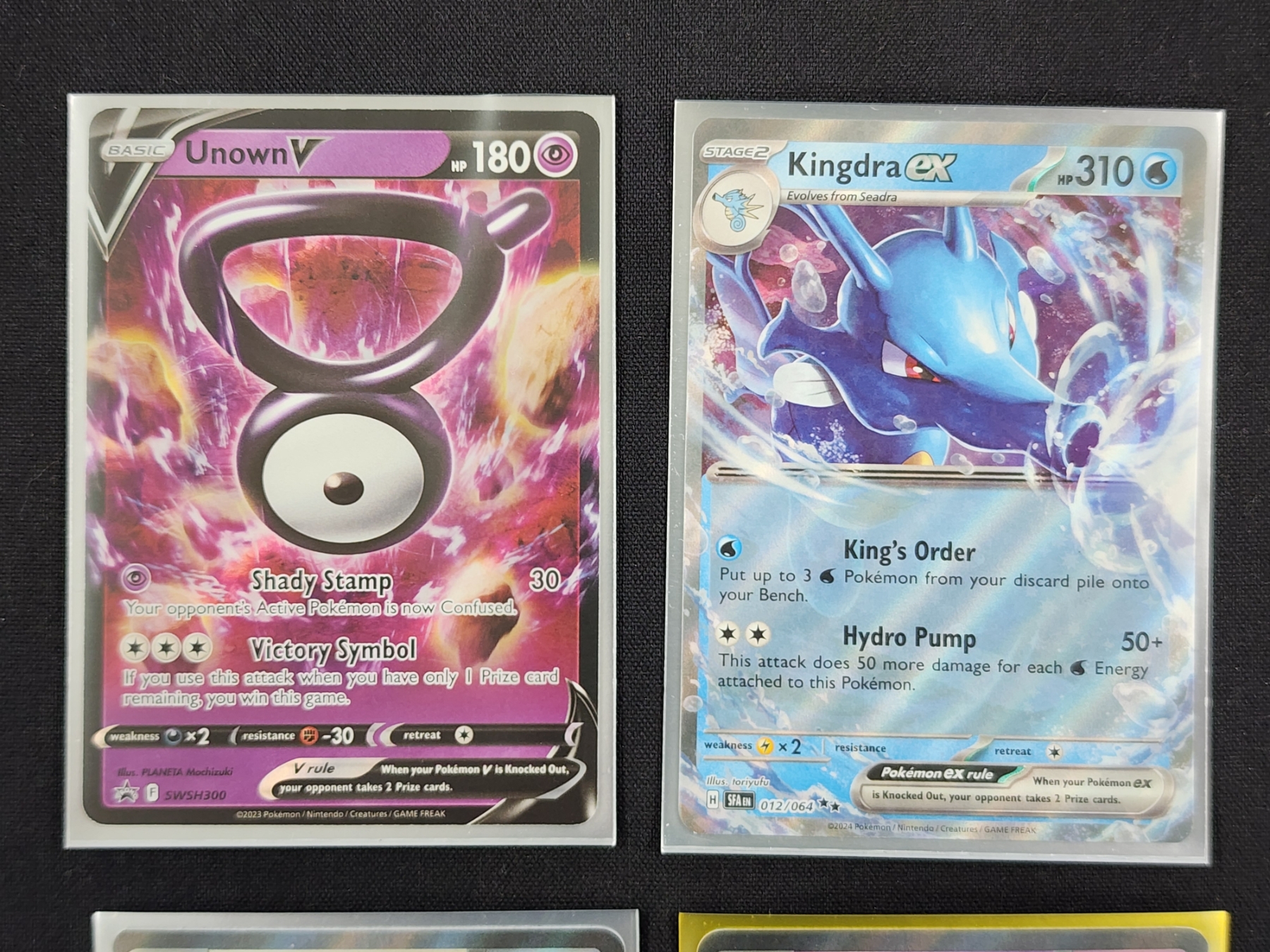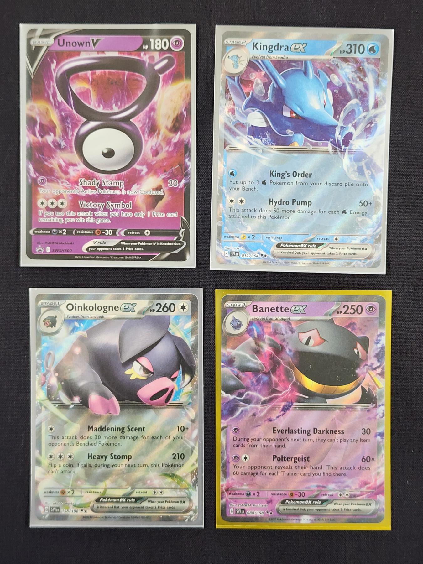 Four Assorted Holo Rare Pokemon Trading Cards Including Kingdra & Unown
