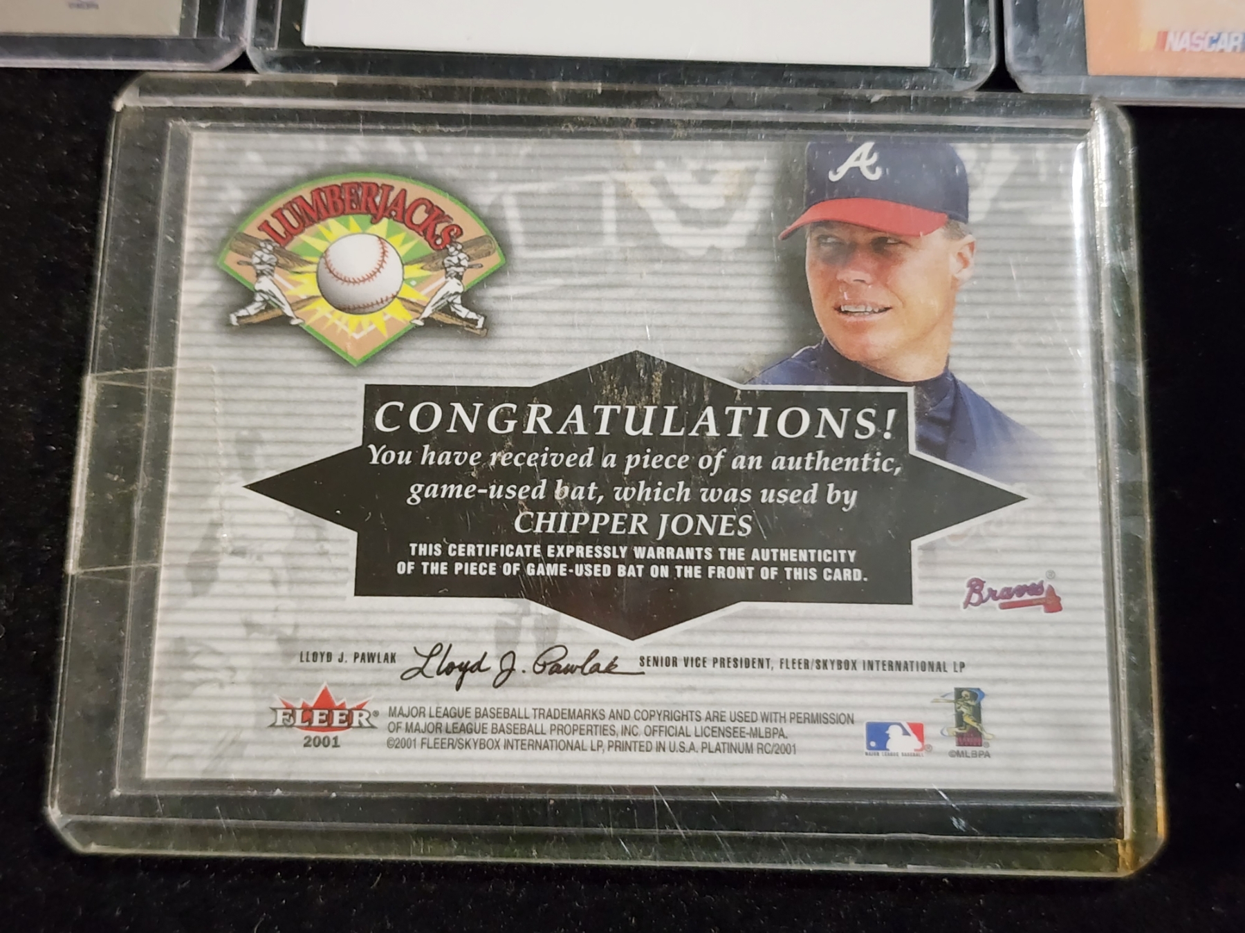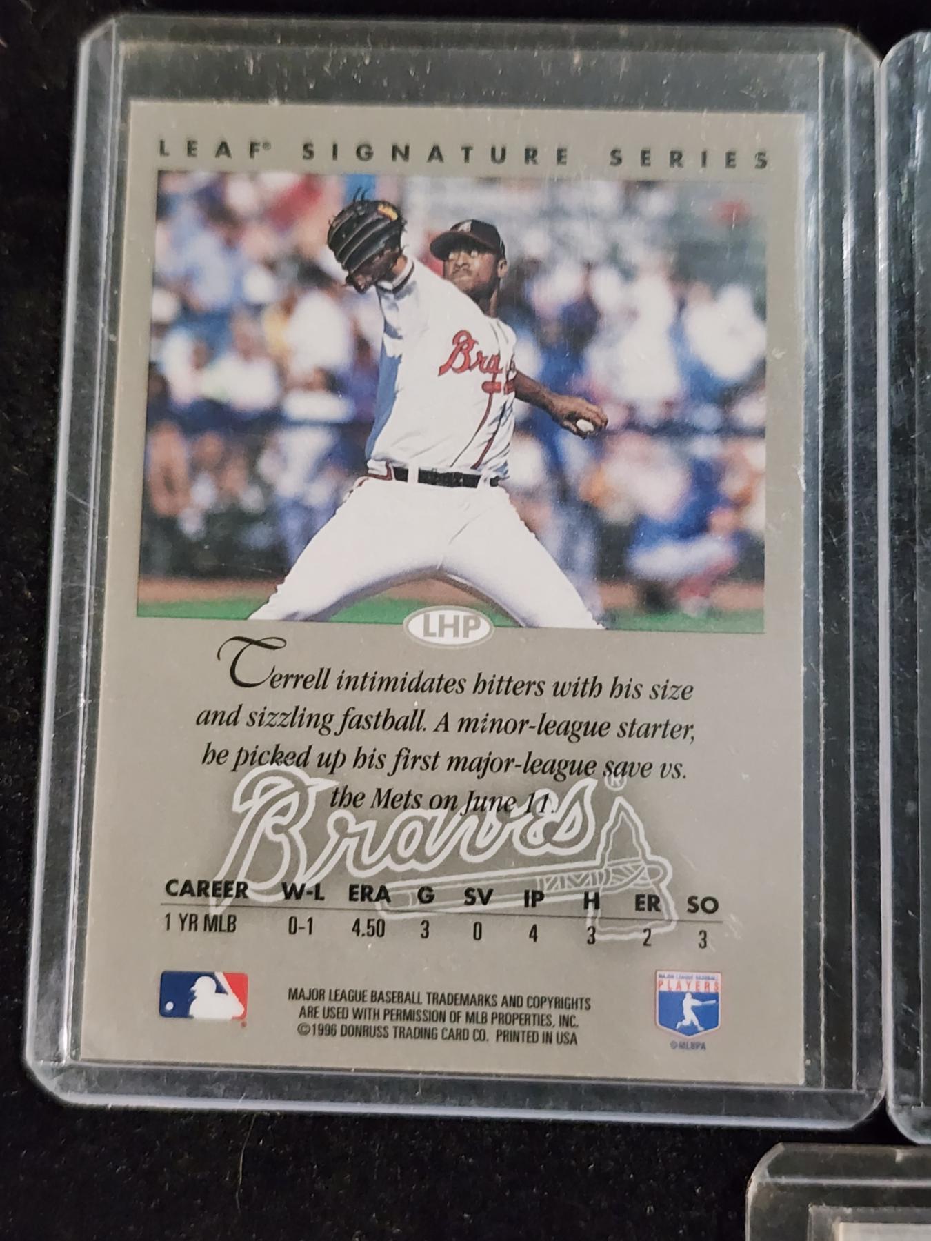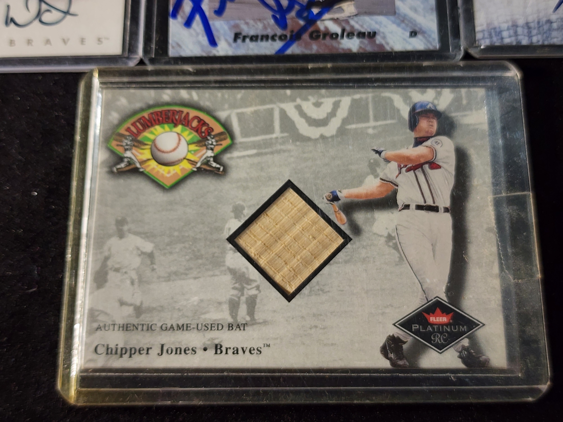 Four Assorted Trading Cards Ft. Three Autographed (Terrell Wade, Francois Groleau & David Pearson) & One Chipper Jones Game Used Bat Patch Card!
