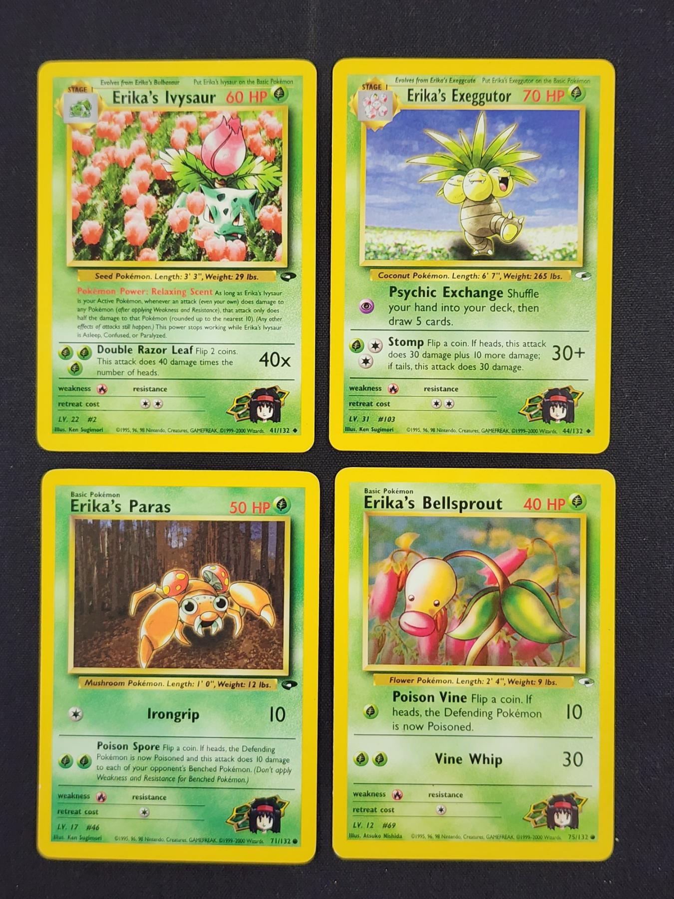 Four Assorted Vintage Gym Challenge & Gym Heroes Set Erika's Pokemon Trading Cards
