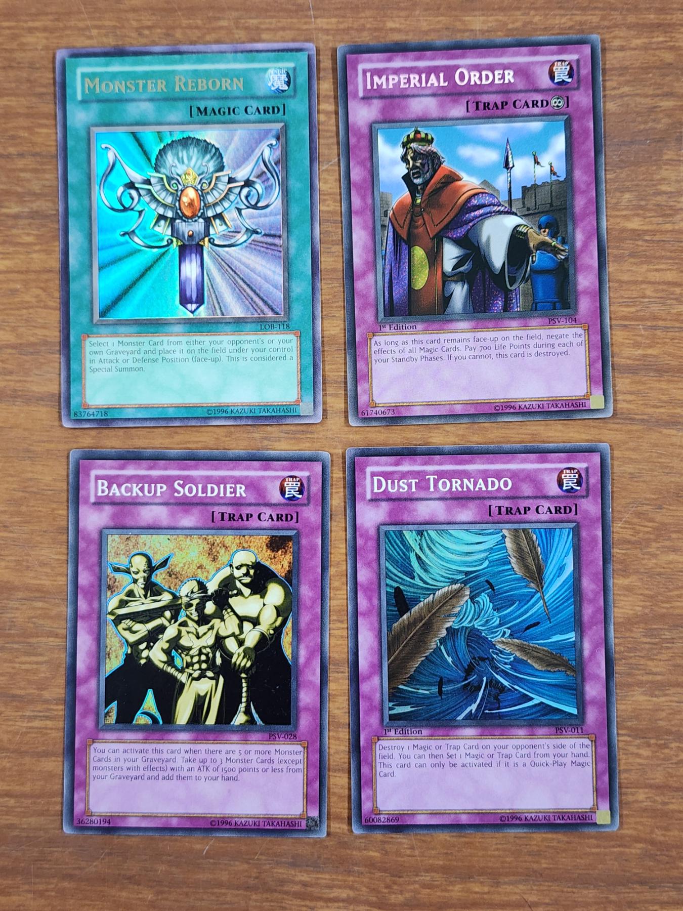 Four Assorted Vintage Holo Yu-Gi-Oh Trading Cards Including 1st Editions!