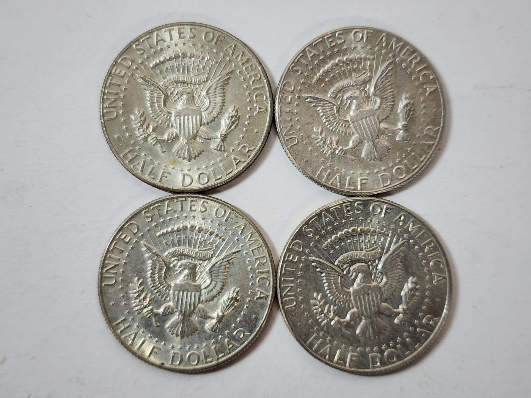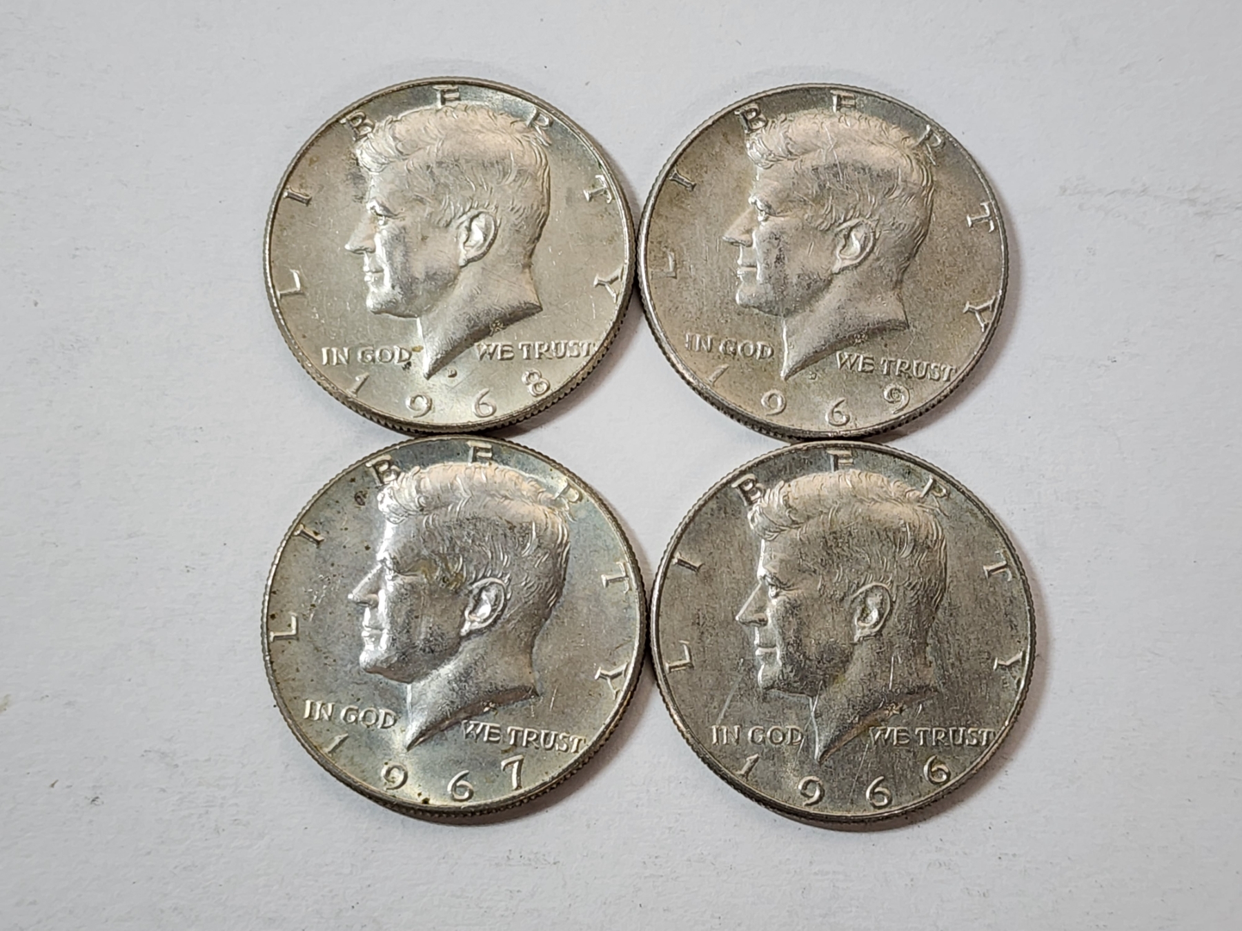 Four Assorted Years 40% Silver Kennedy Half Dollars FV: $2.00