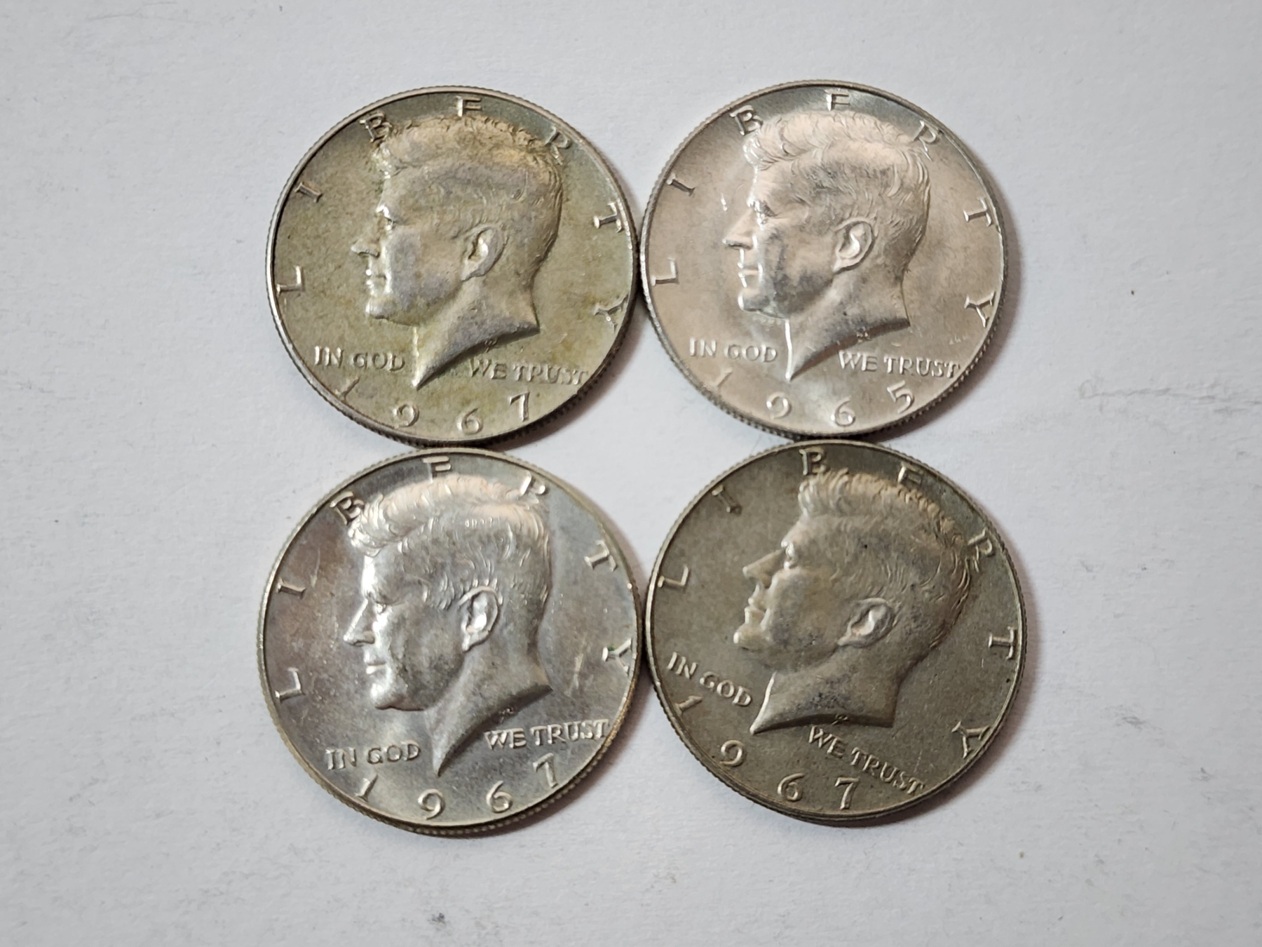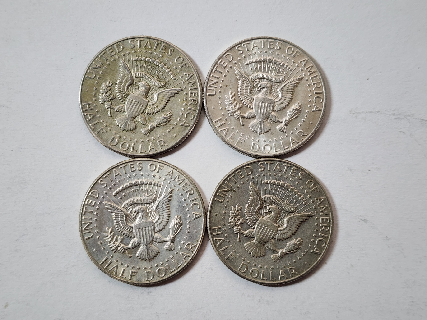 Four Assorted Years 40% Silver Kennedy Half Dollars FV: $2.00
