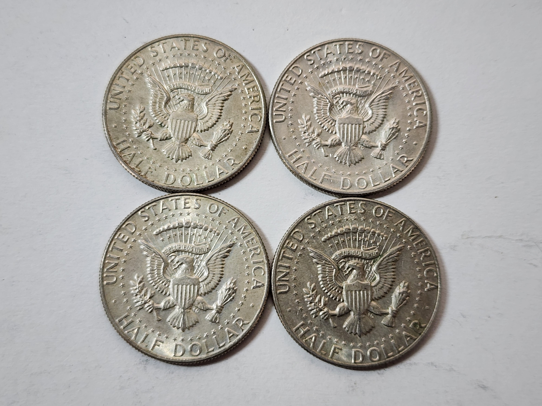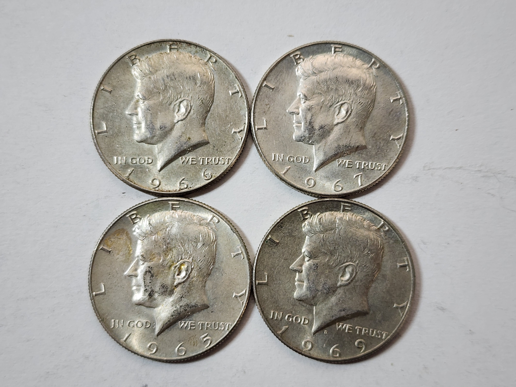 Four Assorted Years 40% Silver Kennedy Half Dollars FV: $2.00