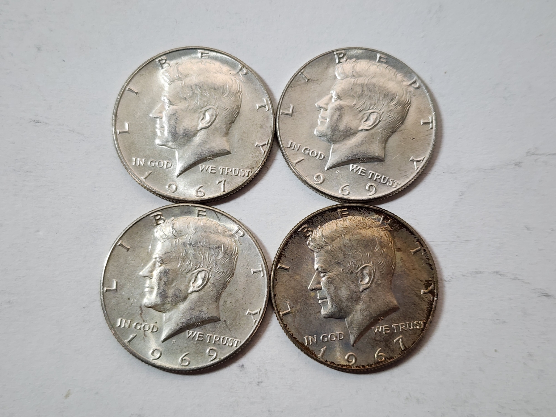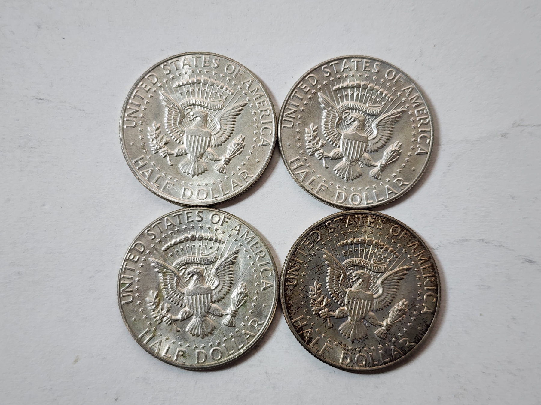 Four Assorted Years 40% Silver Kennedy Half Dollars FV: $2.00