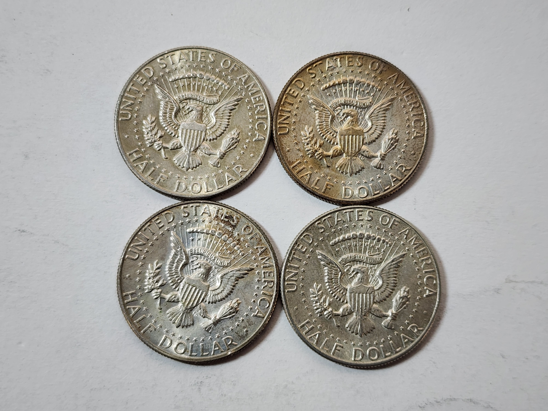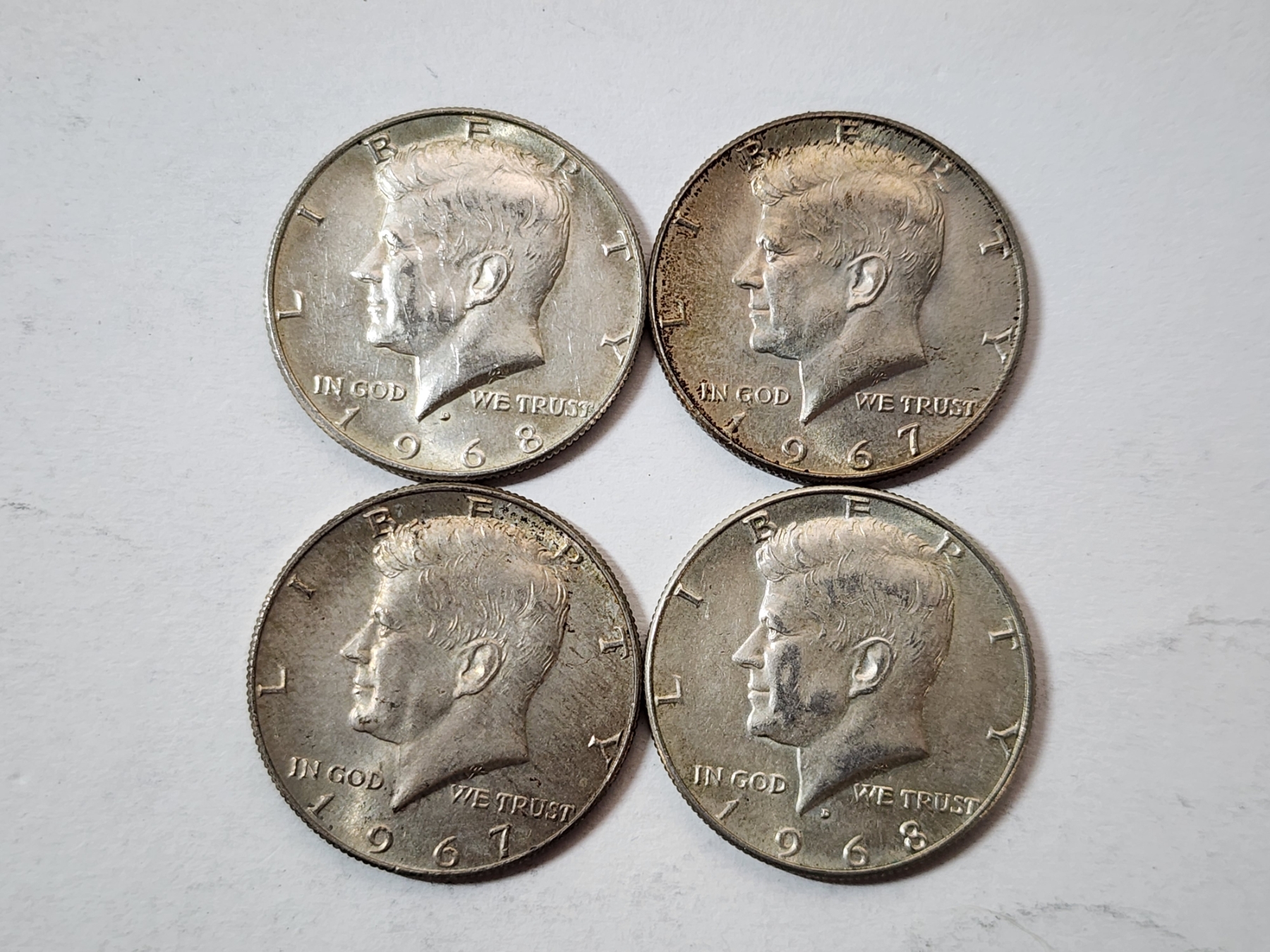 Four Assorted Years 40% Silver Kennedy Half Dollars FV: $2.00