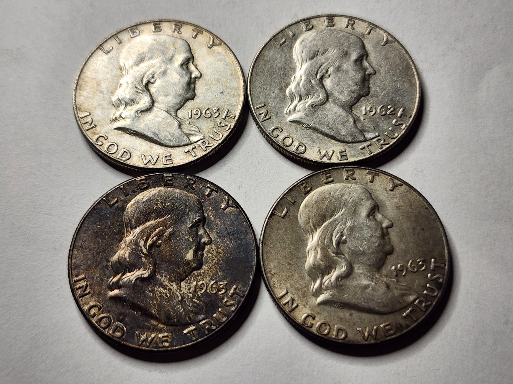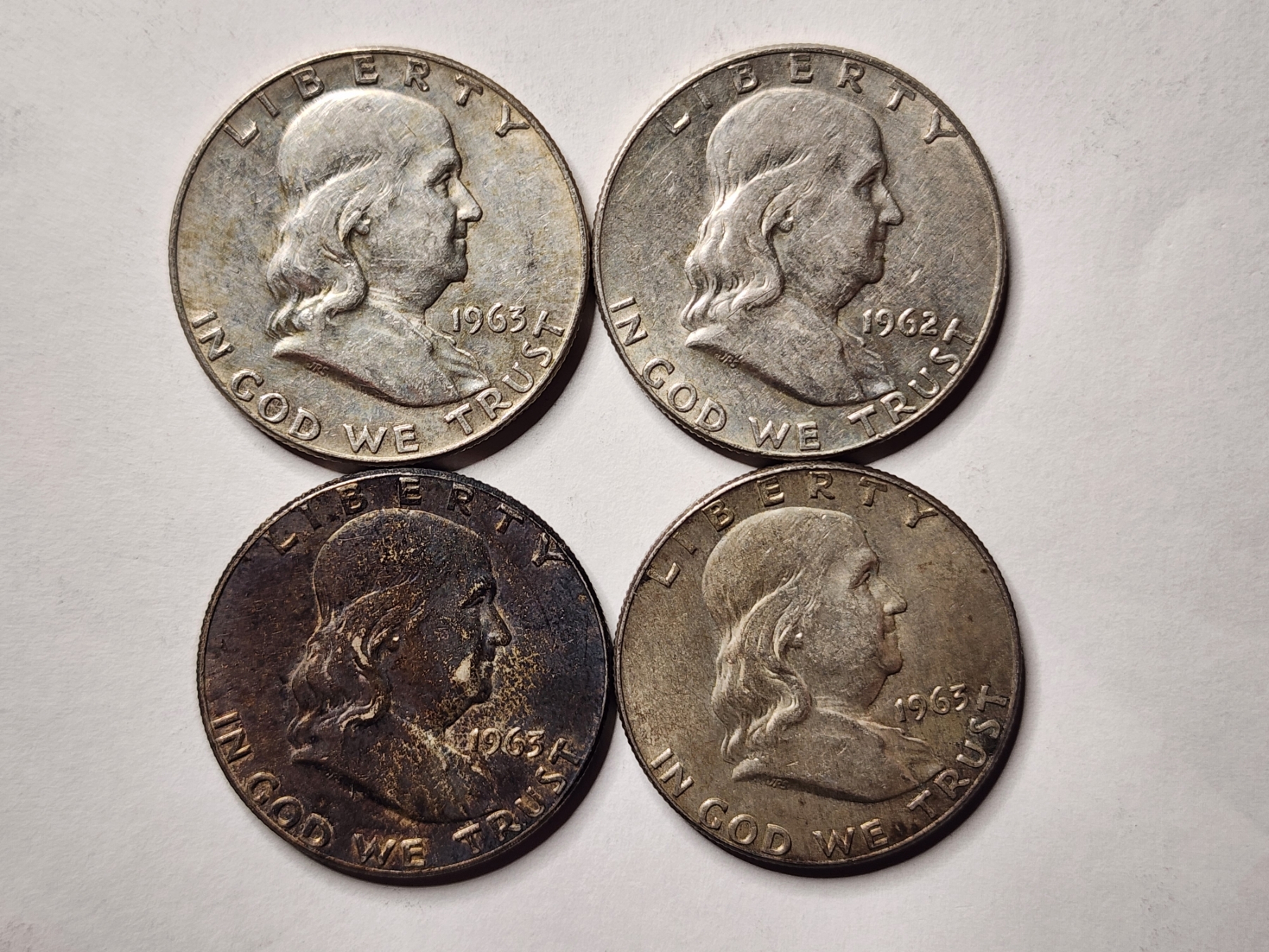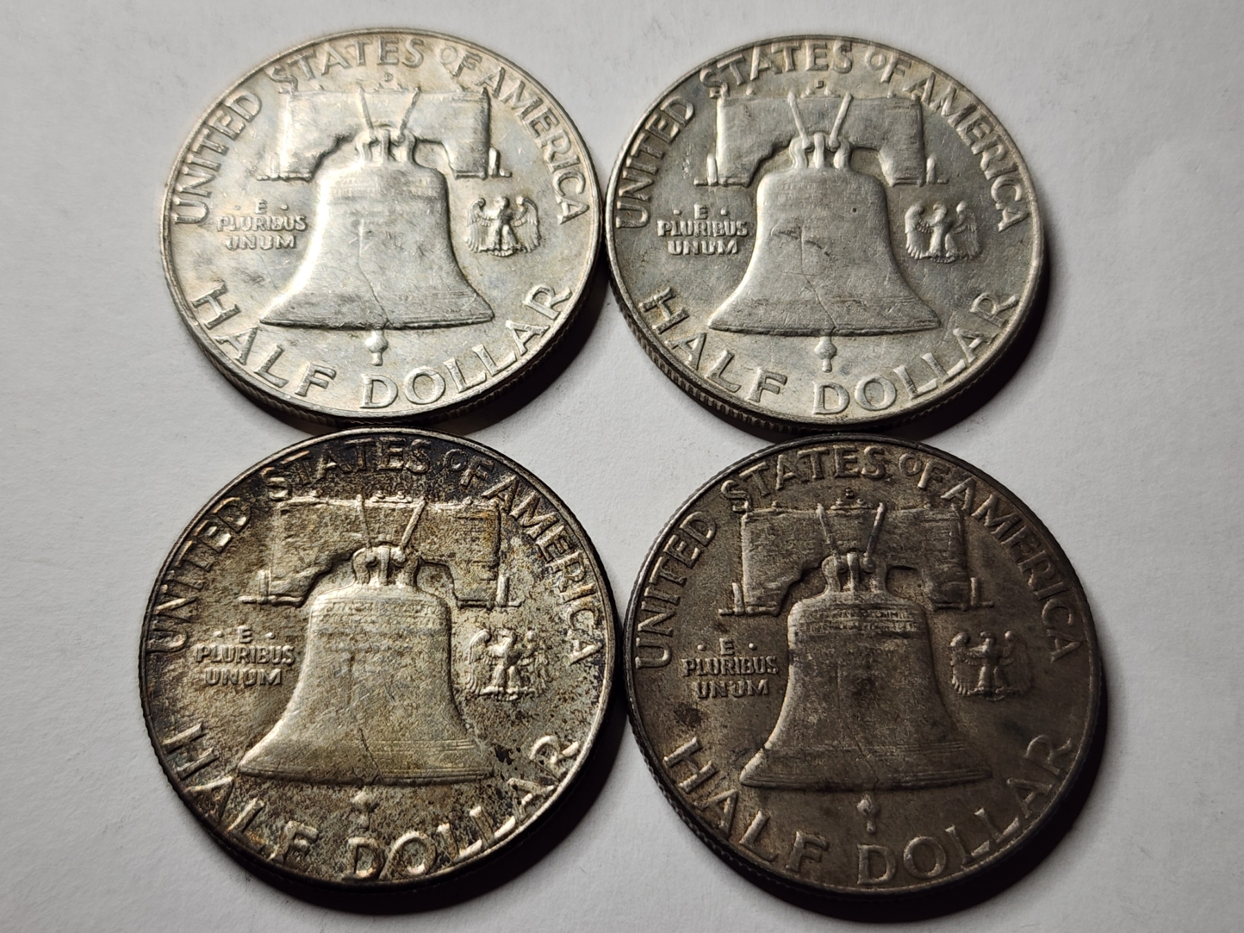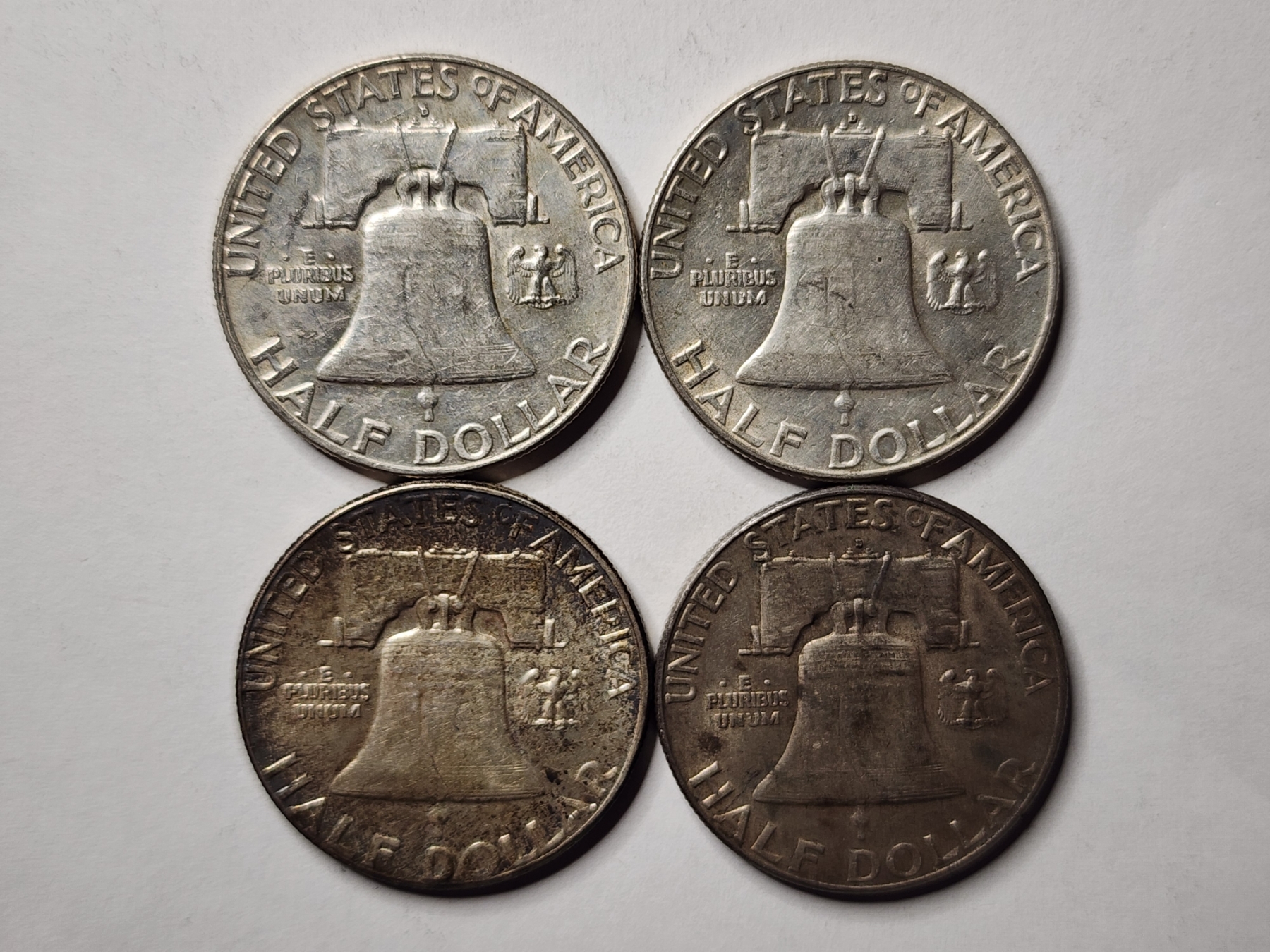 Four Benjamin Franklin 90% Silver United States Half Dollars ~ $2.00 Face Value