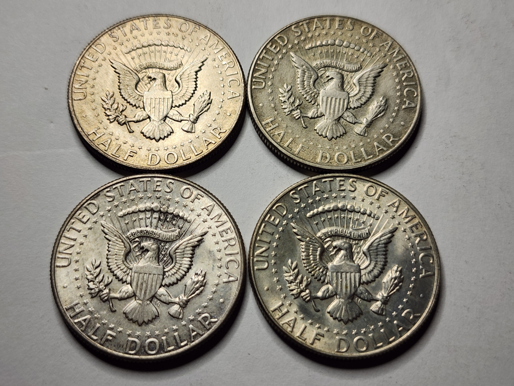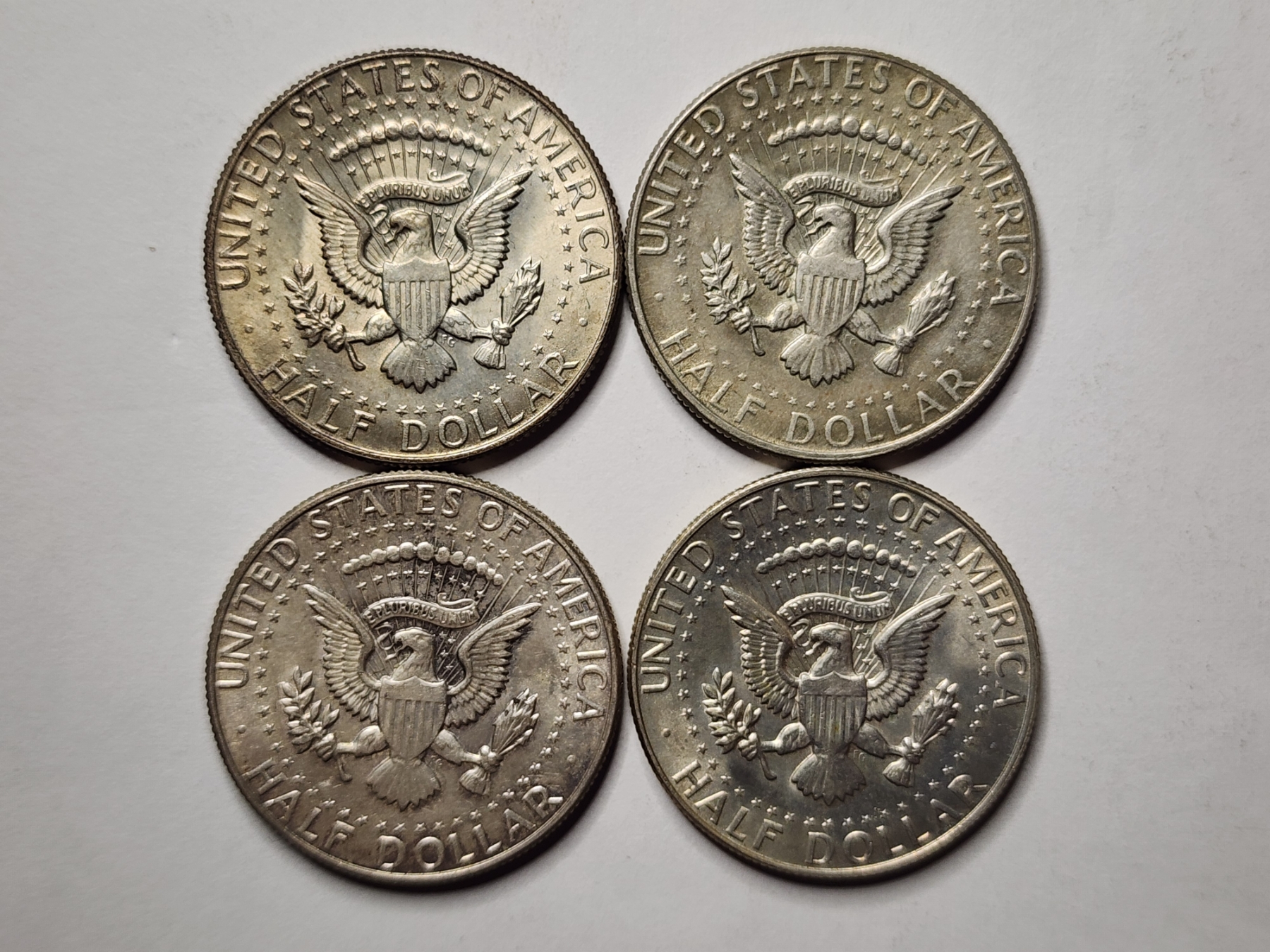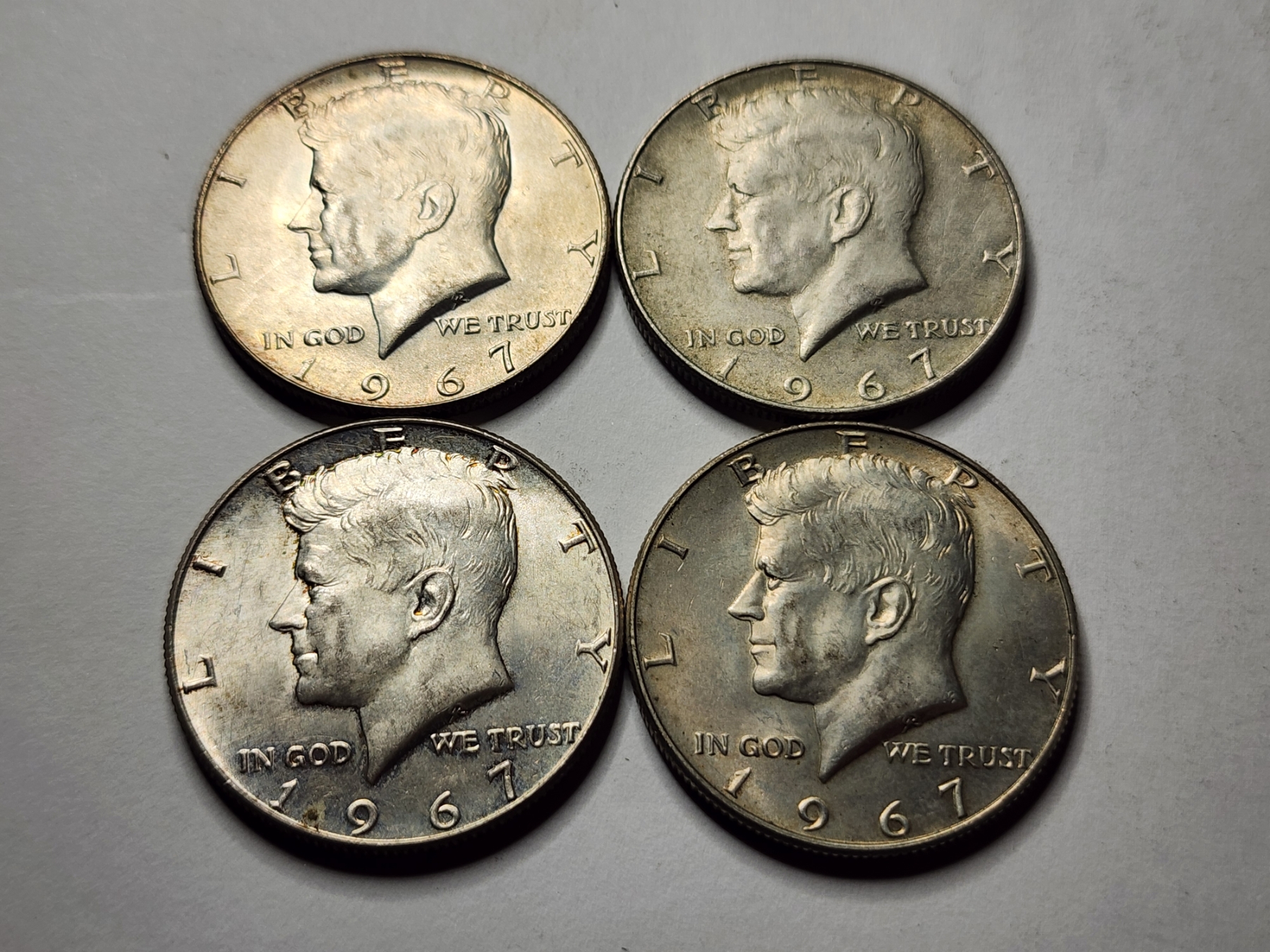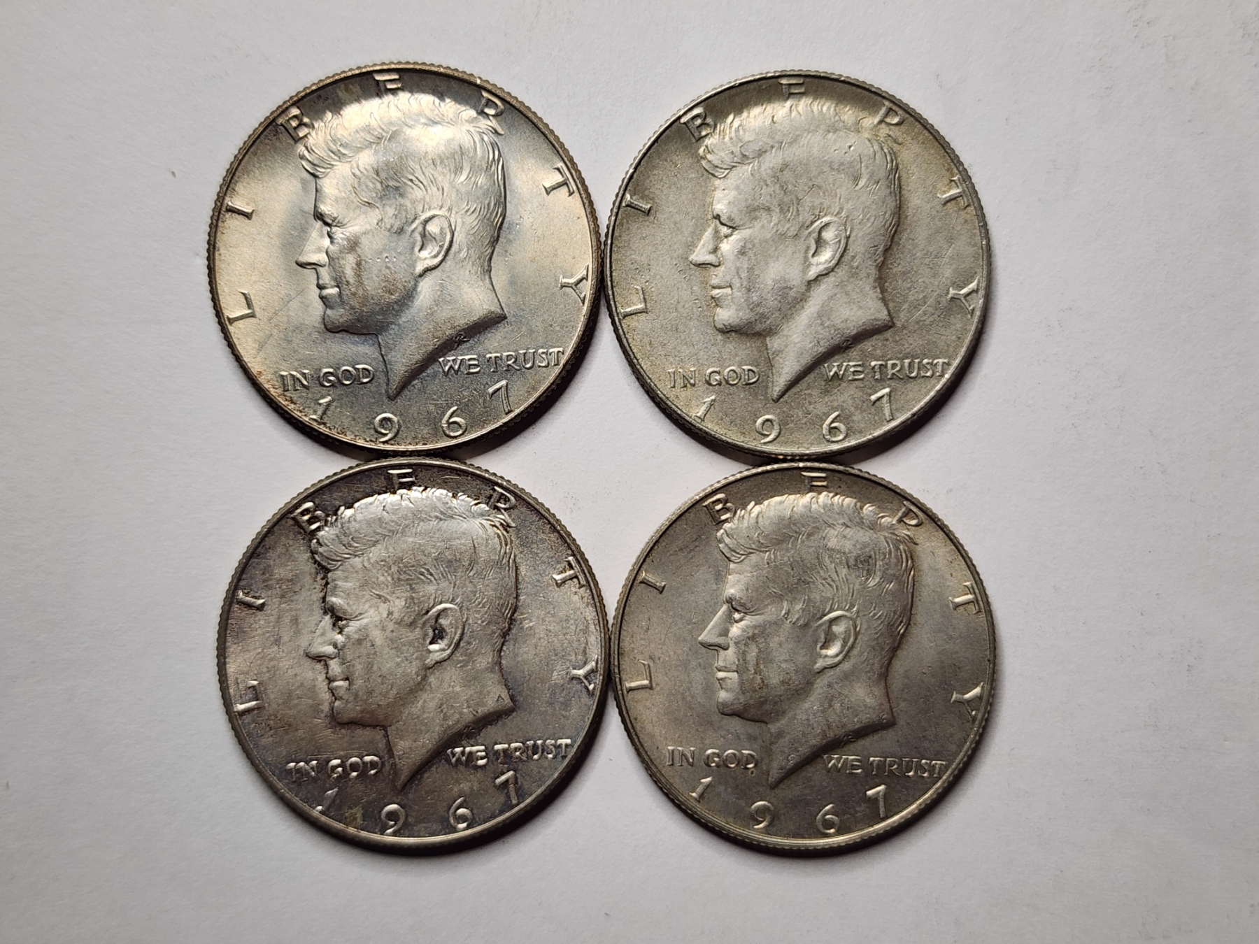 Four John F. Kennedy 40% Silver 1967 United States Half Dollars ~ $2.00 Face Value ~ In Great Condition!