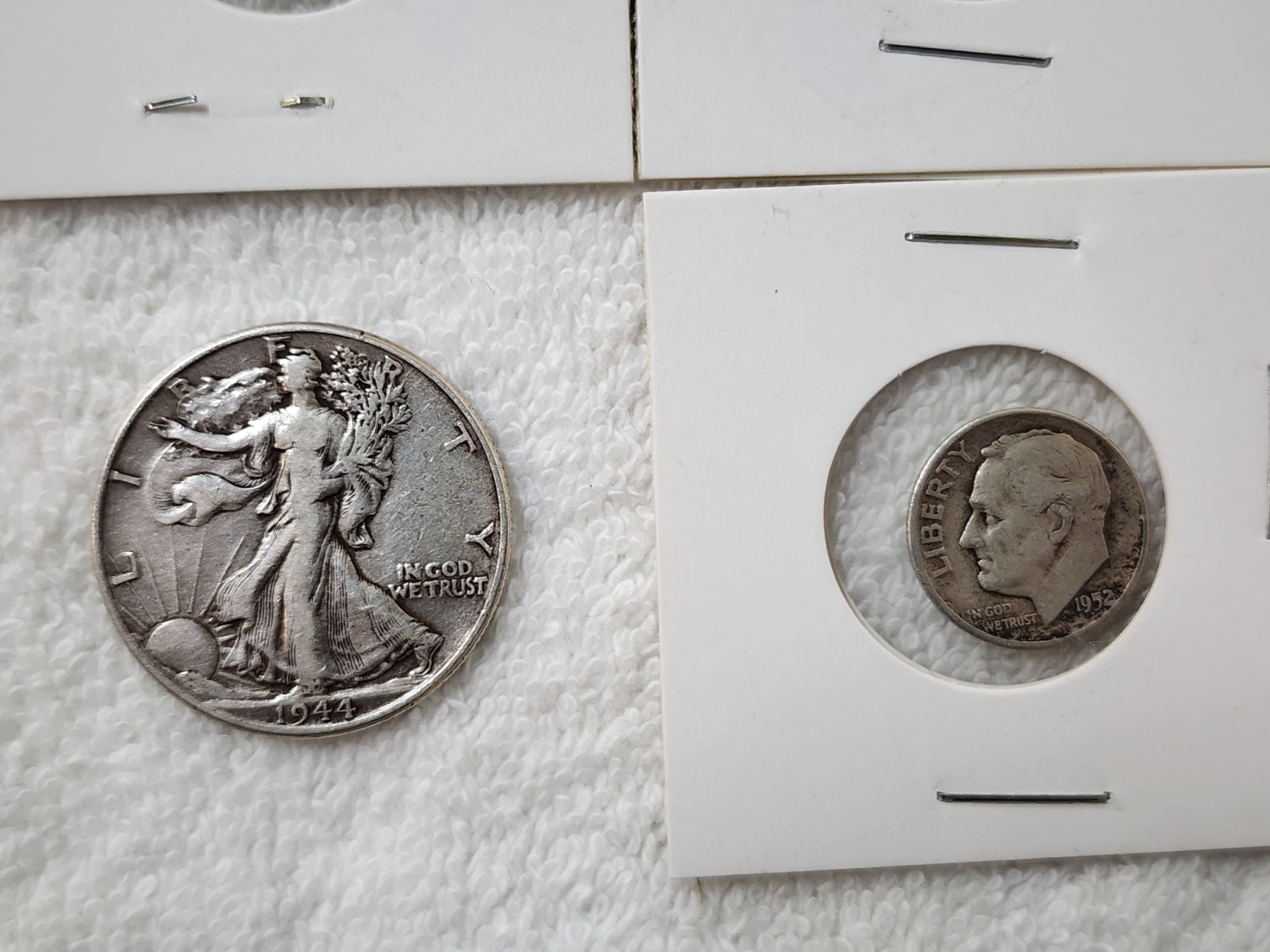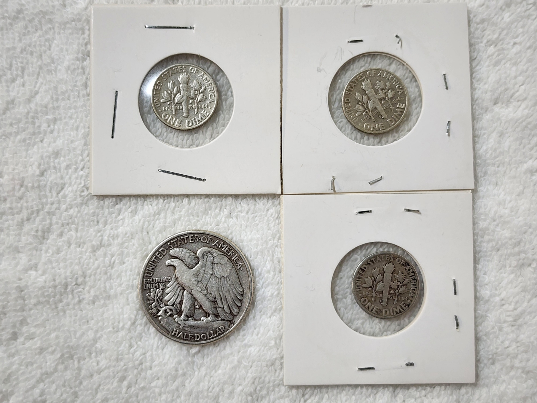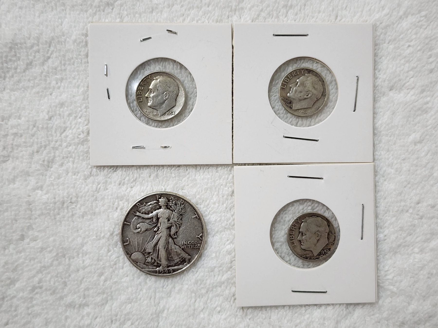 Four United States 90% Silver Coins Ft. Three Roosevelt Dimes & One Walking Liberty Half ~ $0.80 Face Value