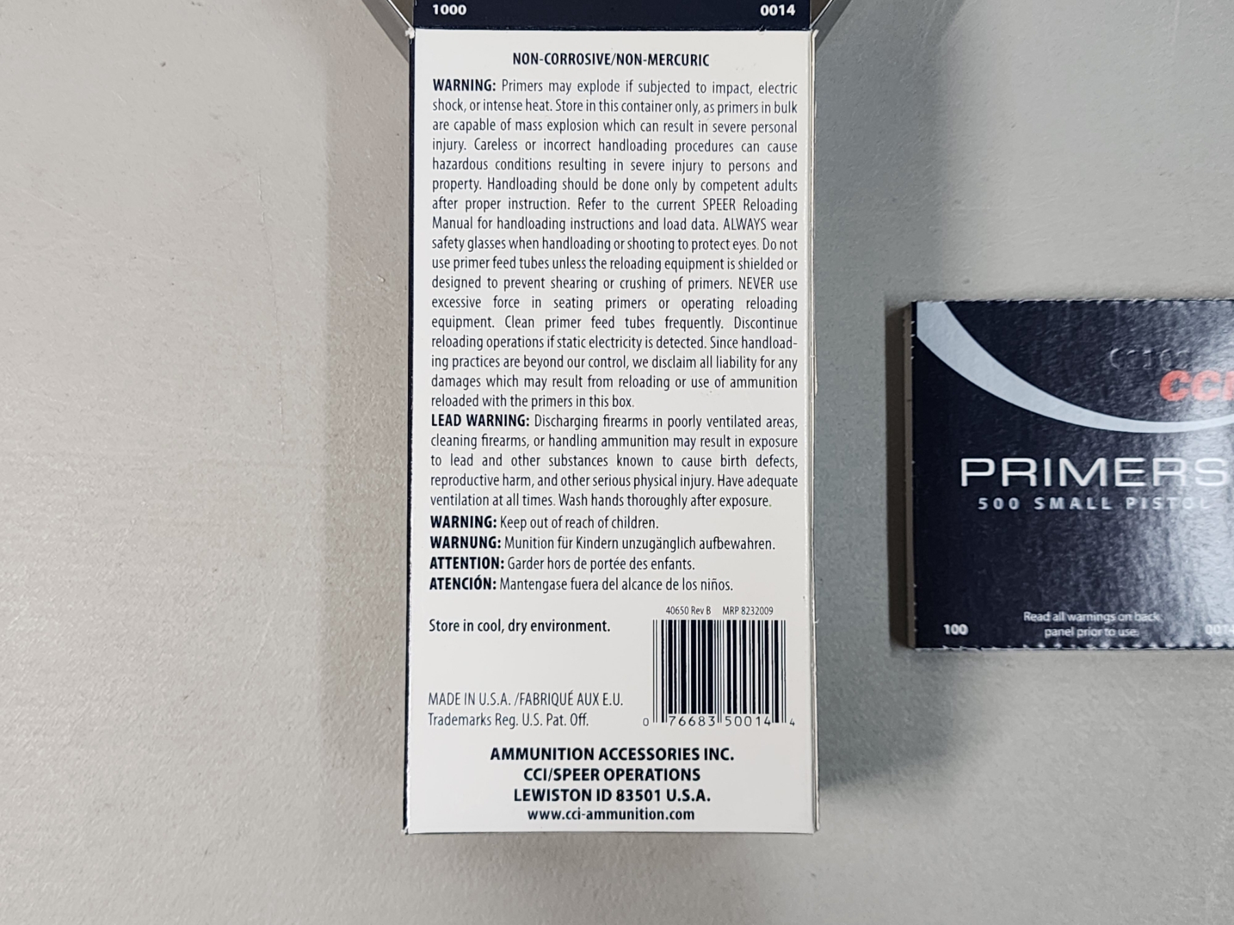 Full Box of CCI 500 Small Pistol Primers - 1000 Count