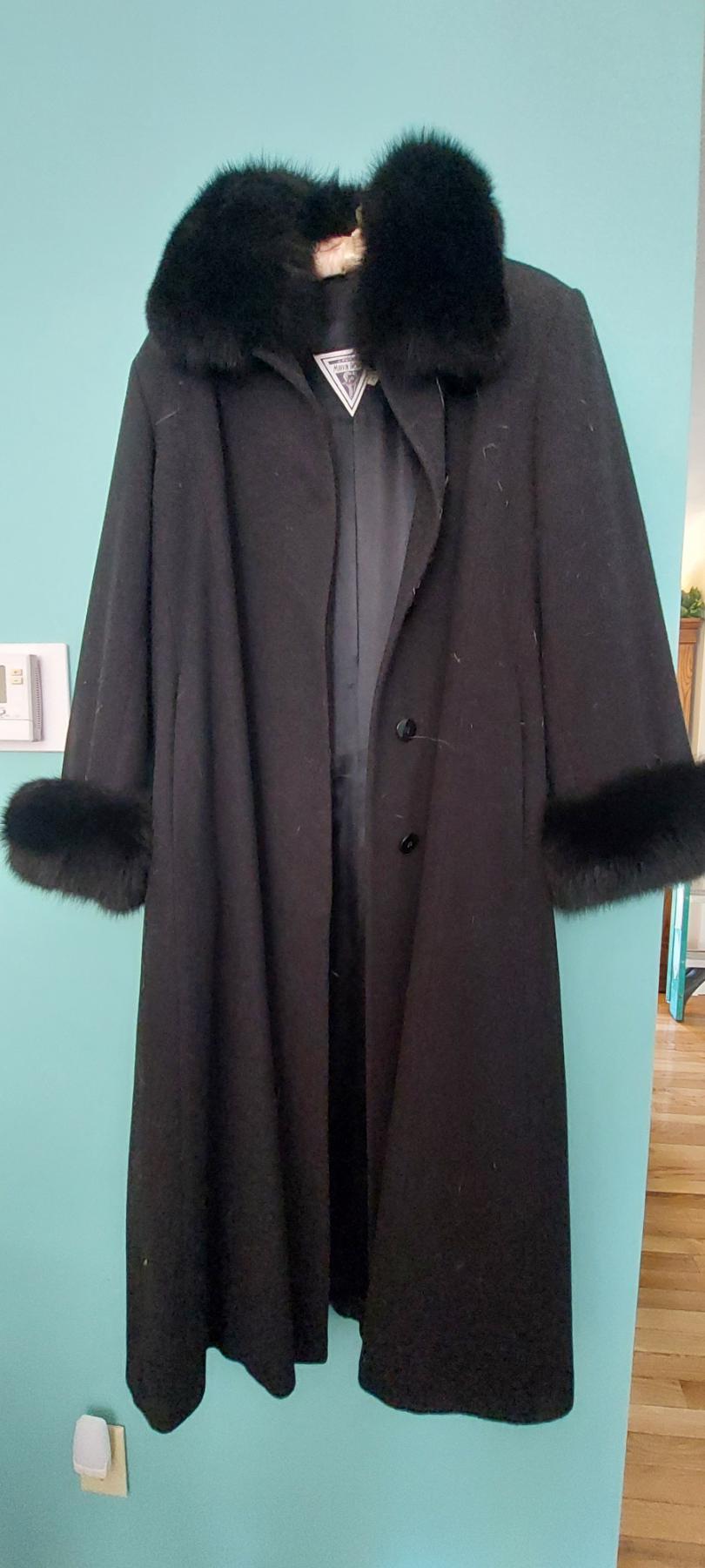 Full Length Ladies Coat With Fur Collar & Cuffs - Sz 12 - Good Condition