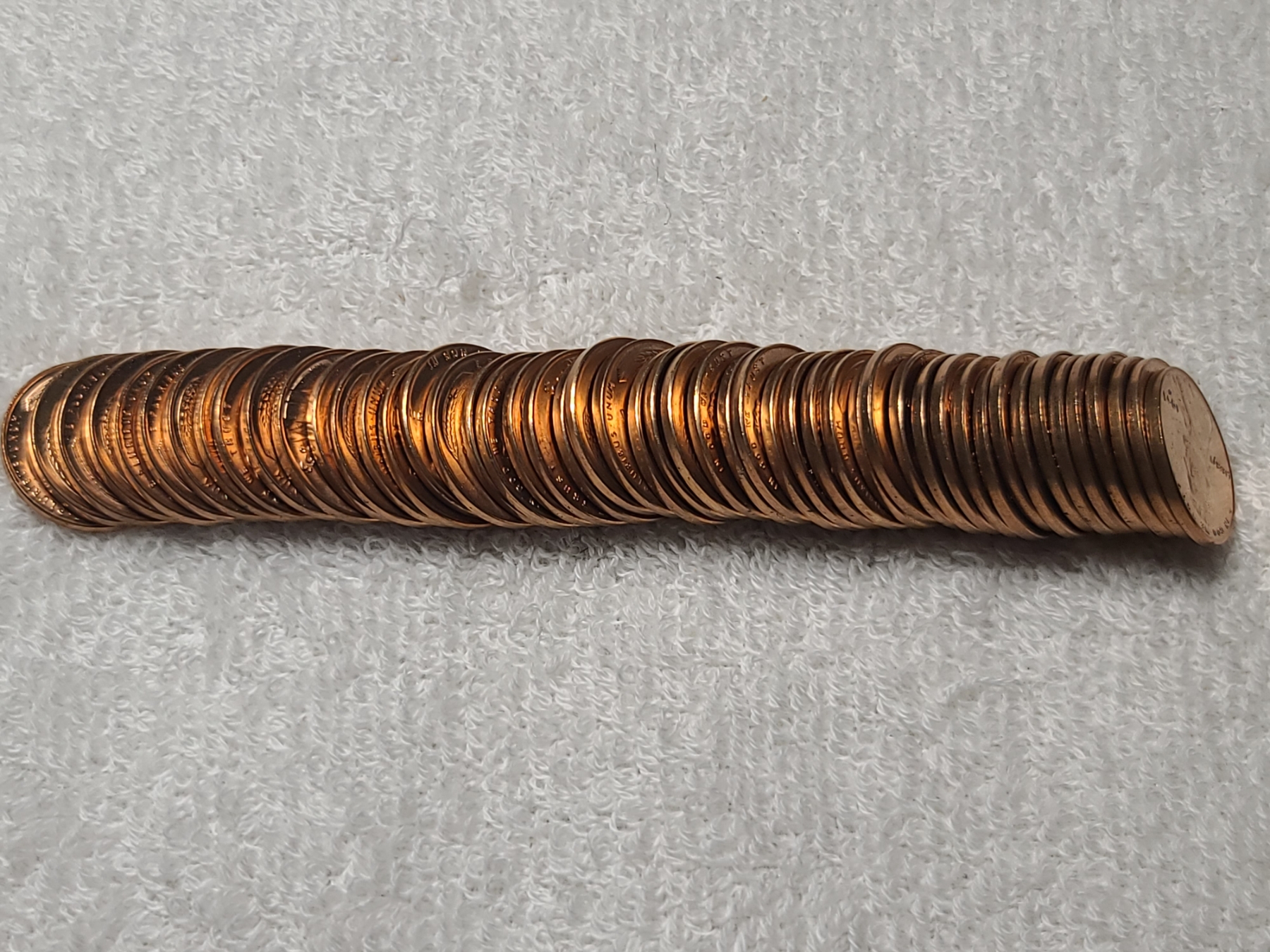 Full Tube of Mint State Uncirculated 1953-D Copper Wheat Pennies - Incredible Coins!