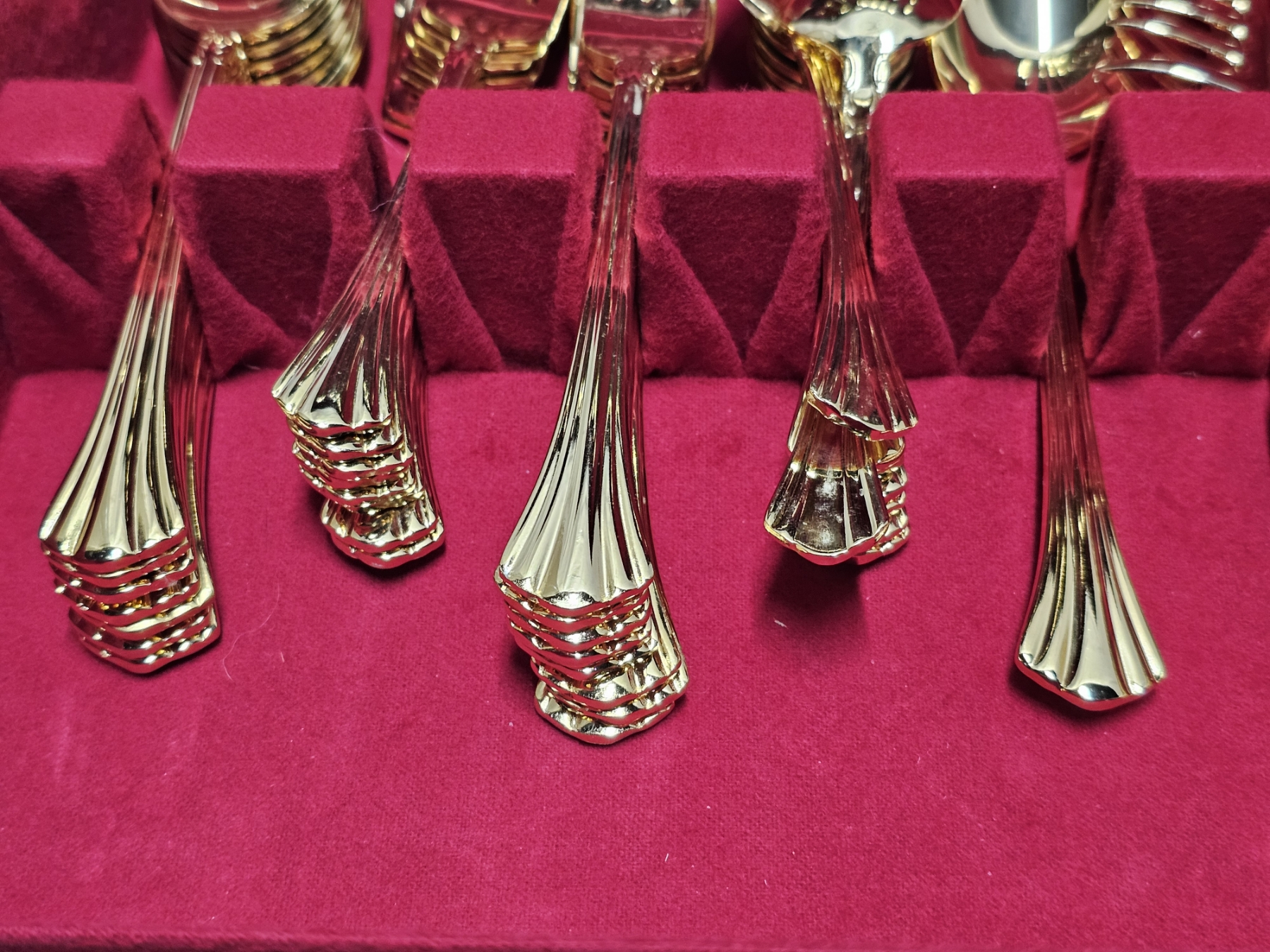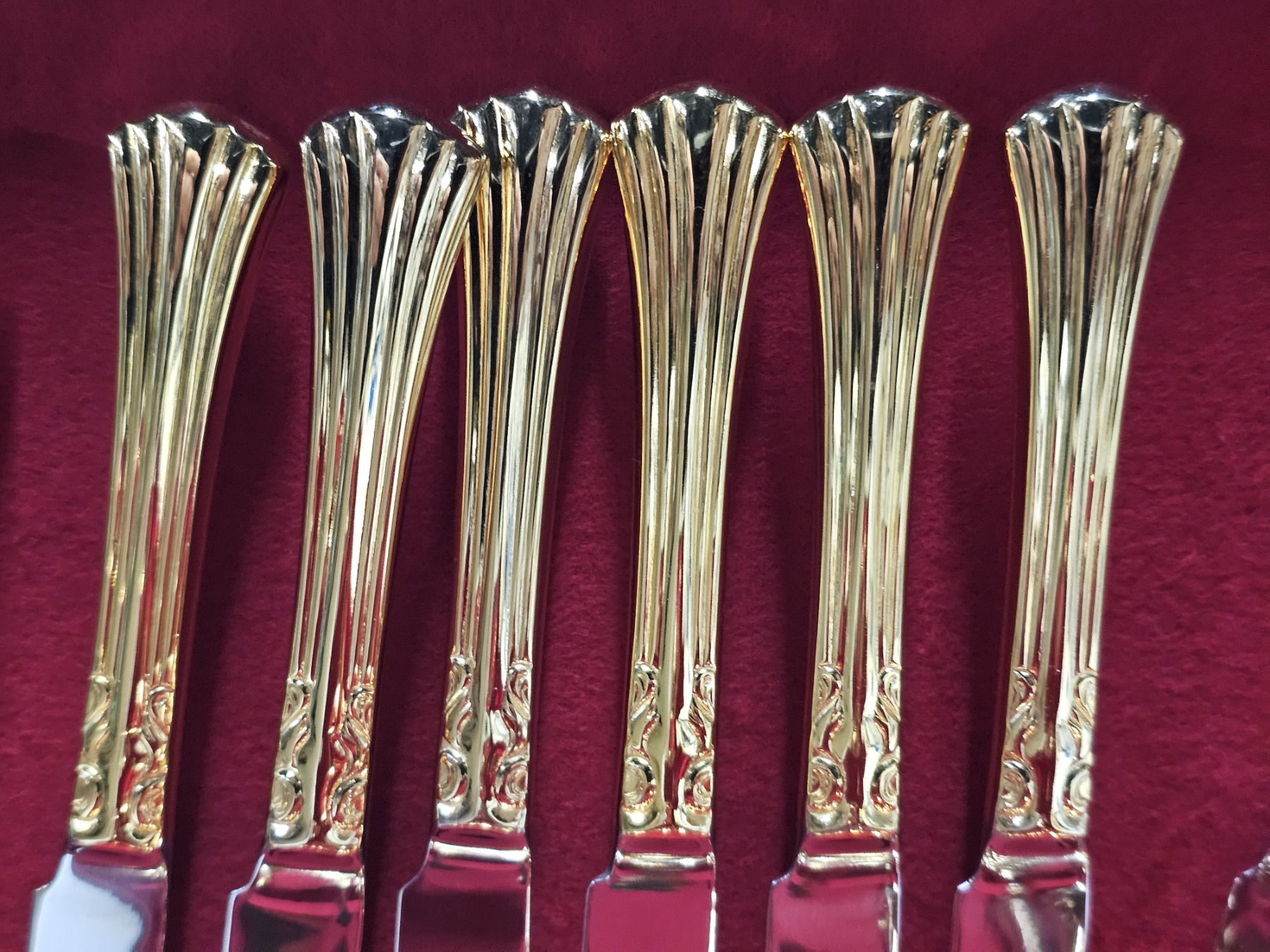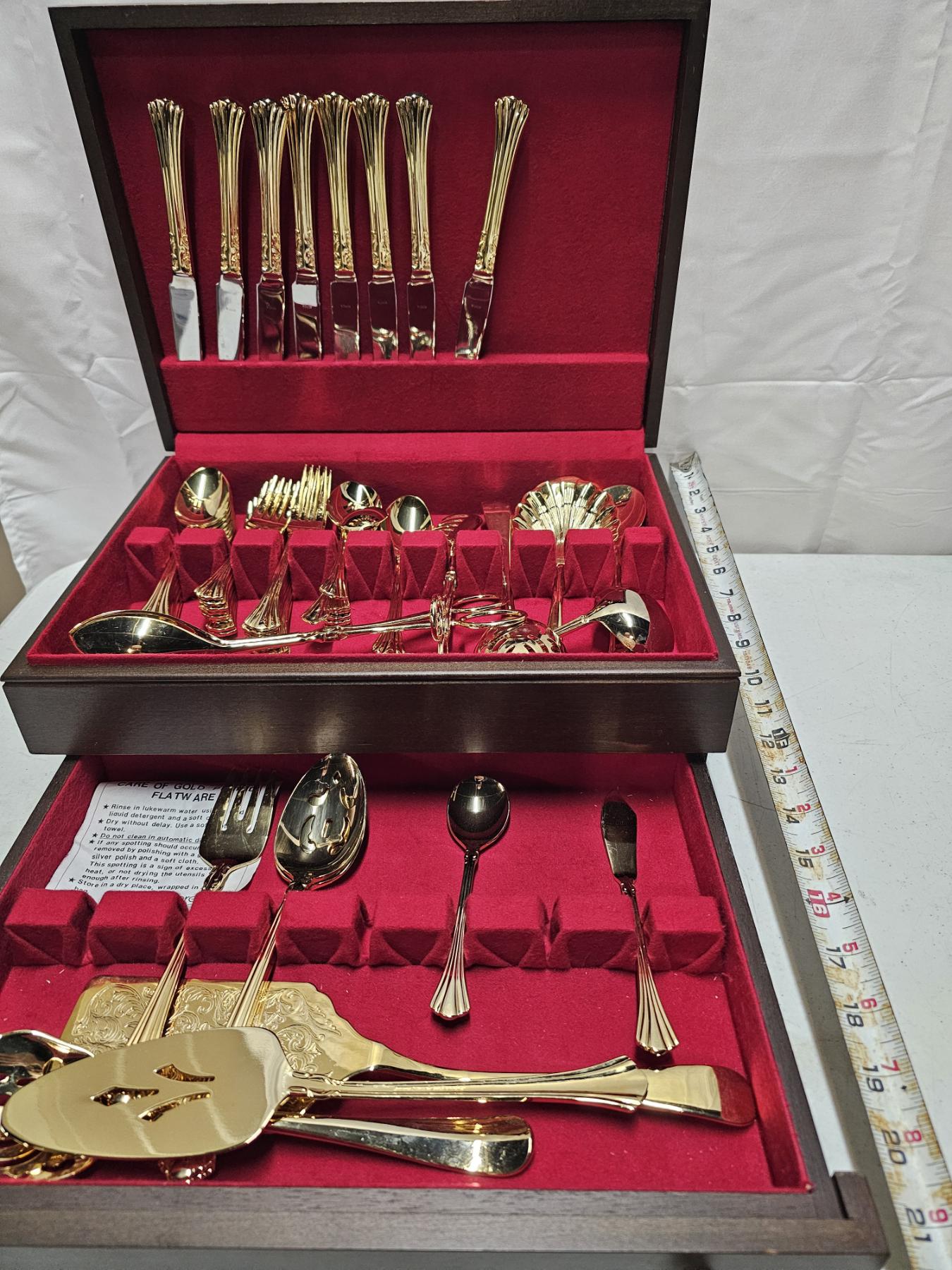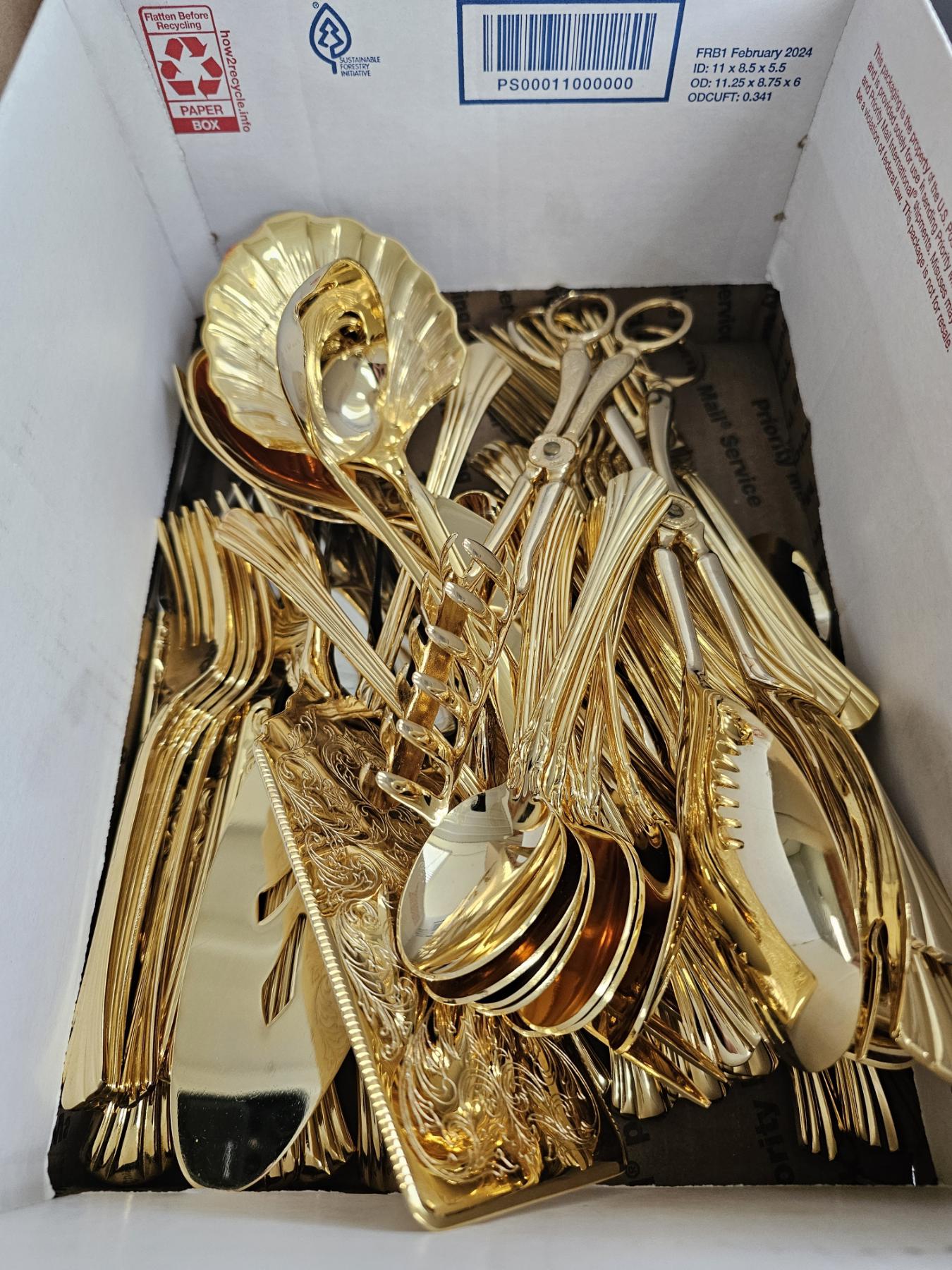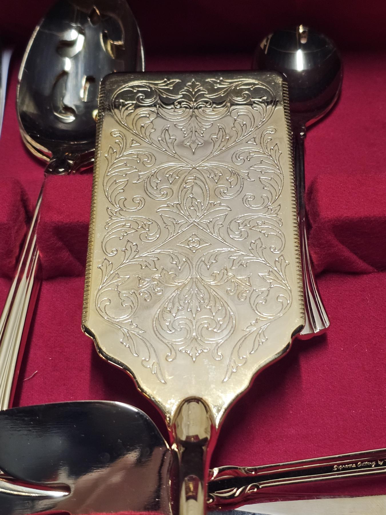 Gold Colored Silver Plated Silverware Set - Total Weight: 6.4lbs, Box Dimensions: 15x11x5, Engraved, ELEGANT SET!!!, TAKE ADVANTAGE OF THIS GREAT OFFER AND ADD THESE BEAUTIFUL PIECES TO YOUR COLLECTION TODAY!!!