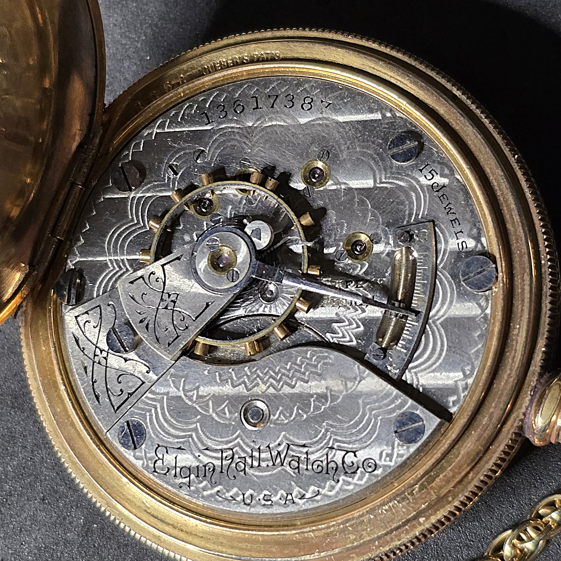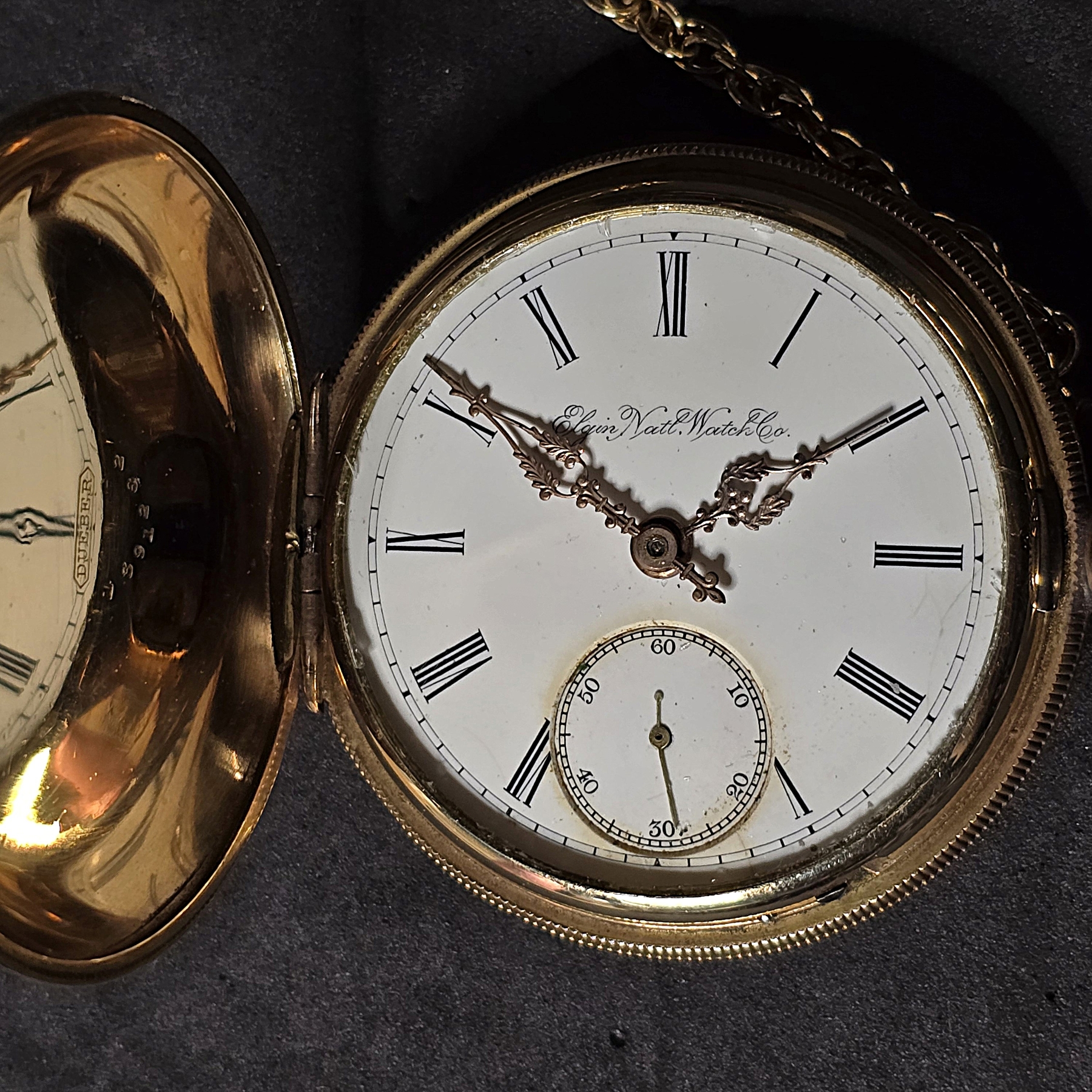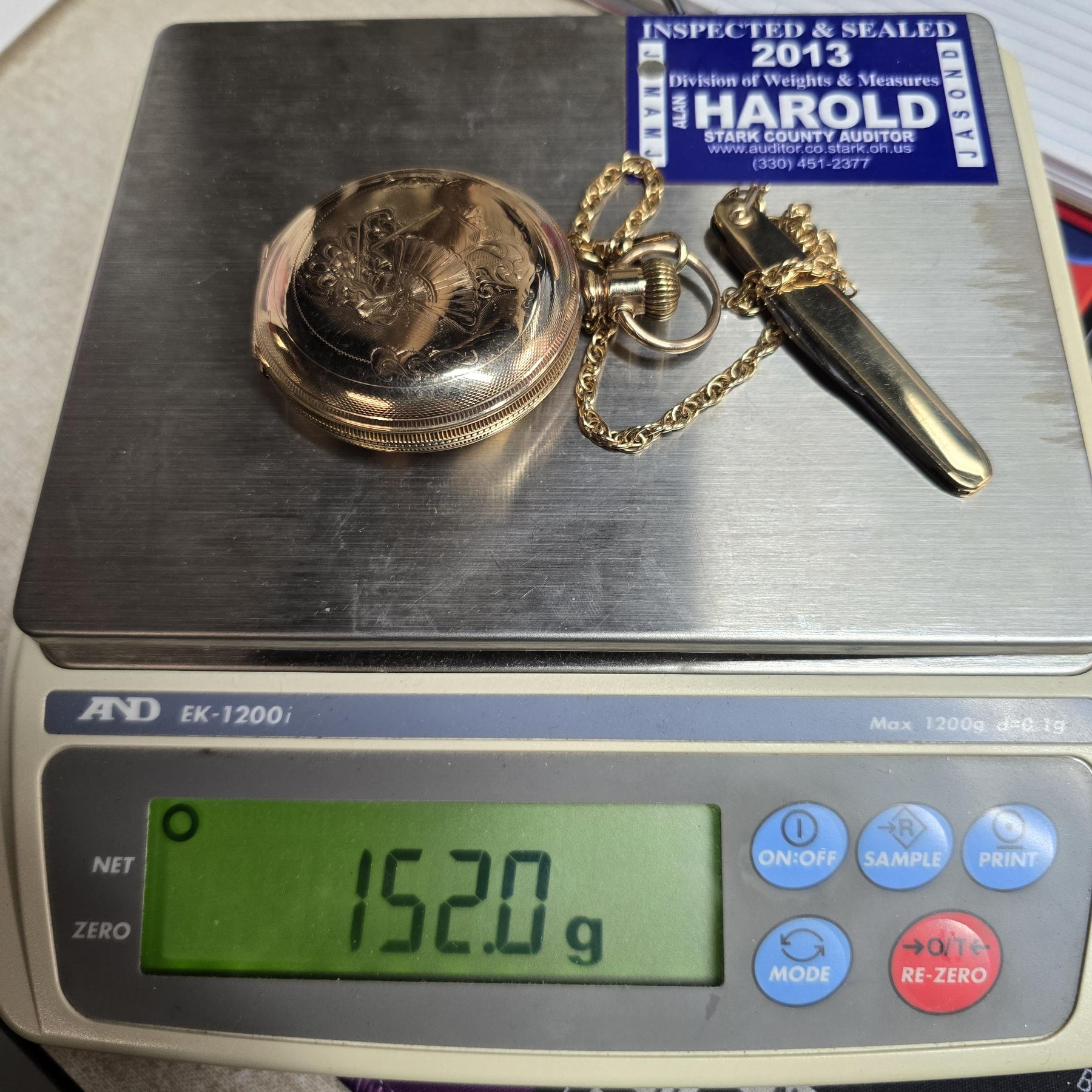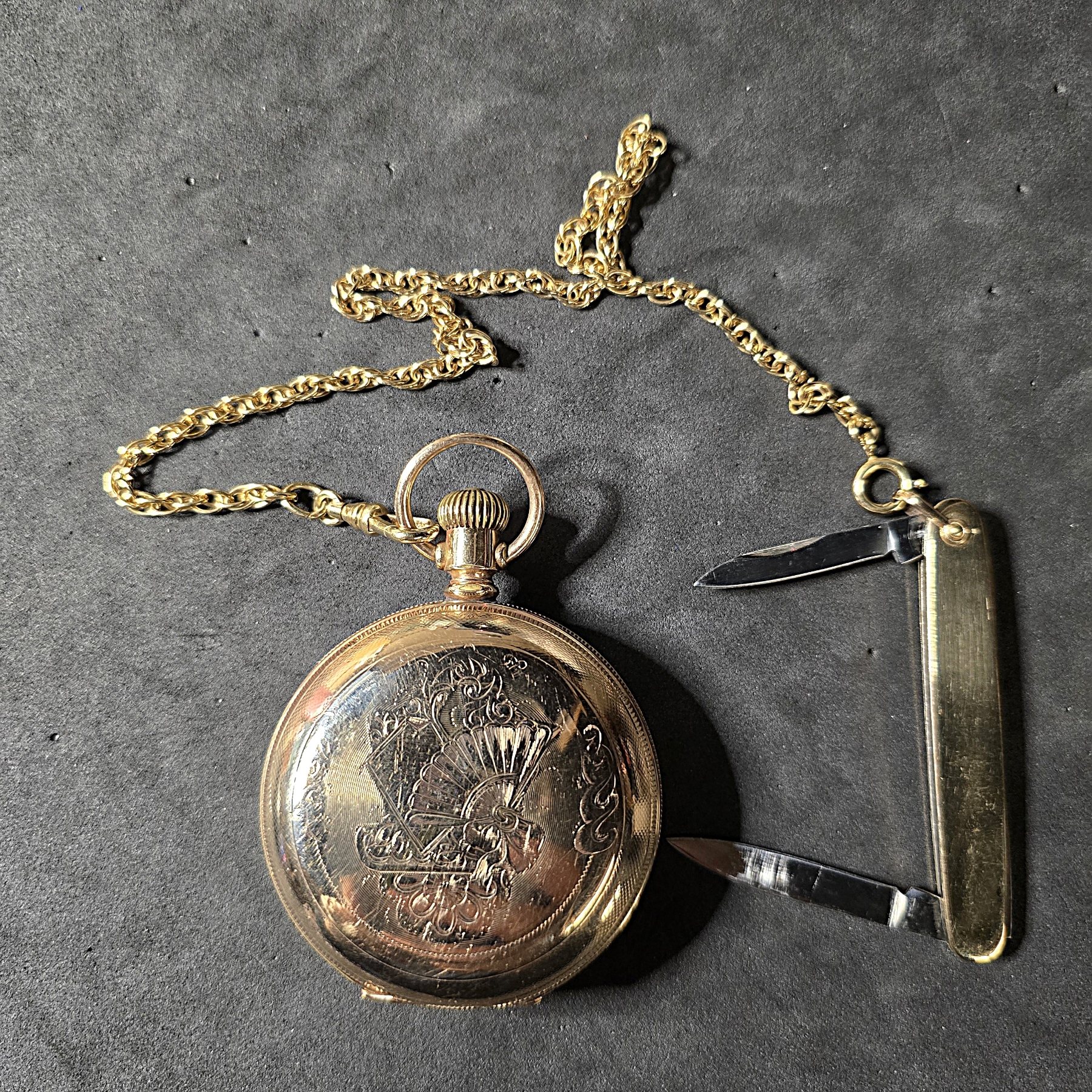 Gold Filled Elgin National Watch Pocket Watch w/ Chain and Folding Knife 152g TW - Missing Face Glass