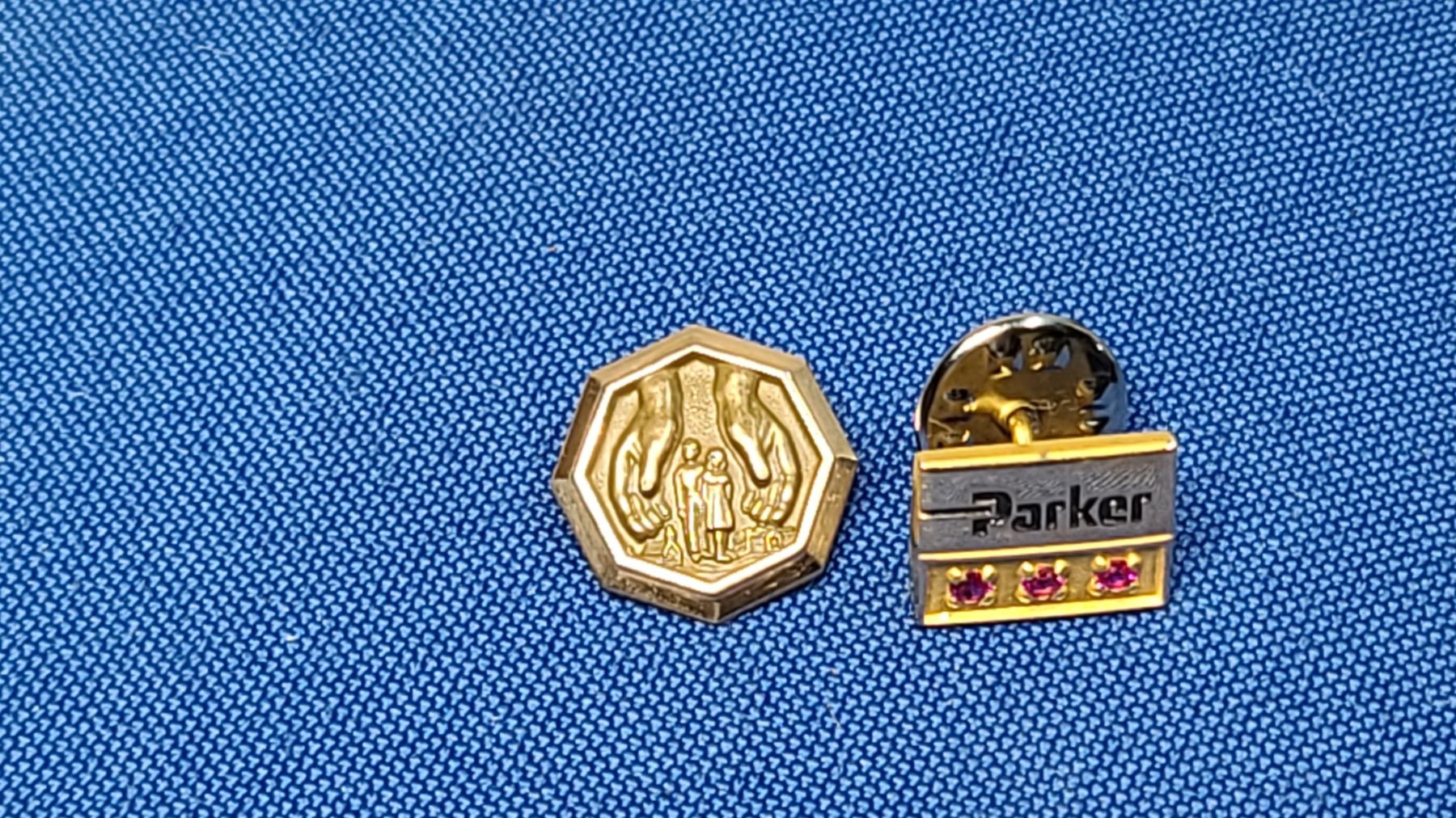 Gold Filled Parker Hannifin 15-year Service Award Pin With Rubies & Vintage Hands of God Gold Filled Pin