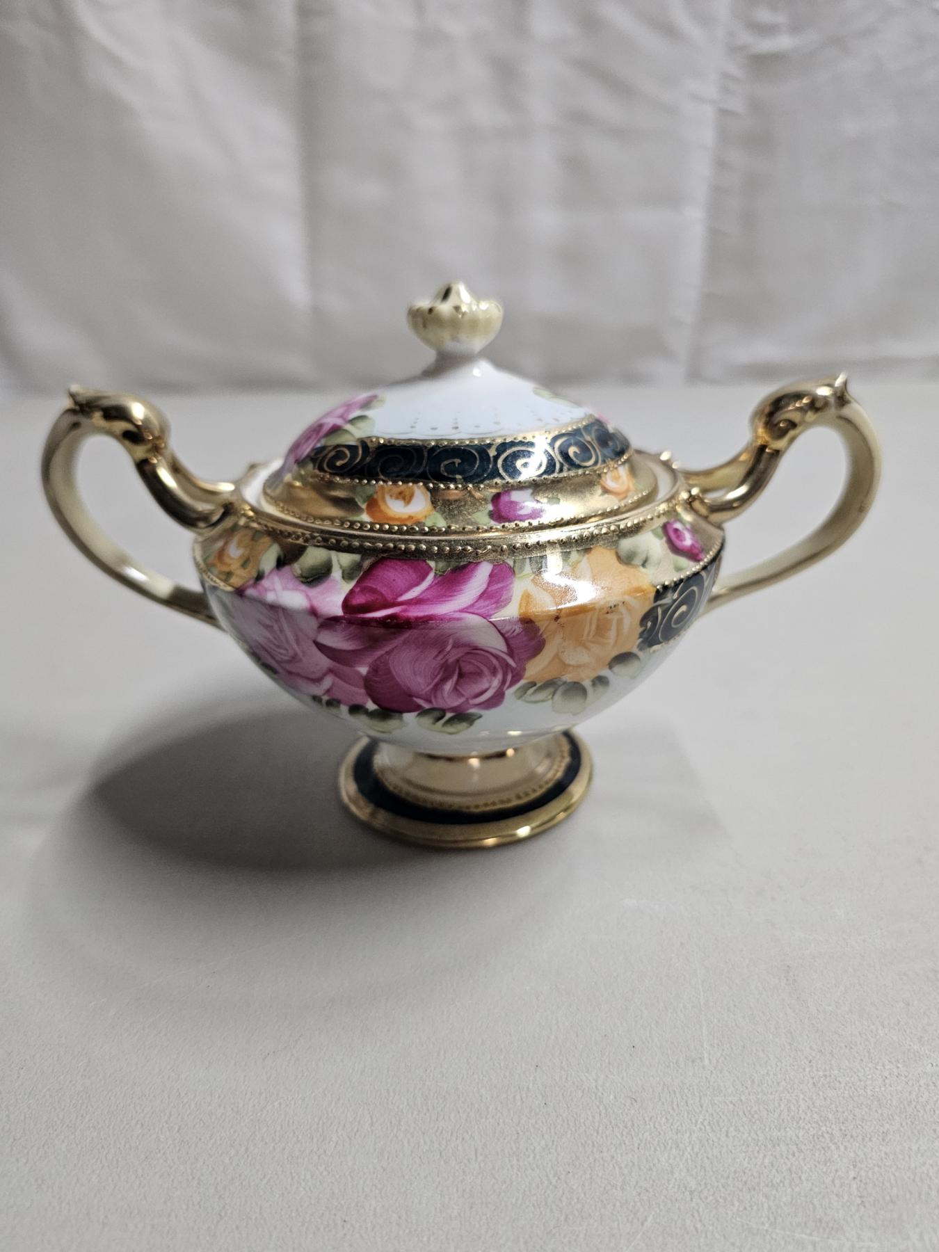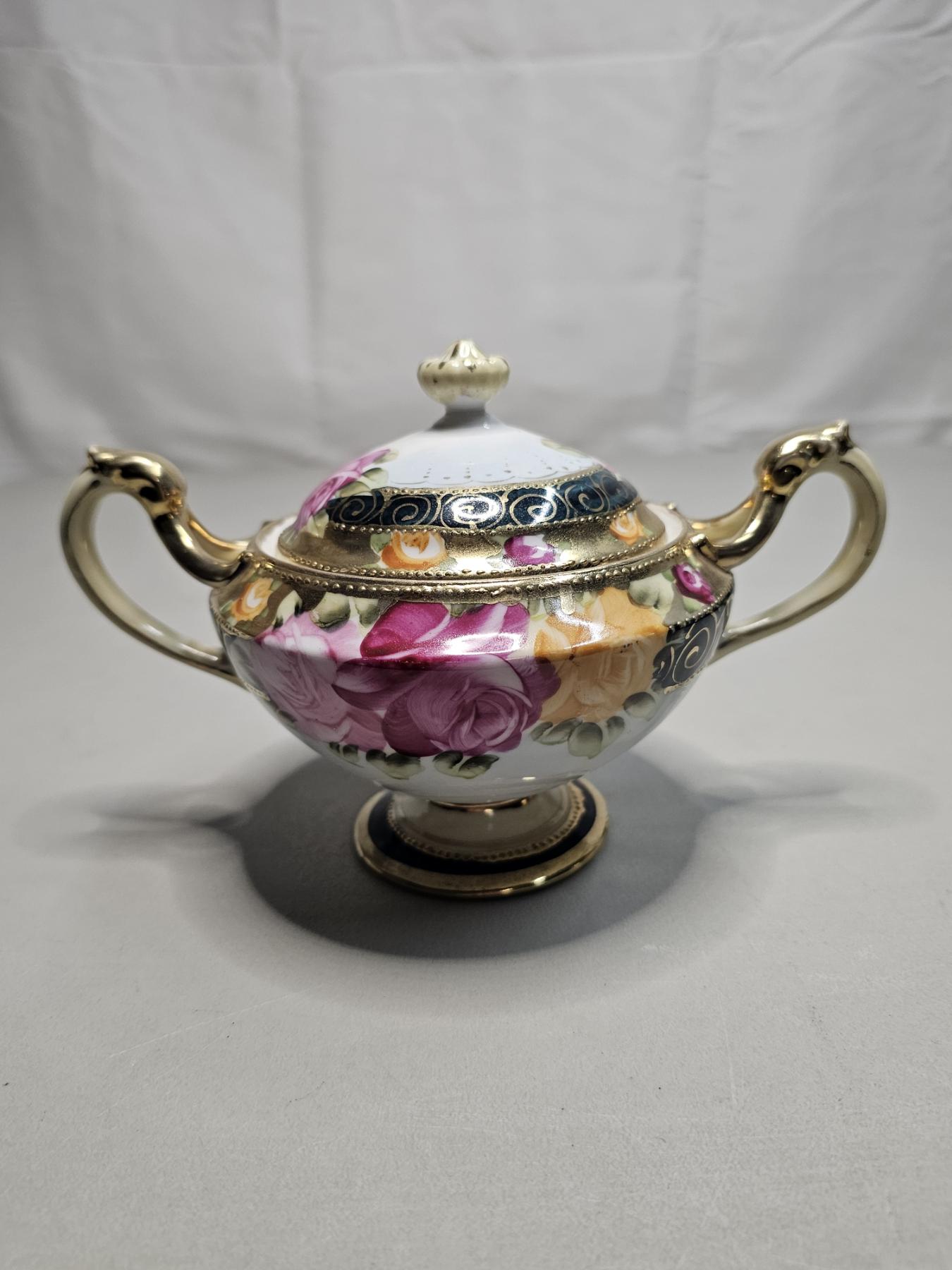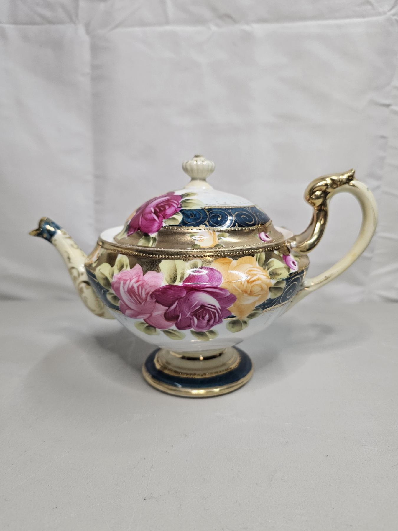 Gold Rimmed Nippon Tea Set (4pc) - Vintage Japanese Tea Set, Includes 6" Tea Pot, 5" Creamer, 5" Sugar Pot, 5" Tea Saucer