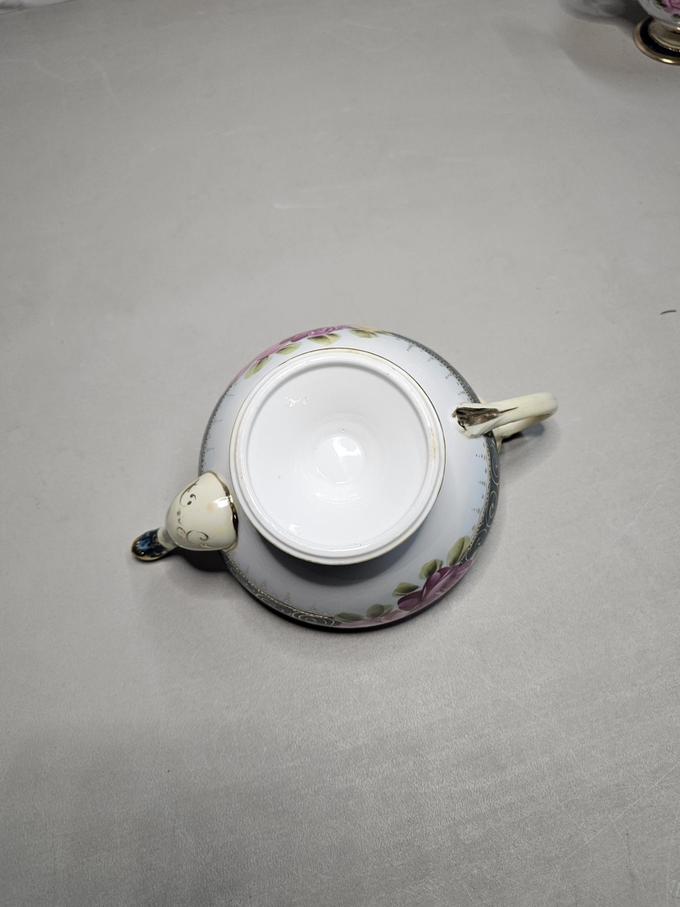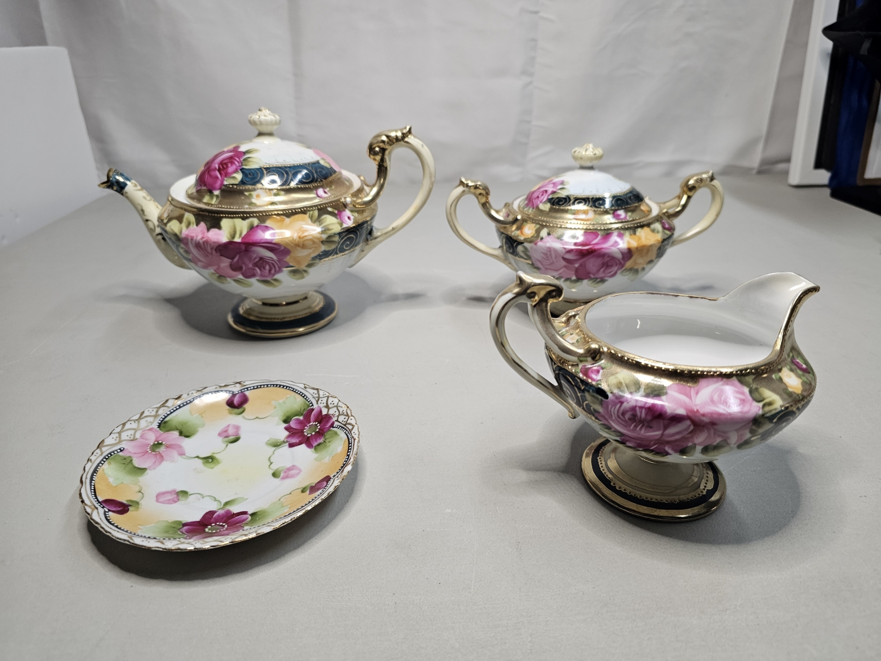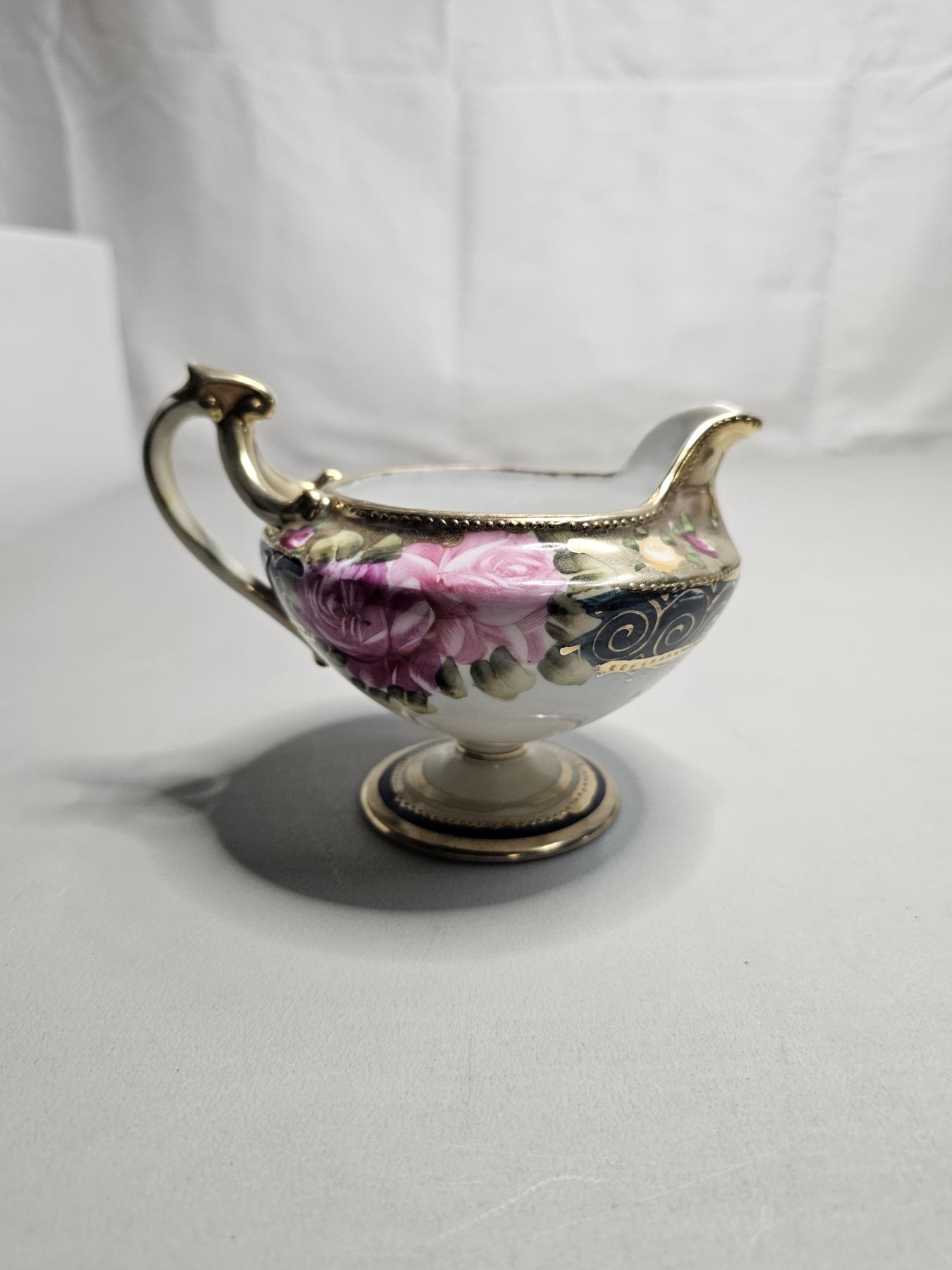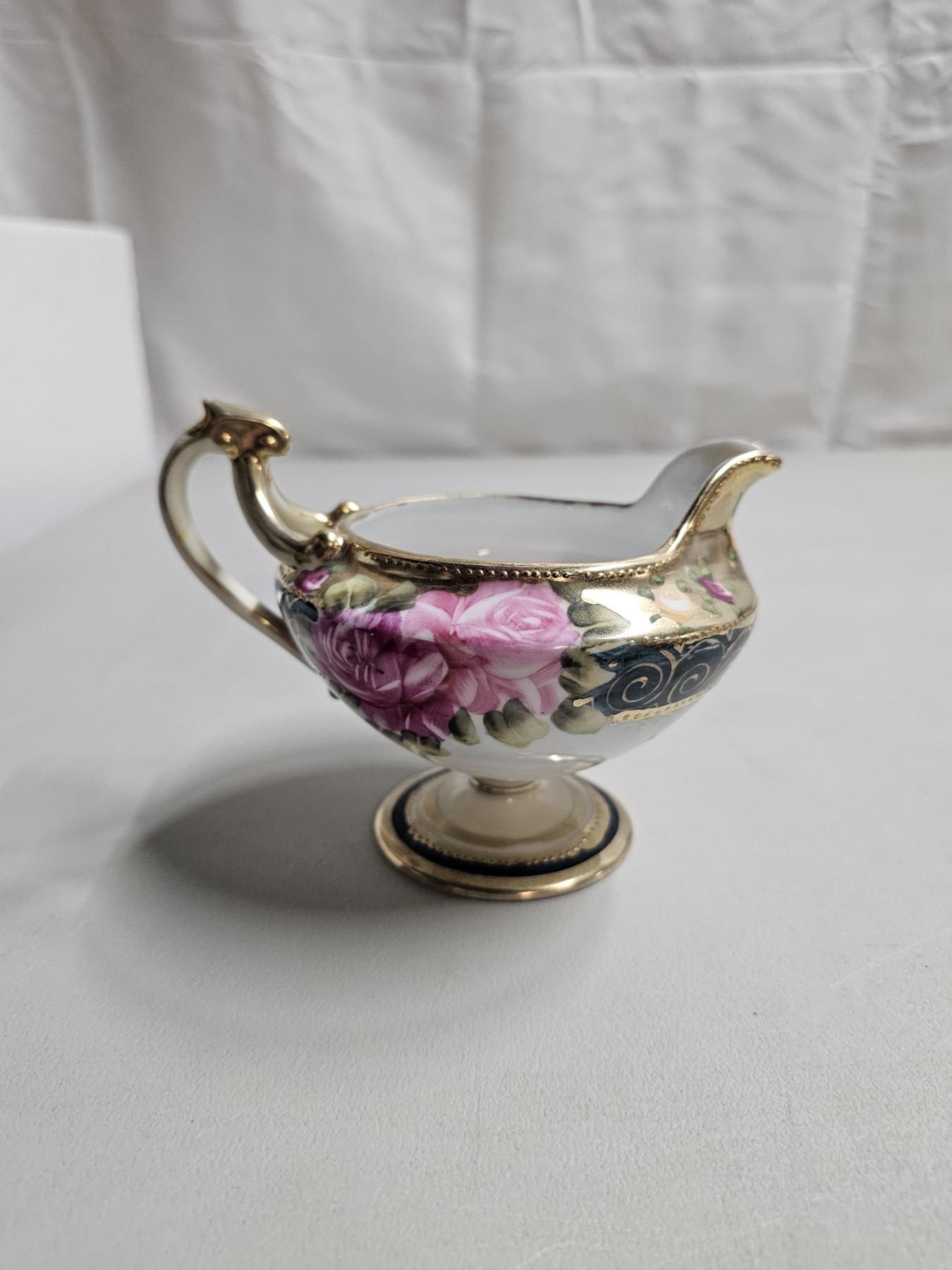 Gold Rimmed Nippon Tea Set (4pc) - Vintage Japanese Tea Set, Includes 6" Tea Pot, 5" Creamer, 5" Sugar Pot, 5" Tea Saucer