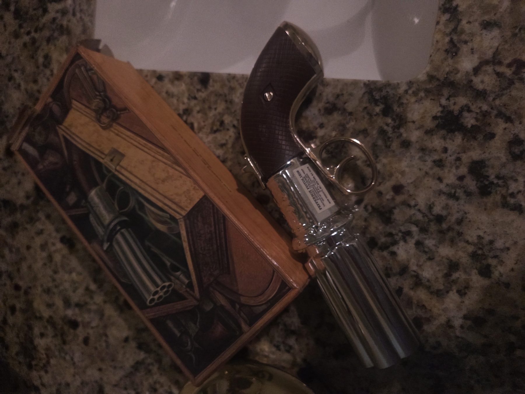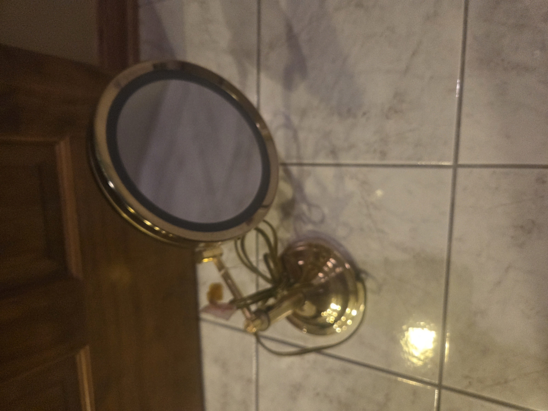 Gold Tone Magnifying Lighted Mirror, & Vintage Pistol Avon Bottle Collectable