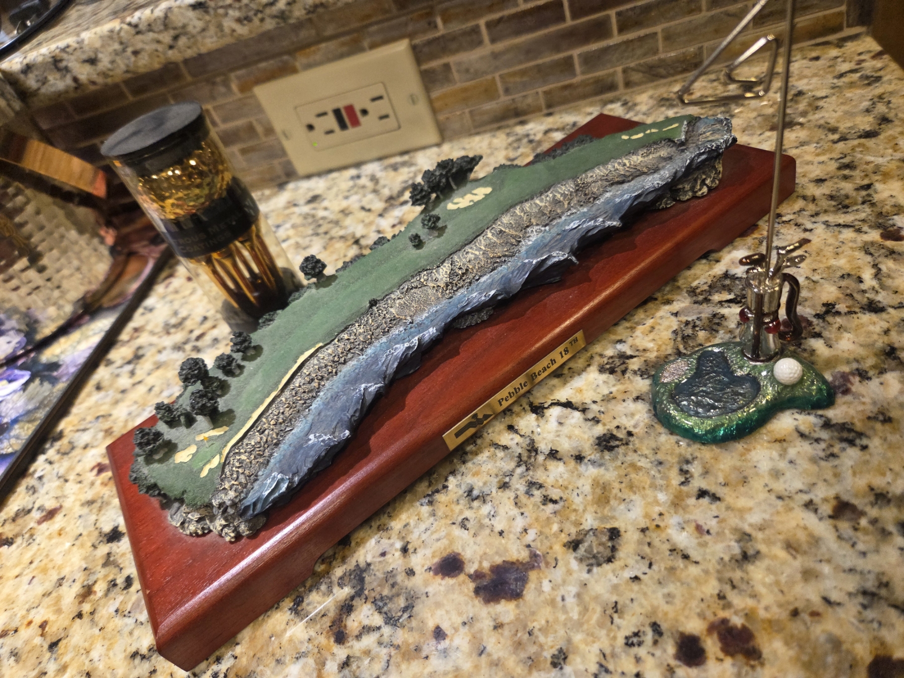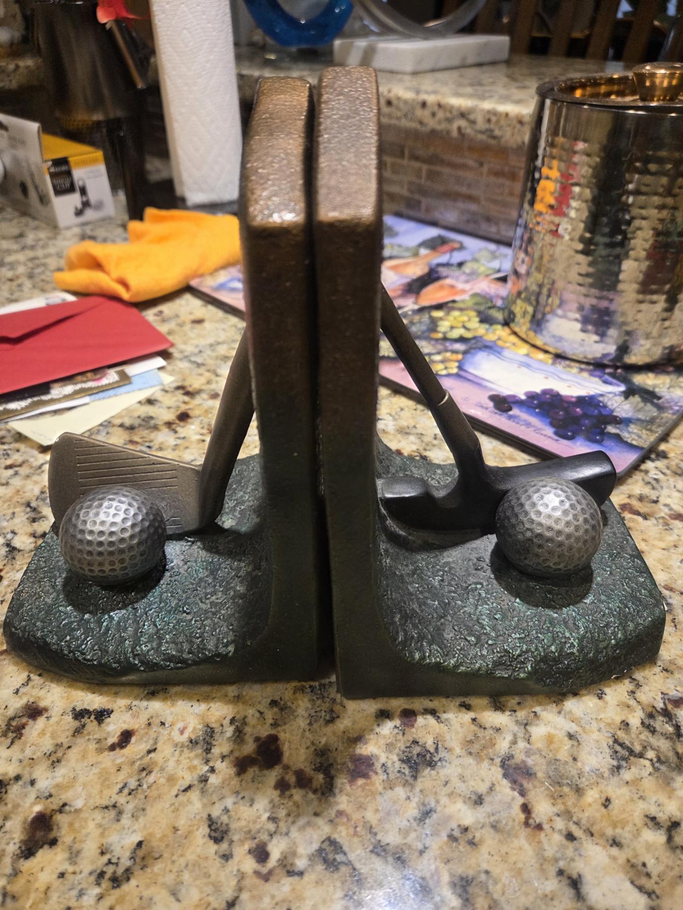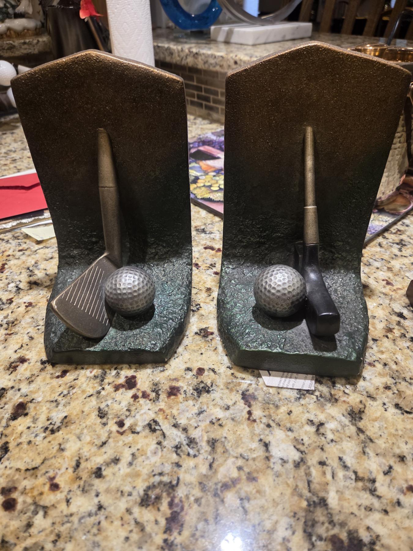 Golf Bookends, Golden Advertising Ball Set, Picture Holder, Fairway Replica Decor