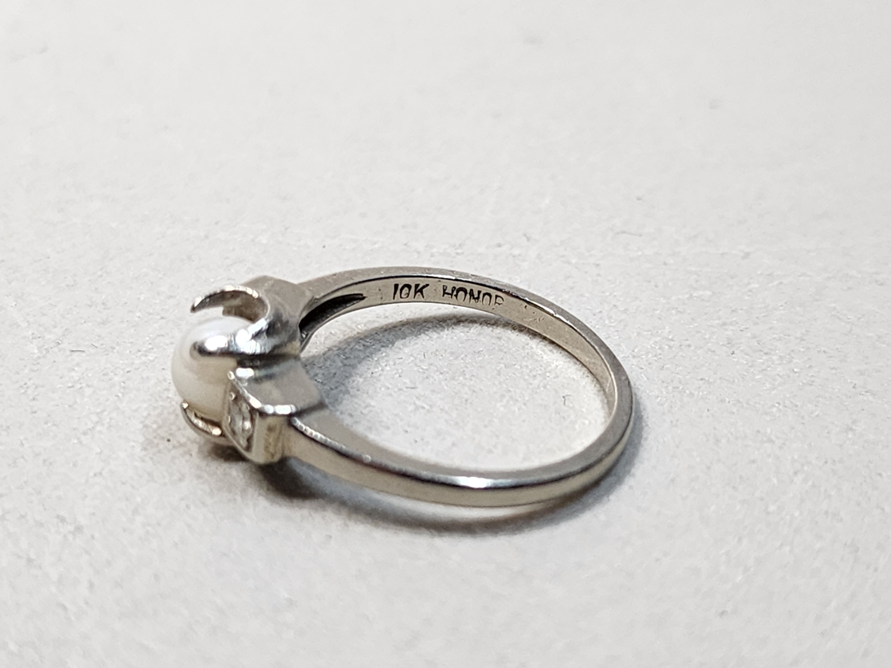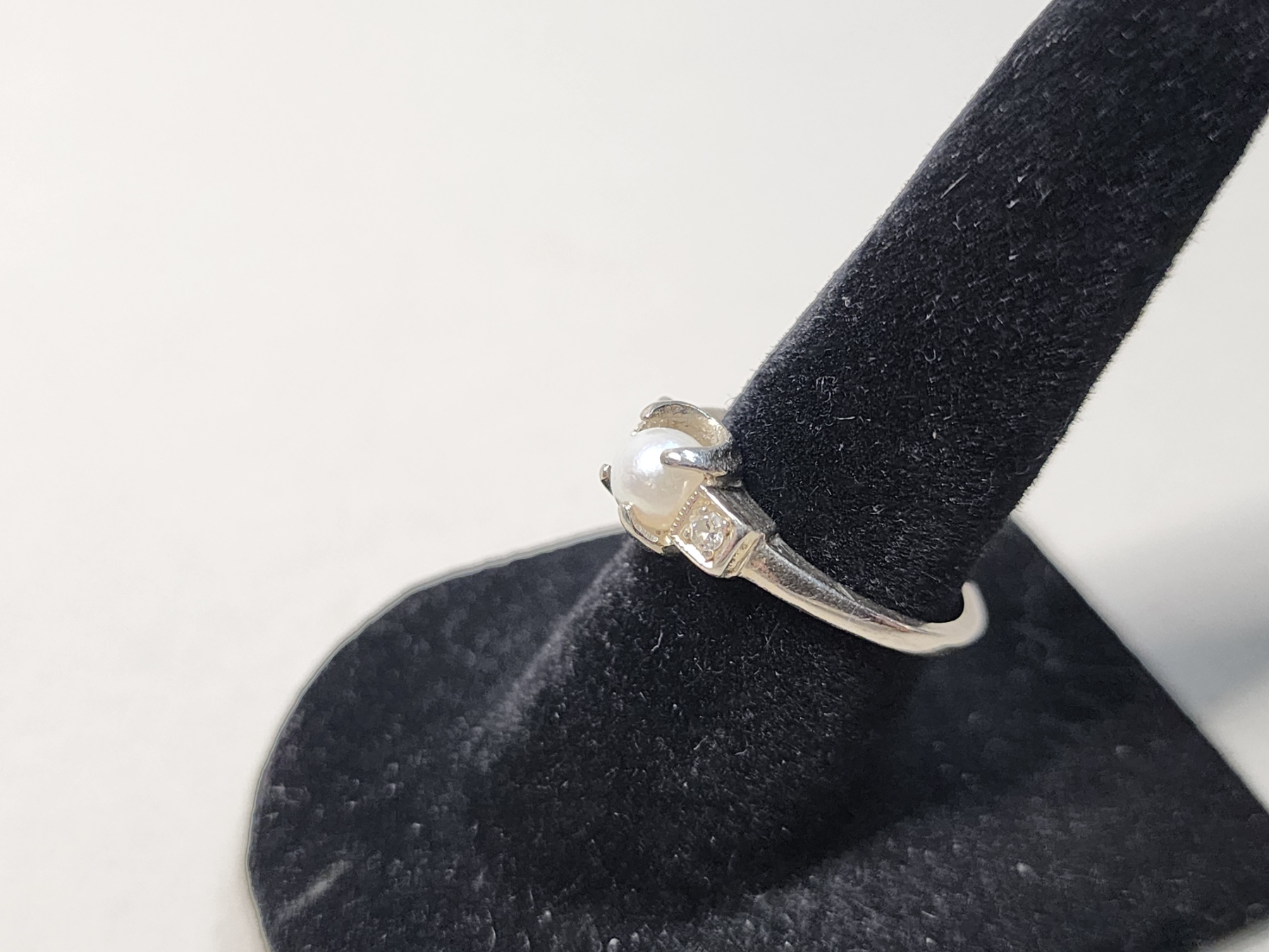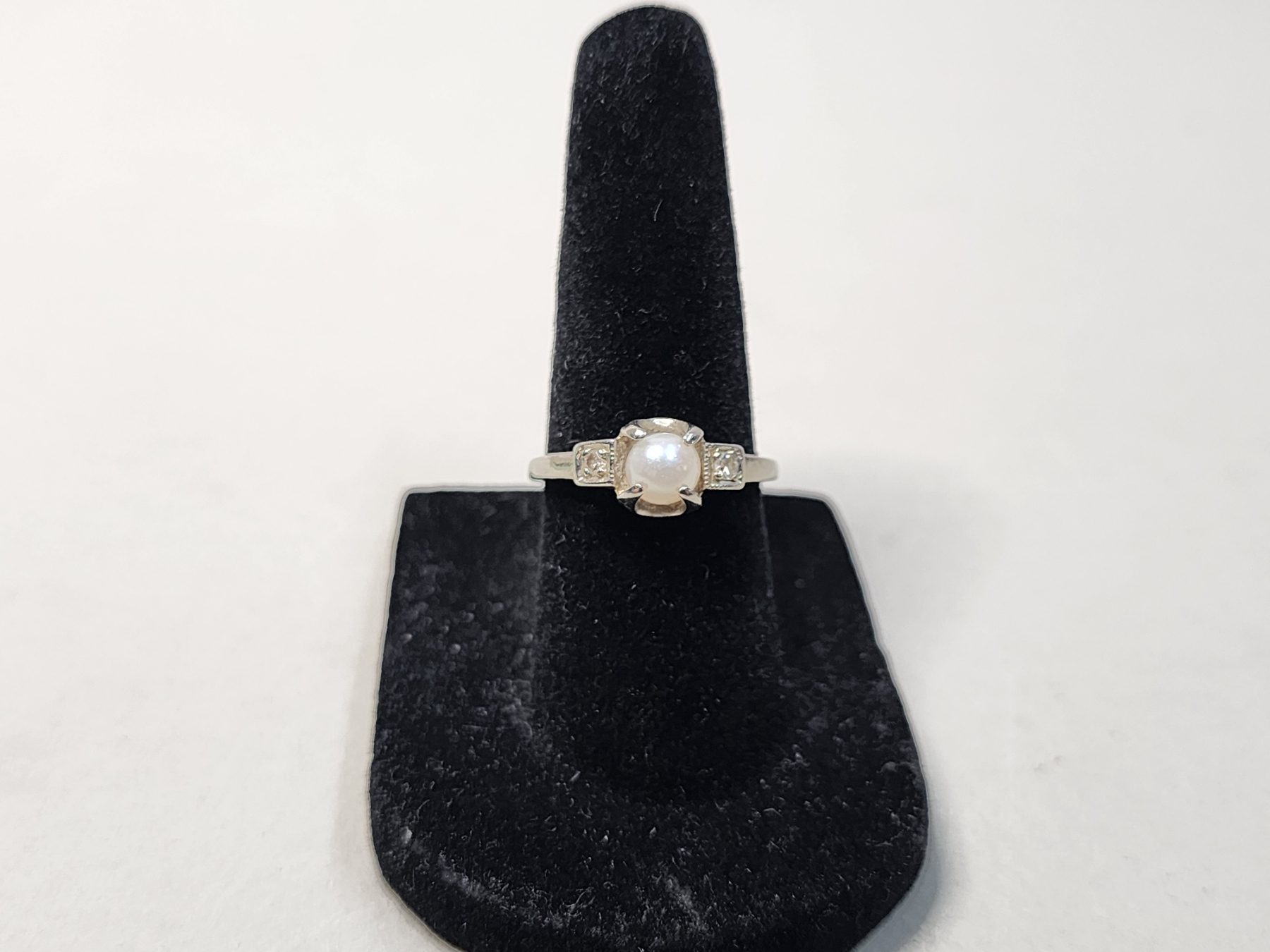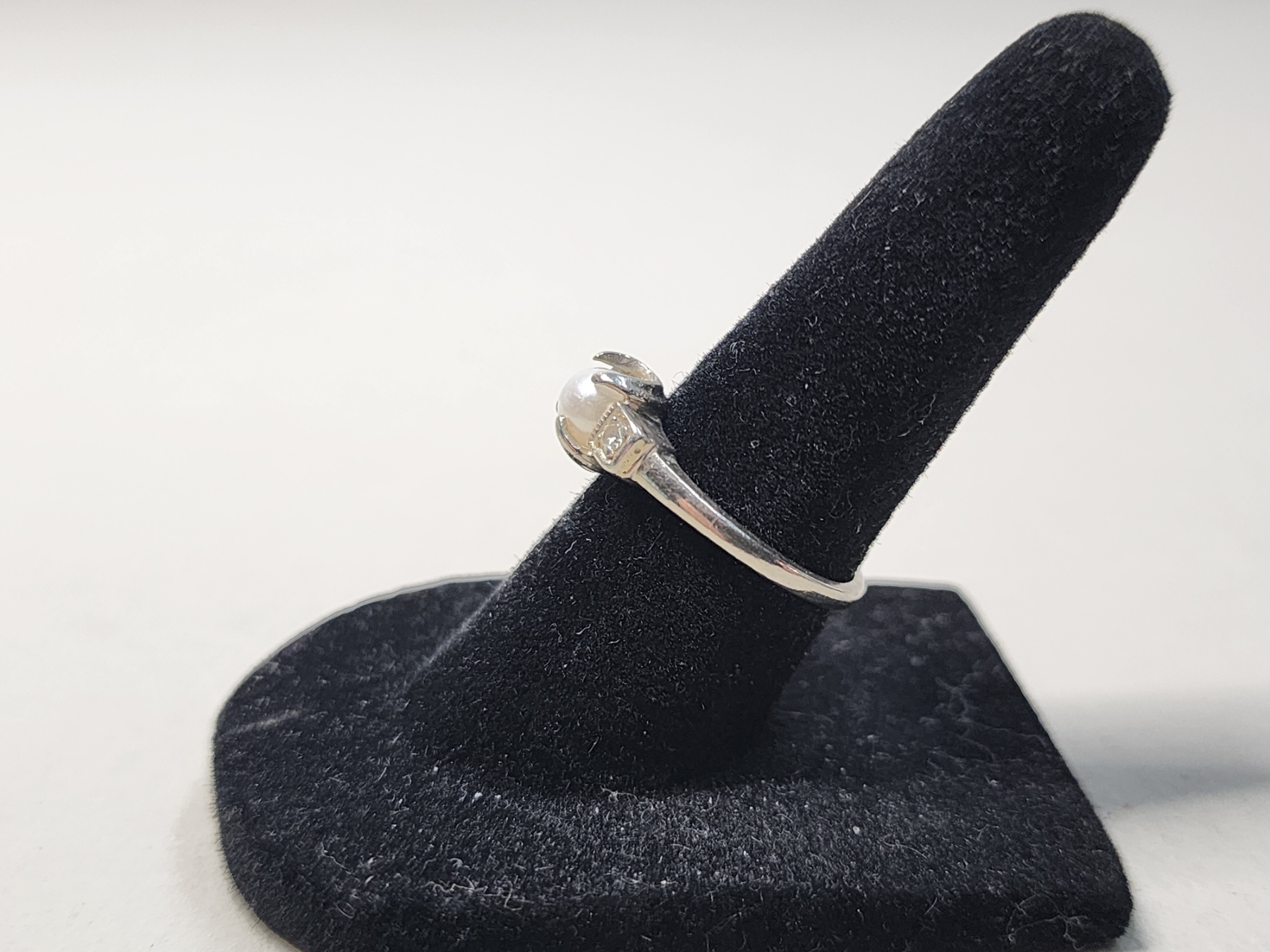 Gorgeous 10K White Gold Ring with Pearl - Size 6 - Total Weight 2.4g