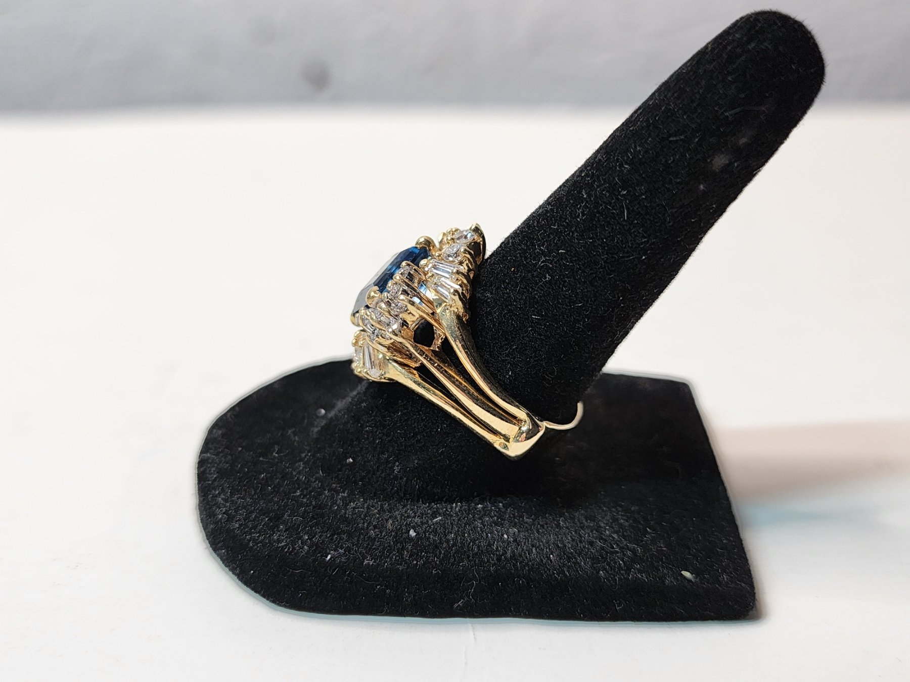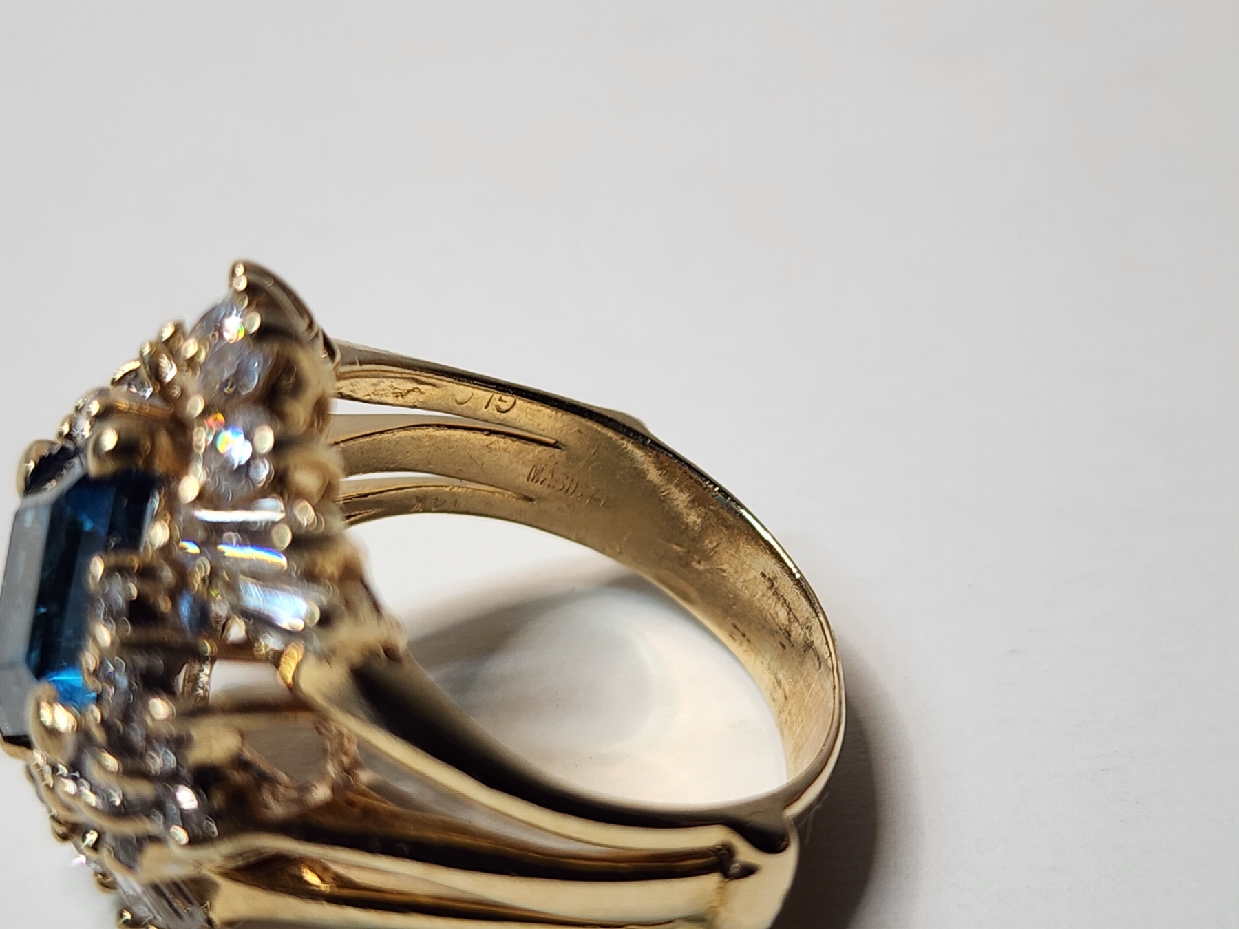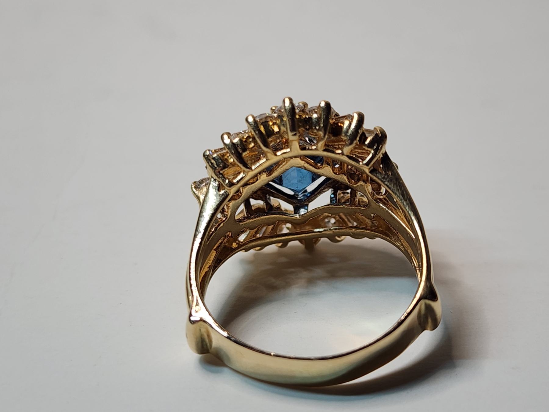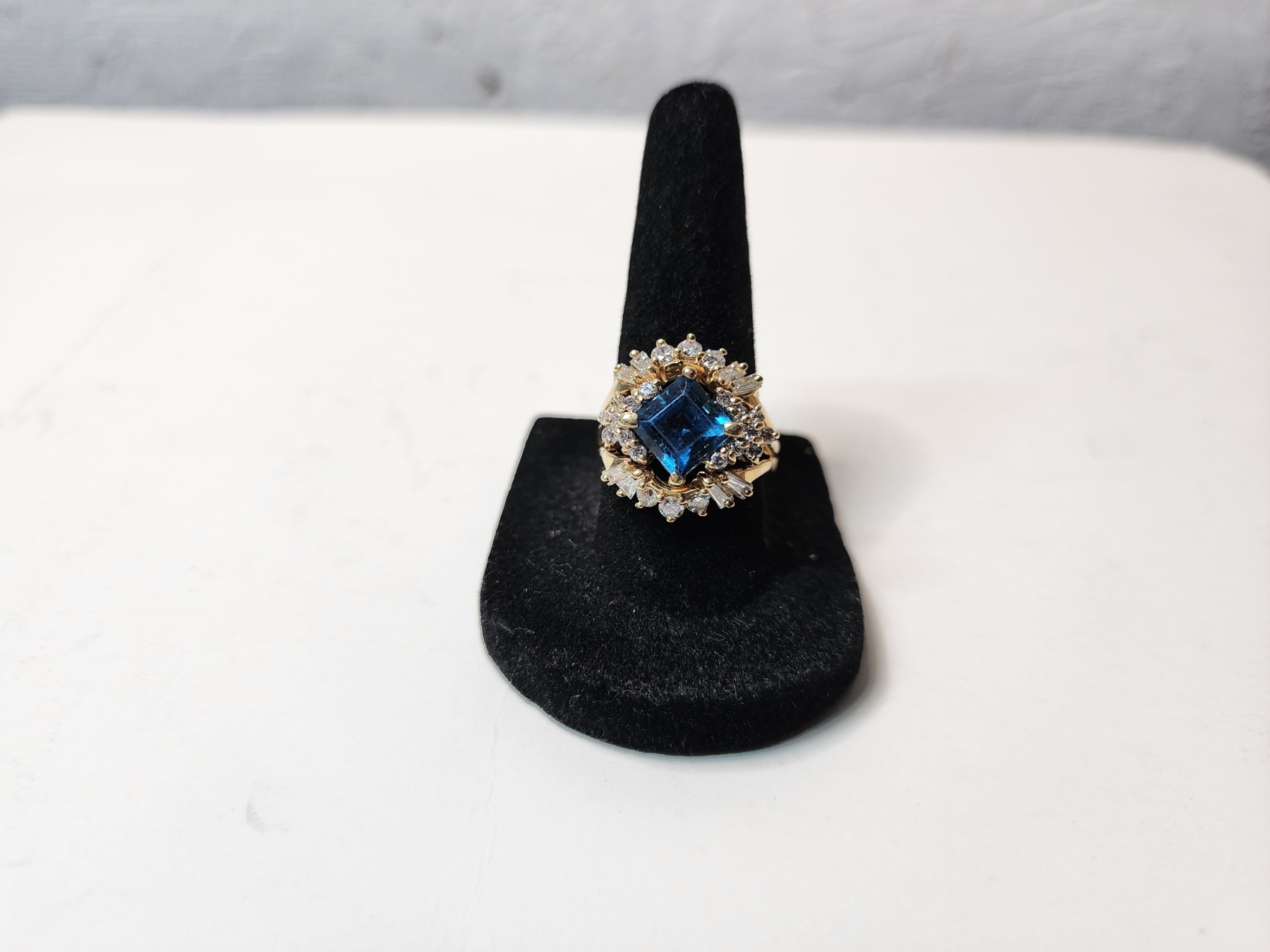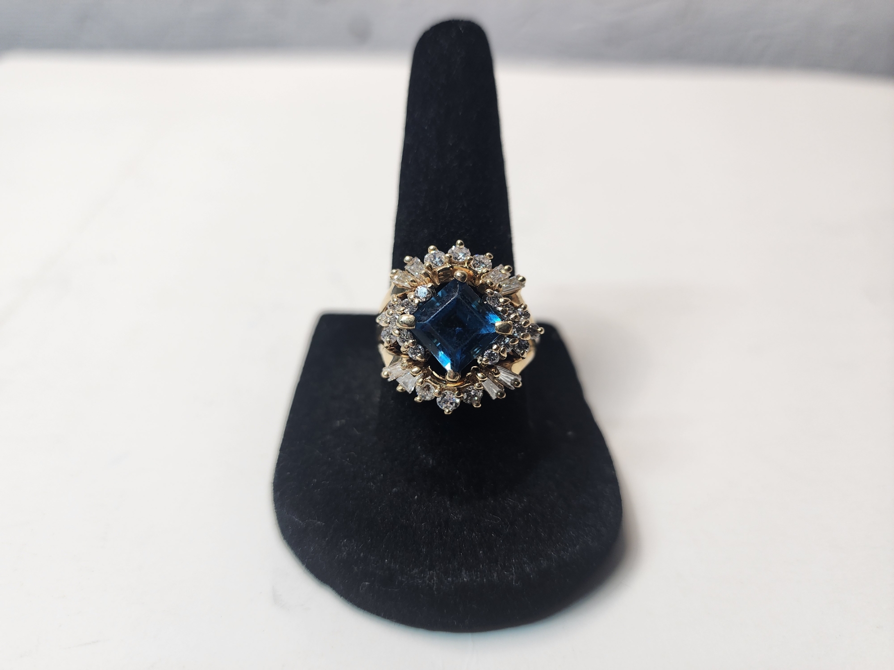 Gorgeous 14K Gold Ring with Diamonds and Large Blue Stone Total Weight 7.9g - Size 8
