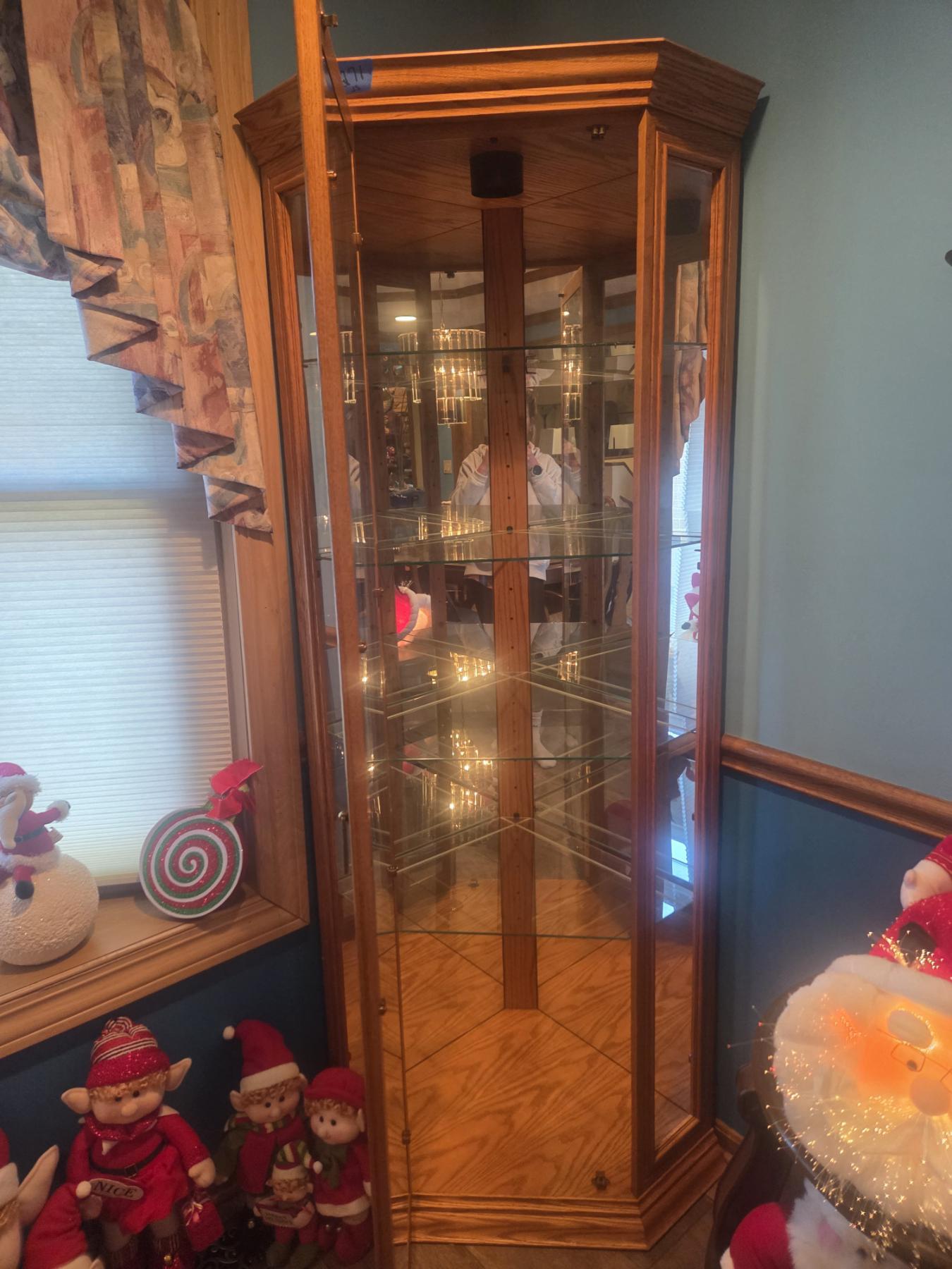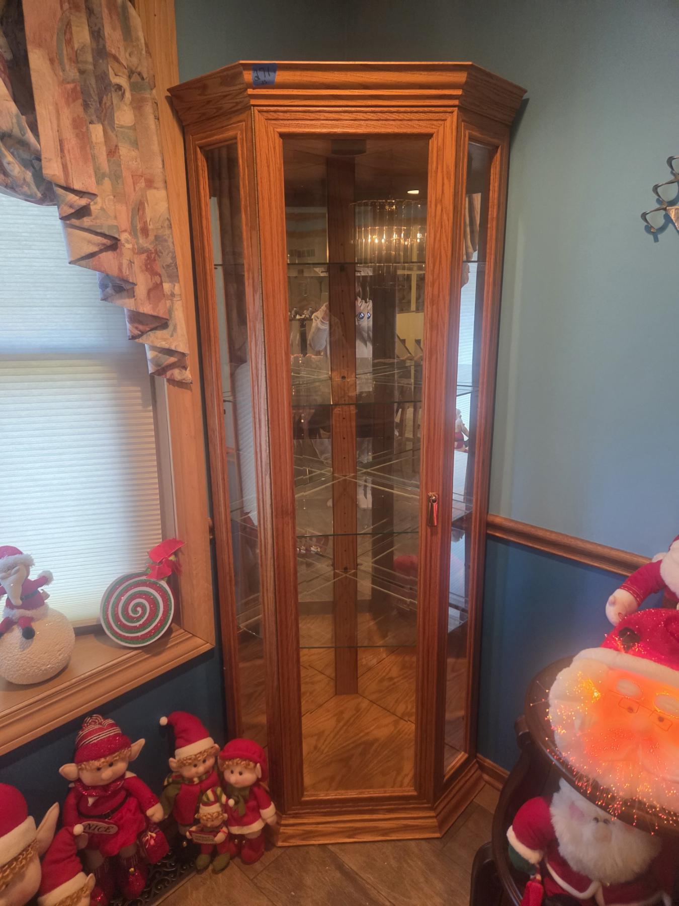 Gorgeous 34"x74" Oak Corner Display Cabinet With Glass Shelving