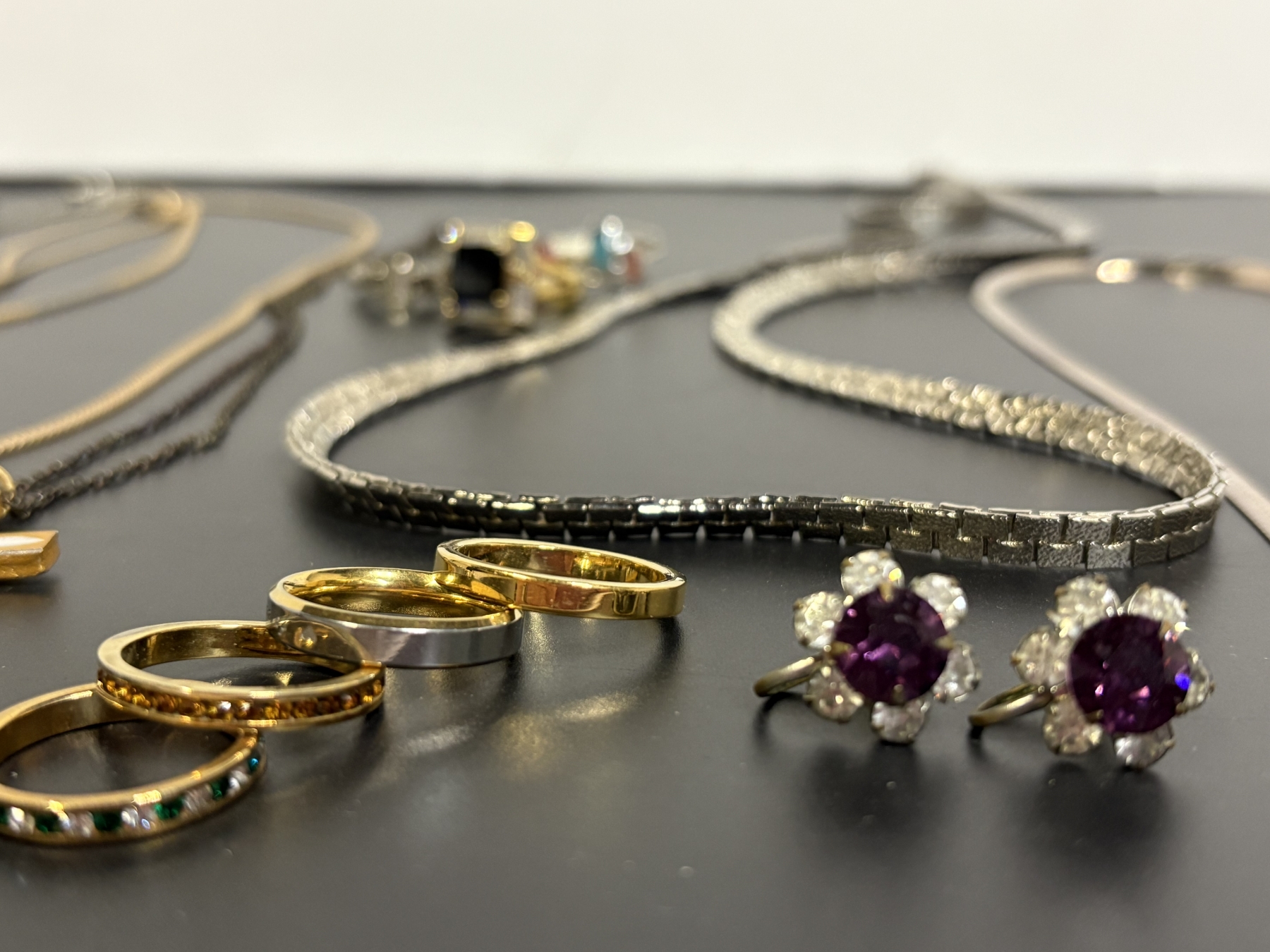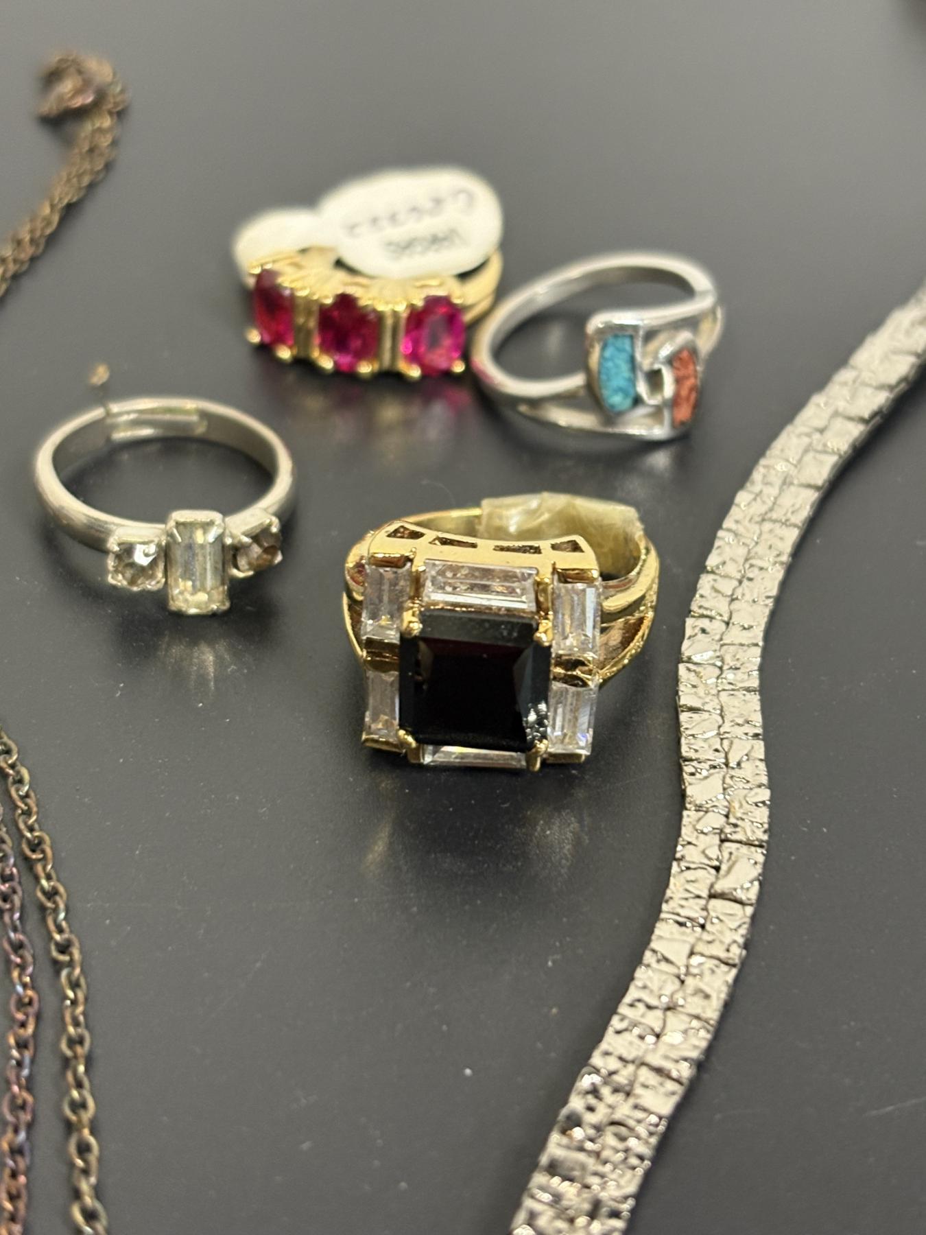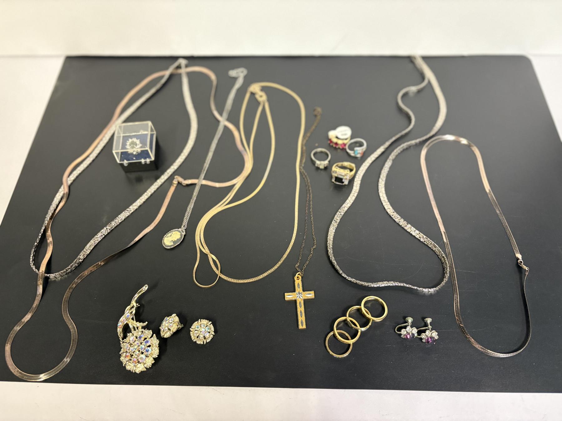 Gorgeous Costume Jewelry - Includes Chains - Cross Necklace - Several Beautiful Rings - Earrings