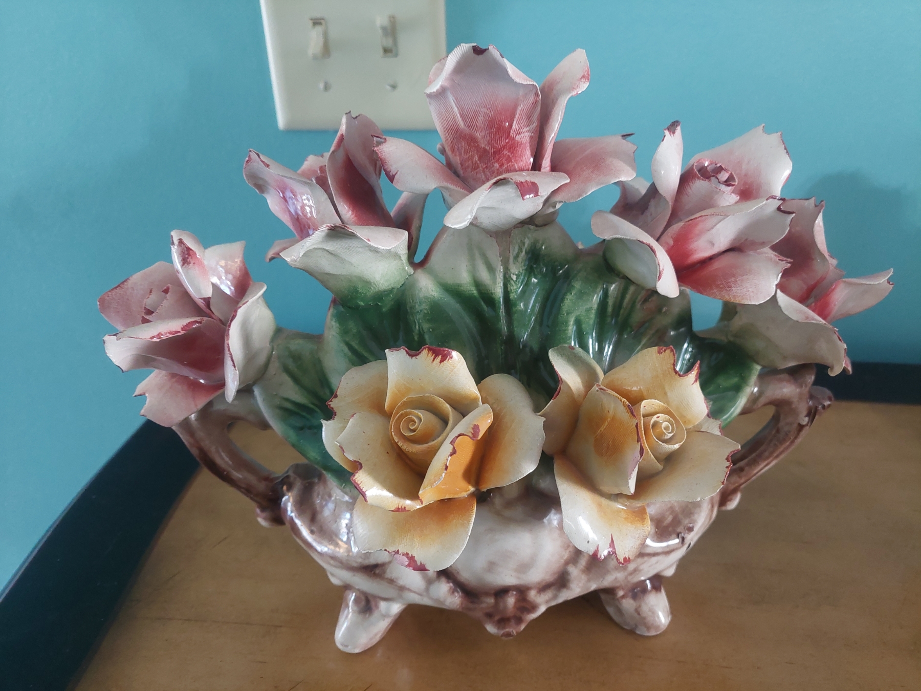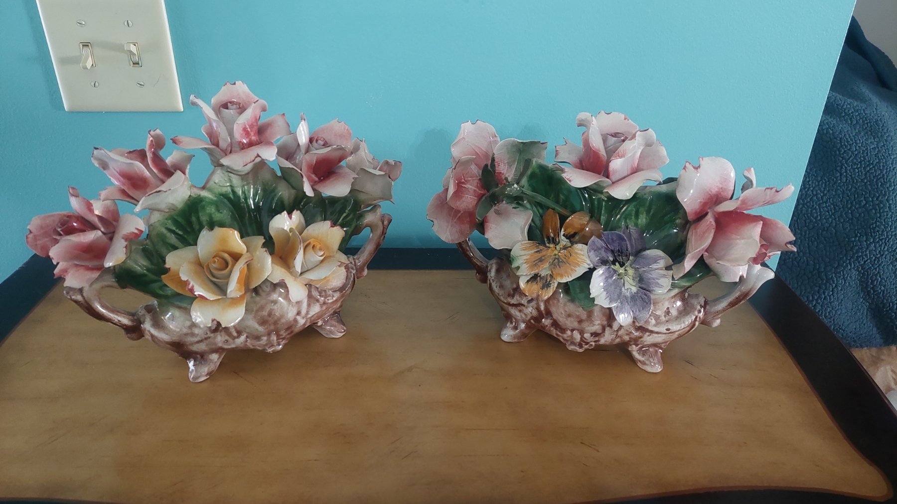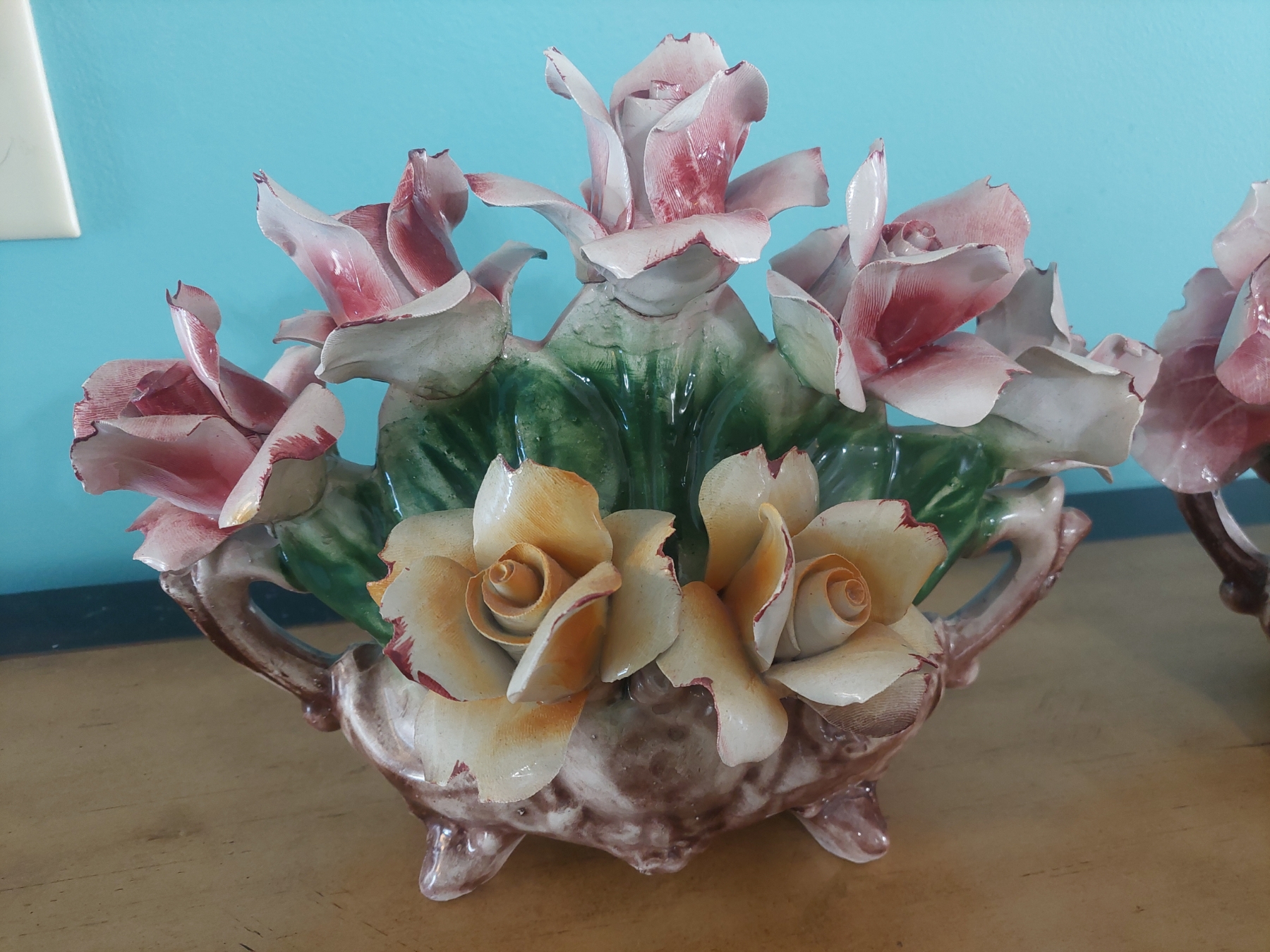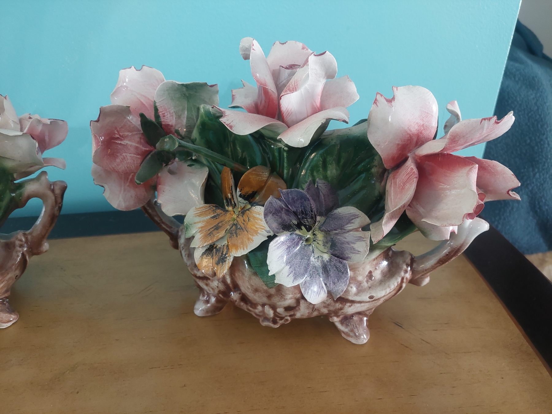 Gorgeous Pair Of Capodimonte Porcelain Floral Arrangements - In Ex Condition. 12" x 8.5" overall