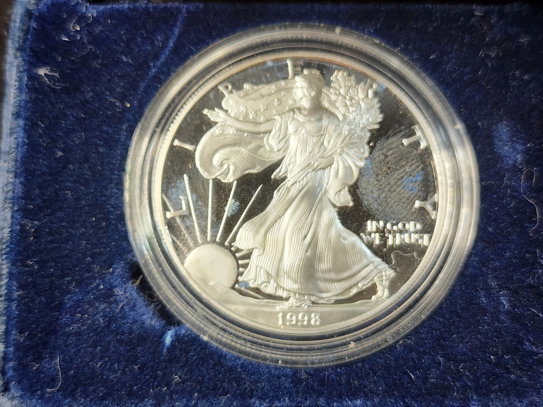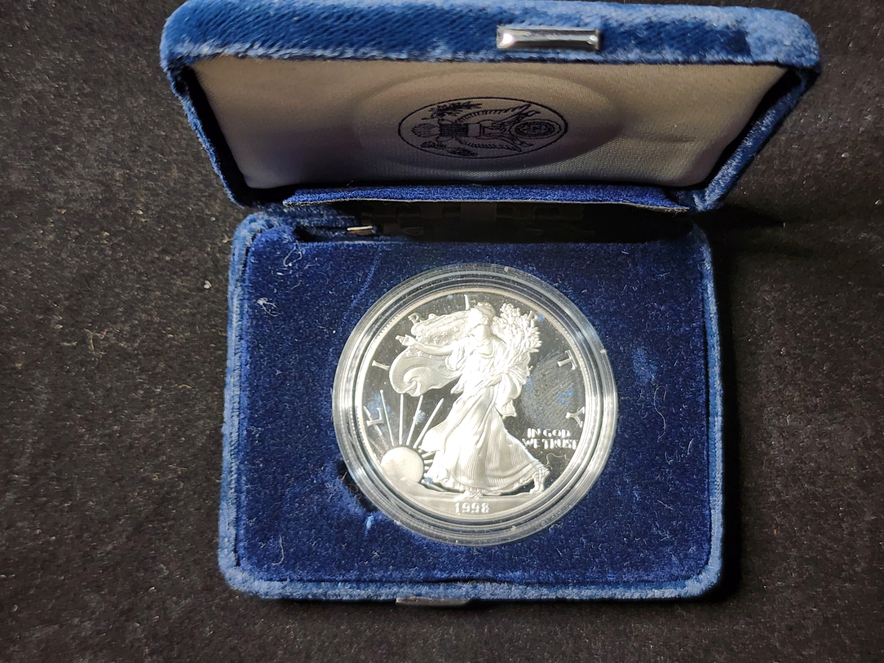 Gorgeous Proof 1998-P Fine Silver 1 Oz American Eagle in Capsule & Storage Box