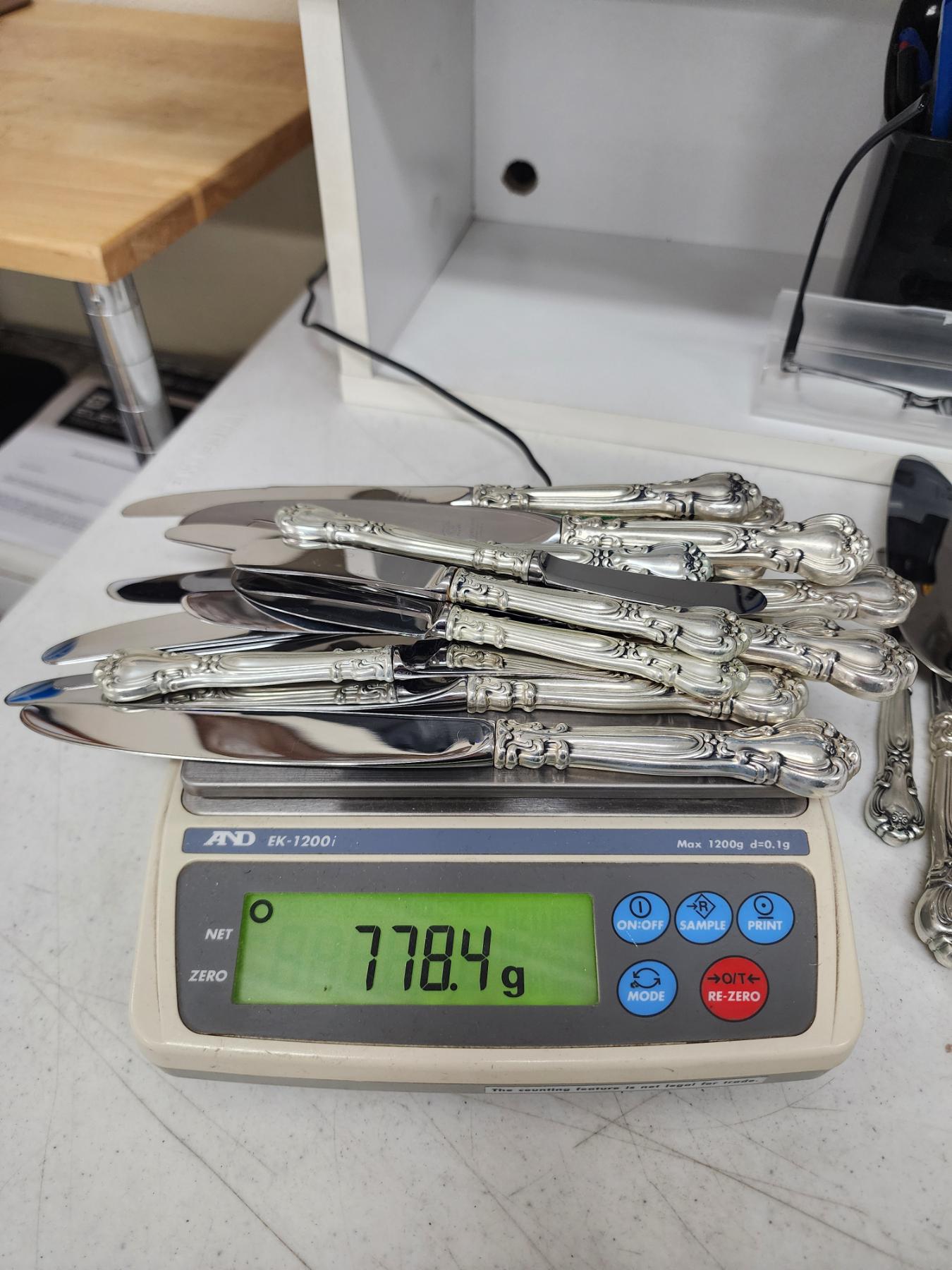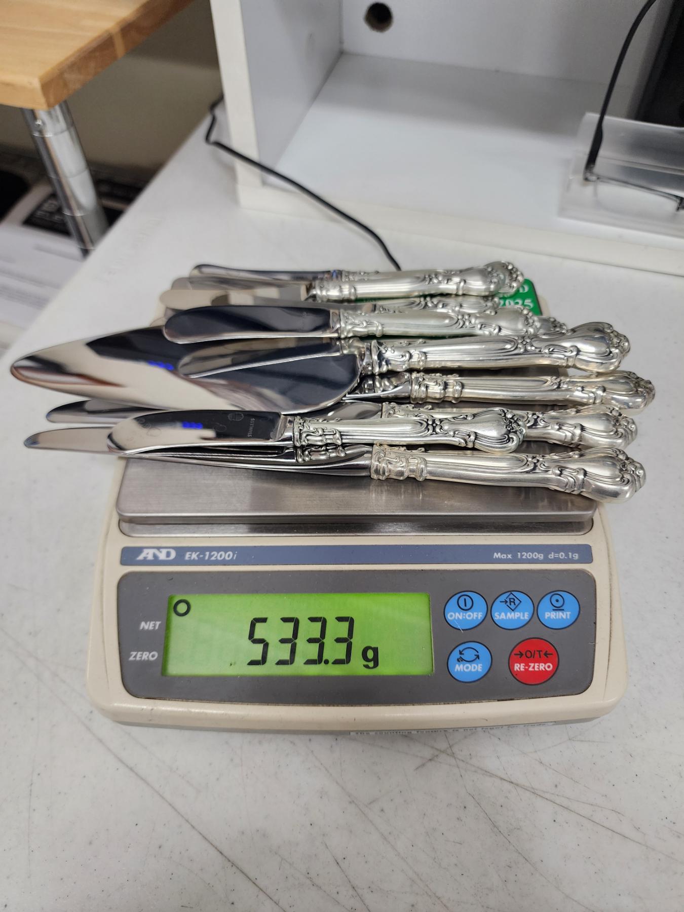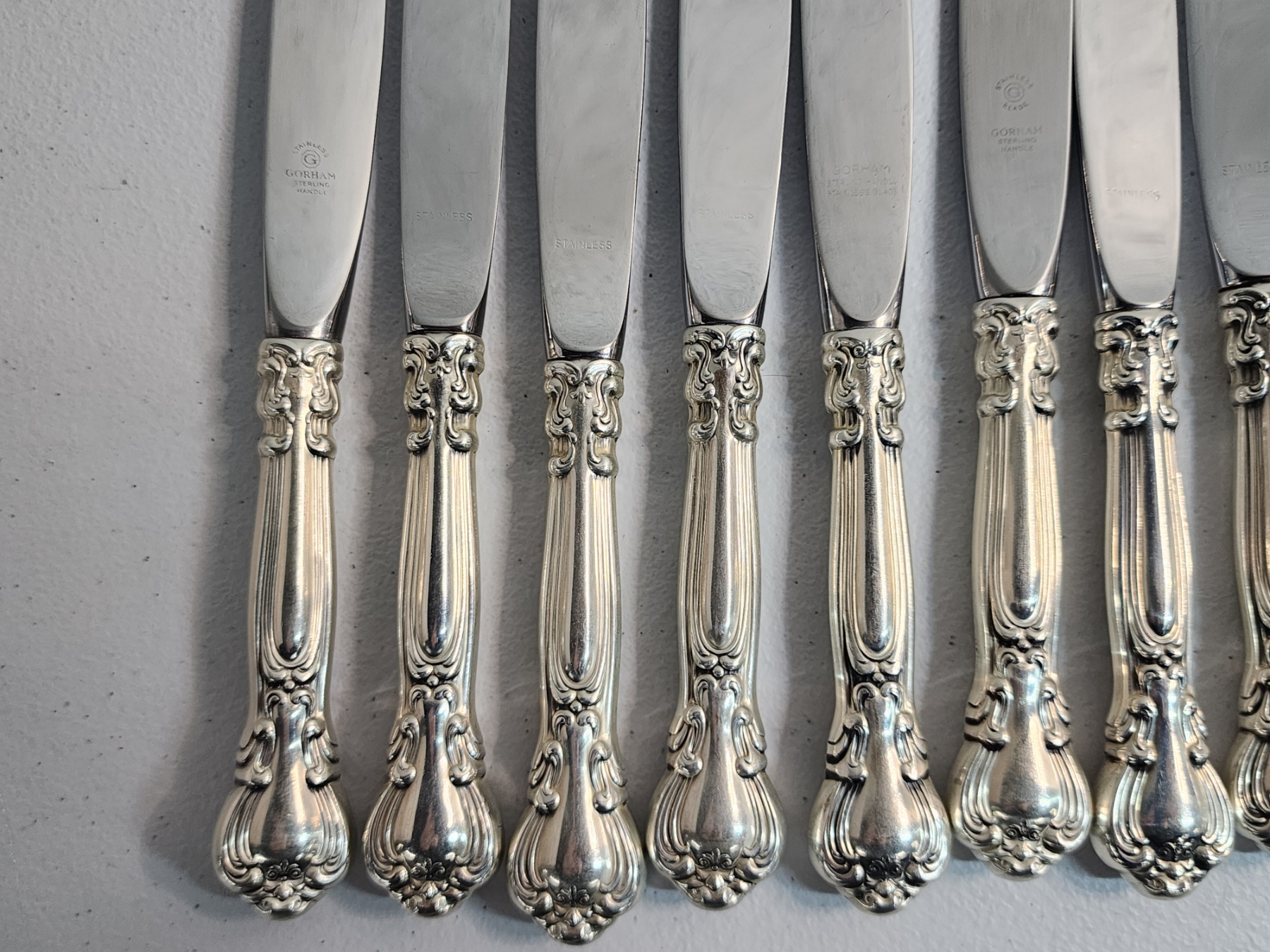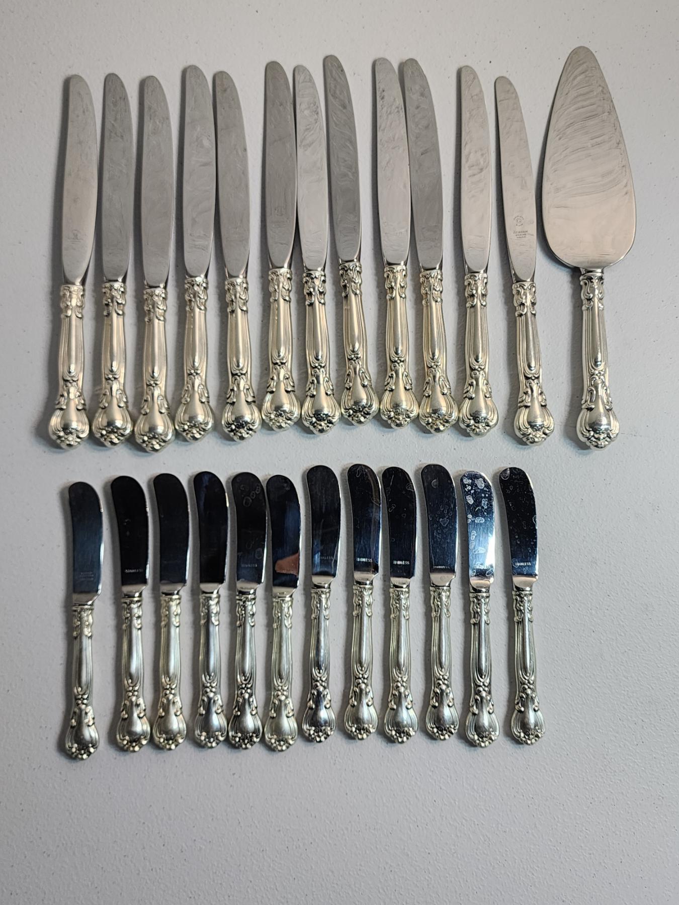Gorham Sterling Silver Chantilly Knives and Server - 25 Pieces TW: 1311.7g