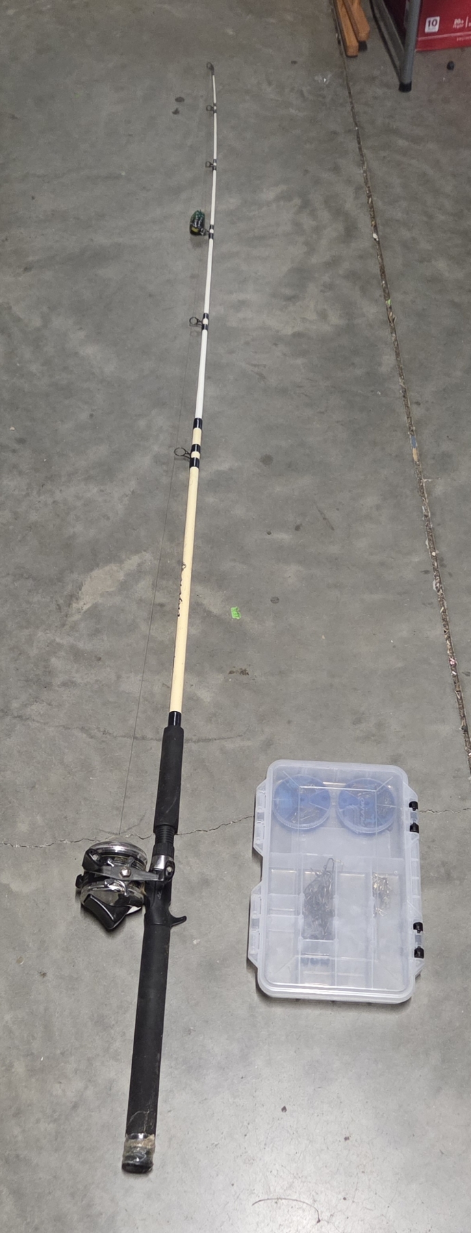 Great Condition Shakespeare Tiger Rod With Zebco The Hawg 733 Reel 8-15lbs 6.6''ft Long With Small Clear Plano Box With Great Hook Selection!