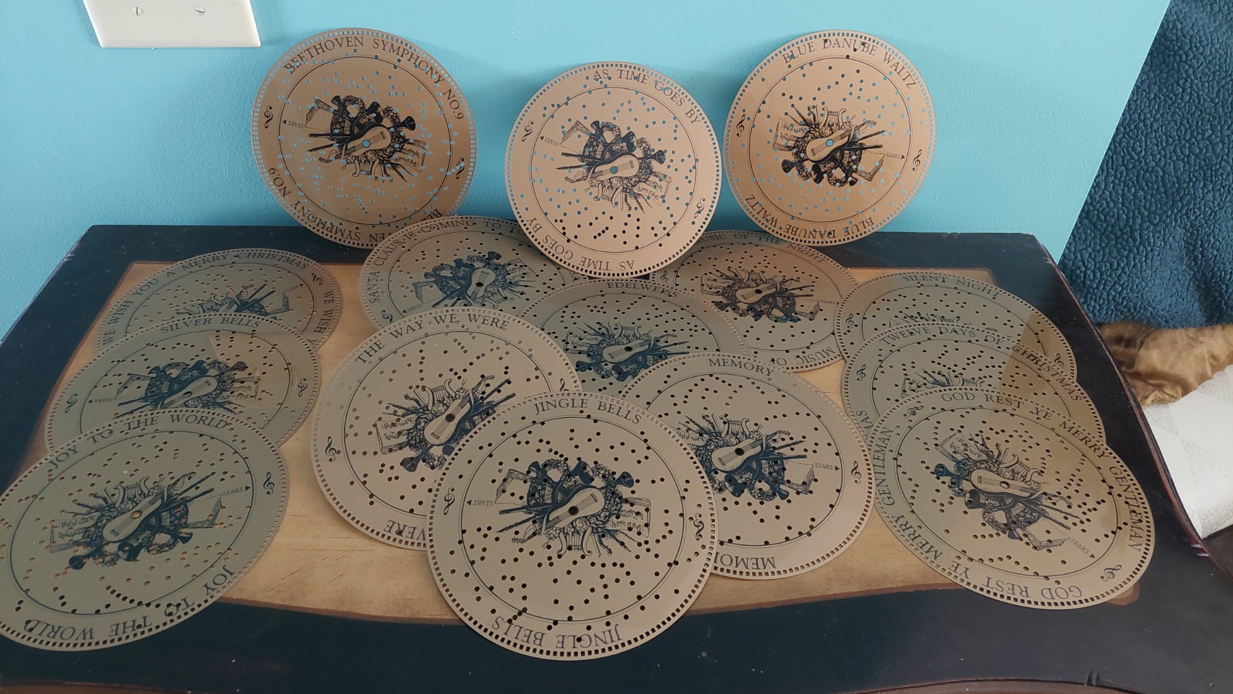 Group Of 15 7 1/2" Music Discs - Maker Unknown - See Pics For Songs - These Are Plastic