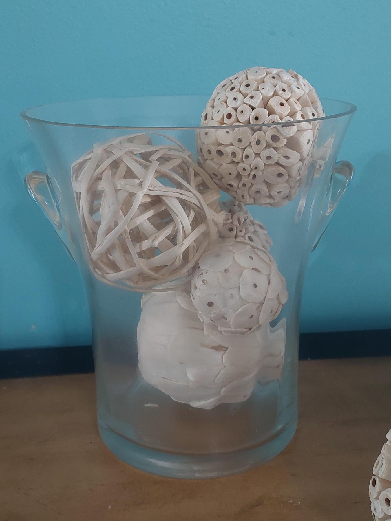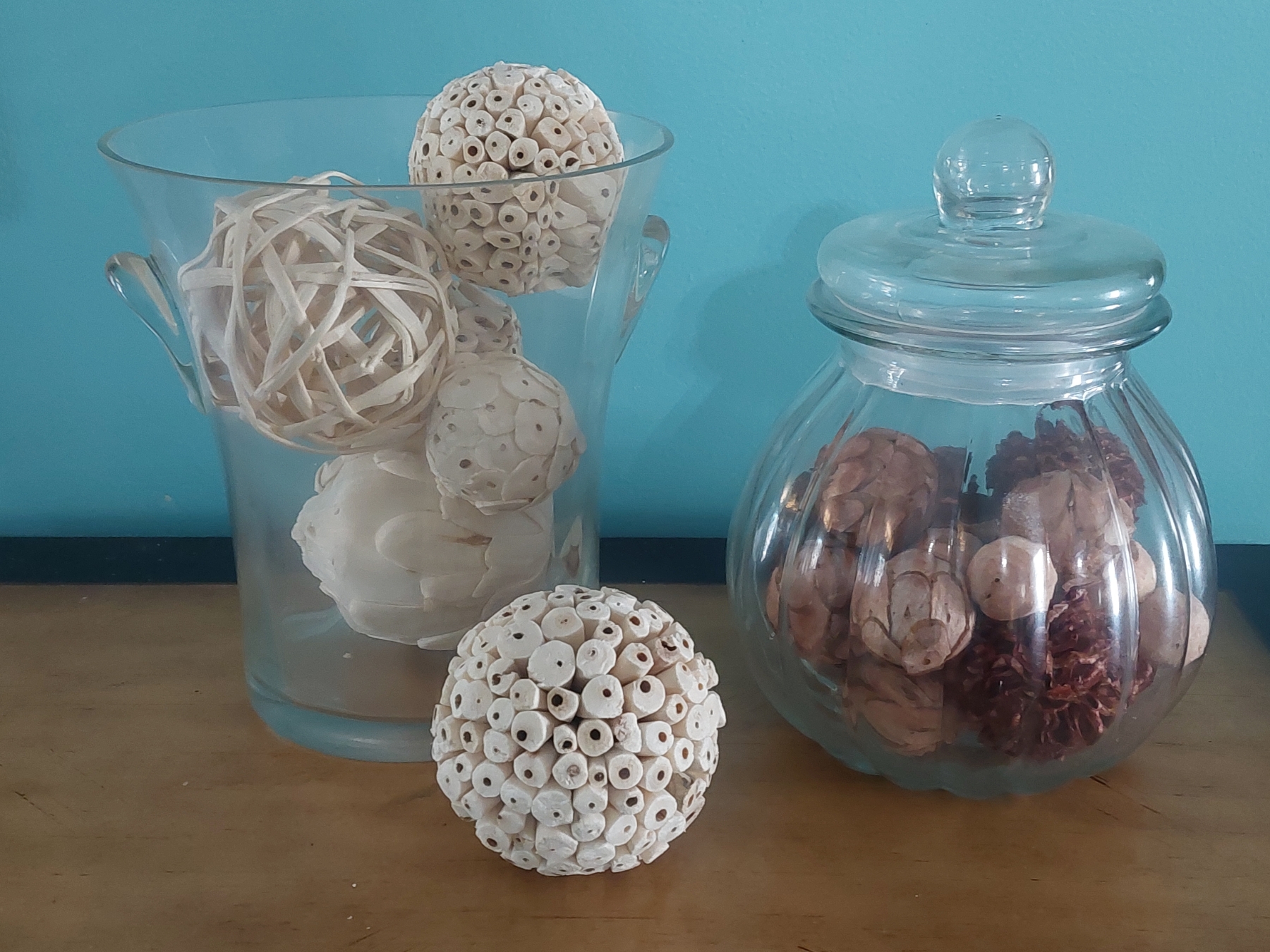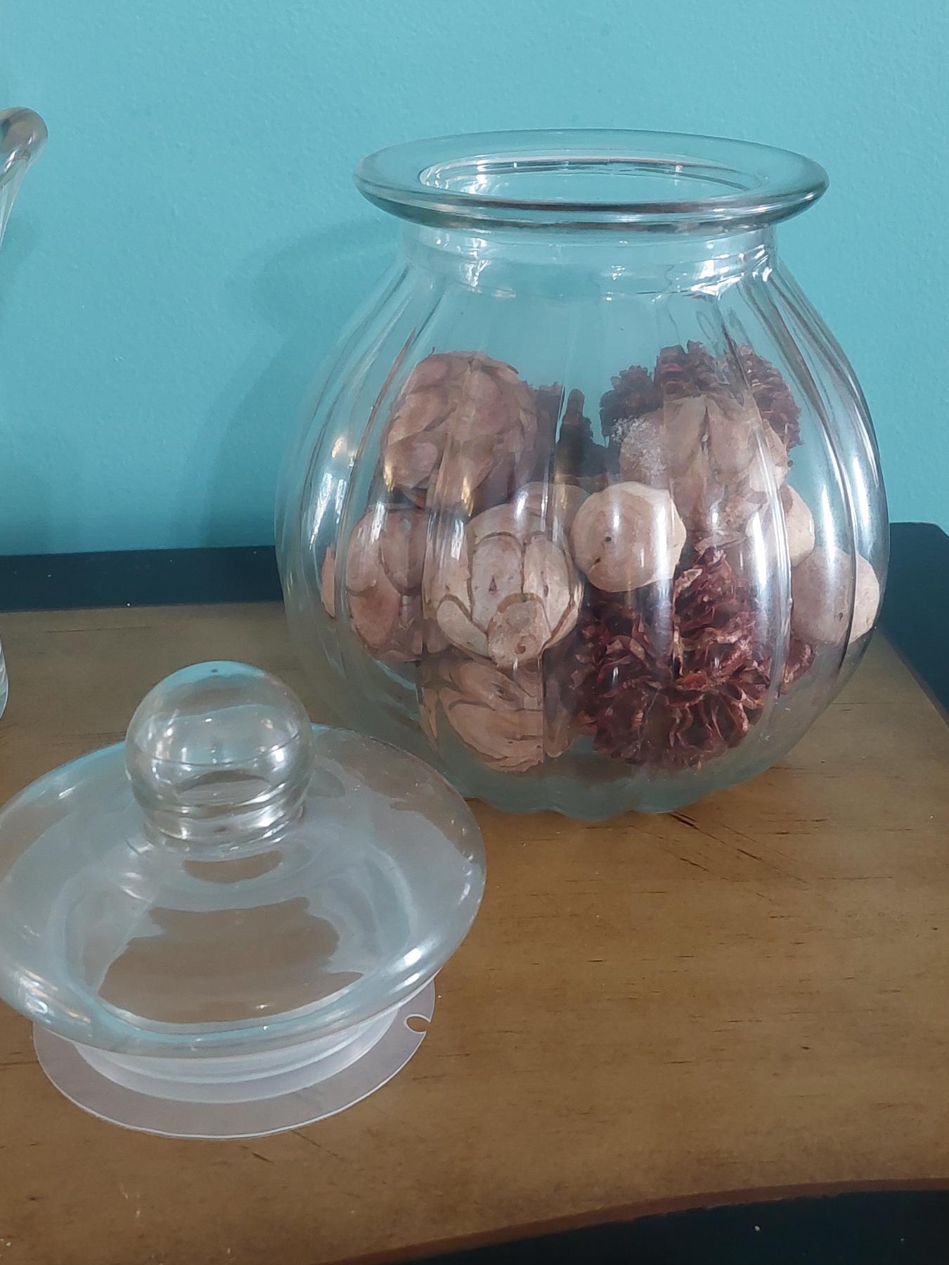 Grouping - Home Decor Items Including Glass, Vase, covered Jar & Contents