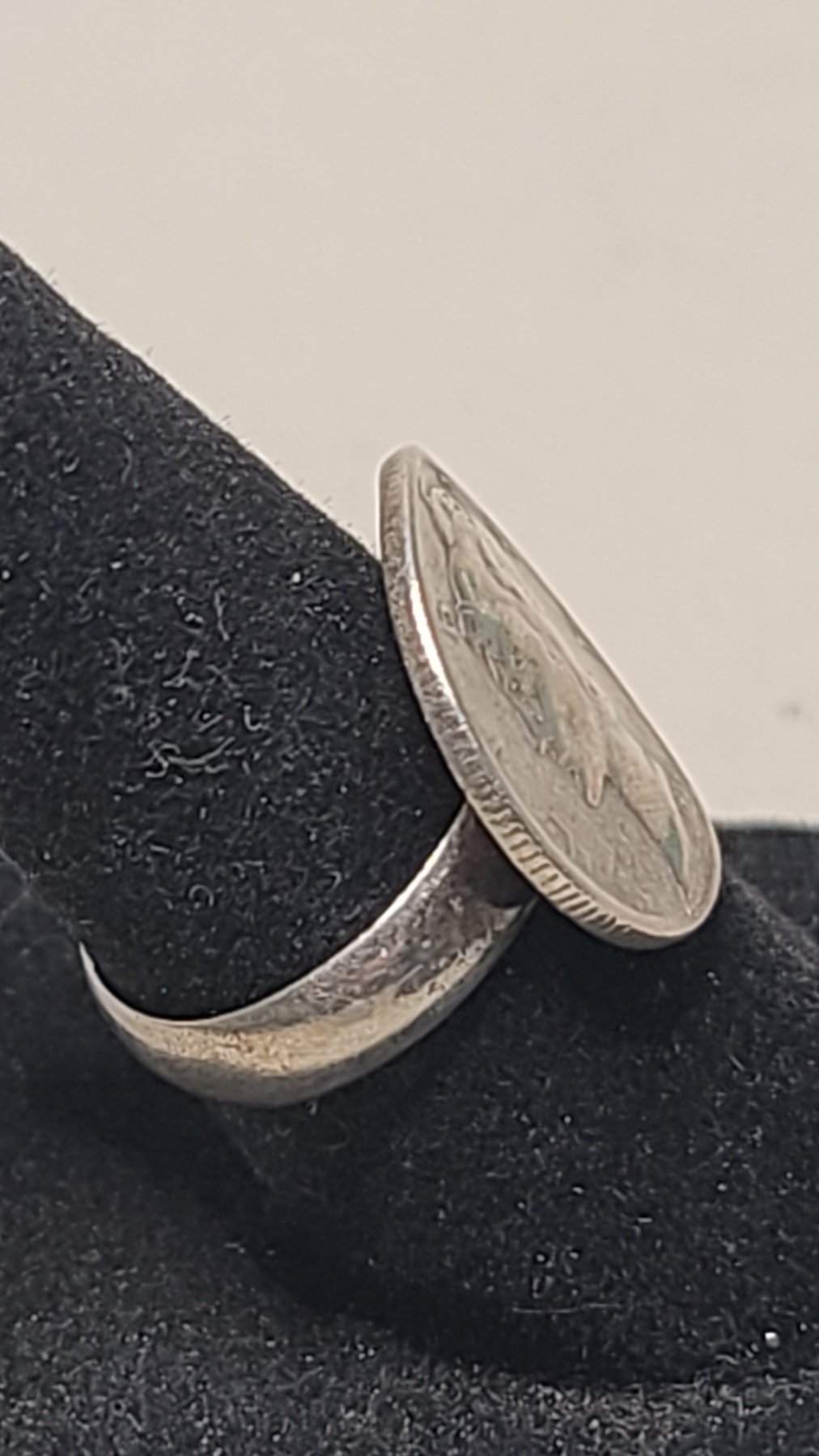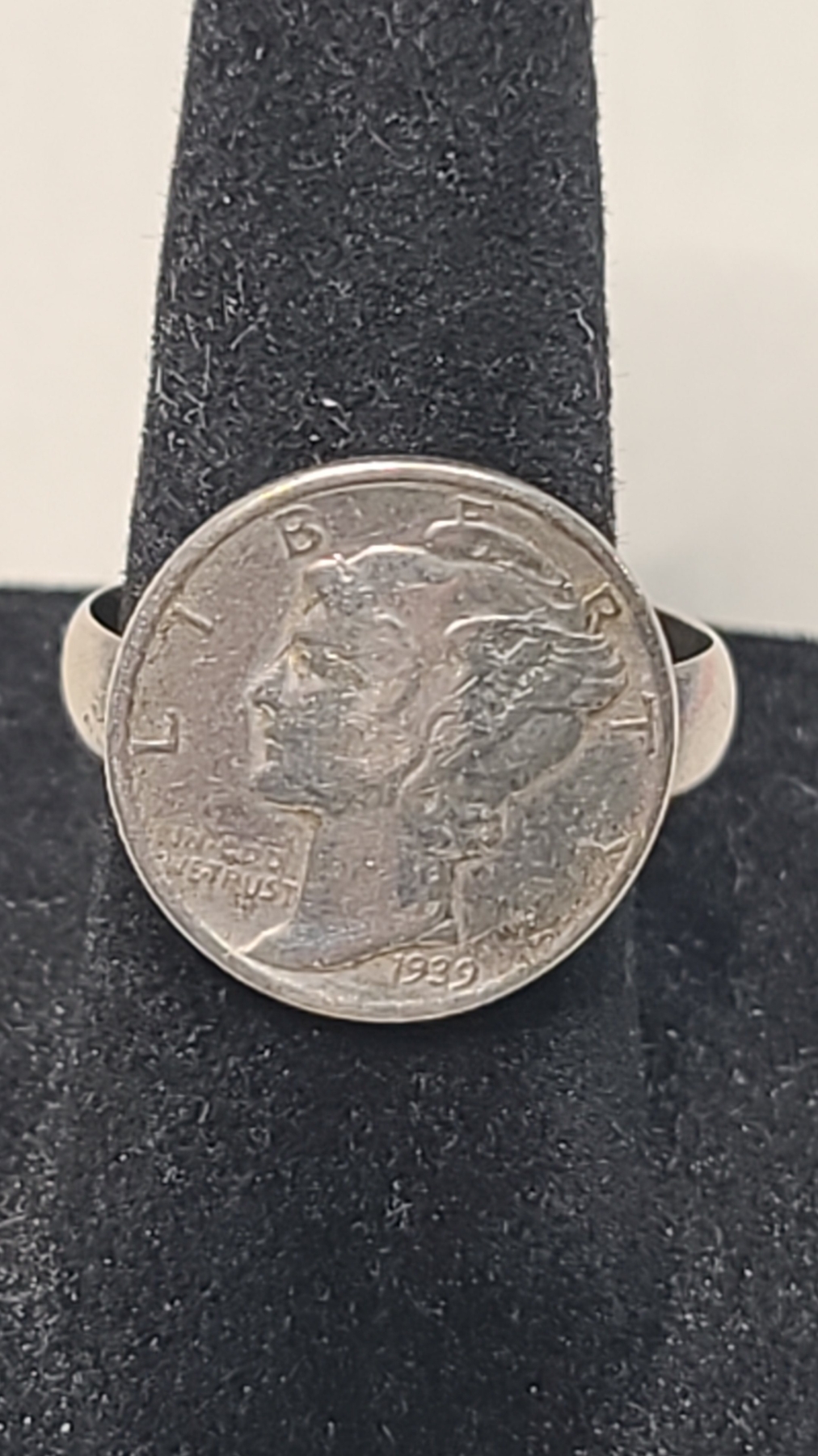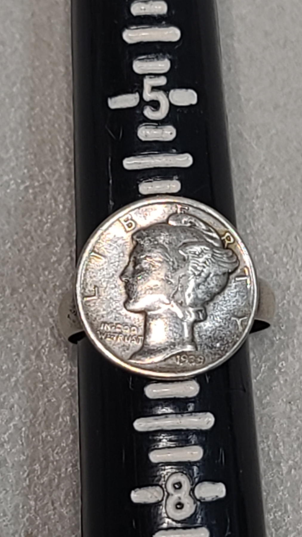 This is a handmade ring. The only part that is silver is the mercury dime.