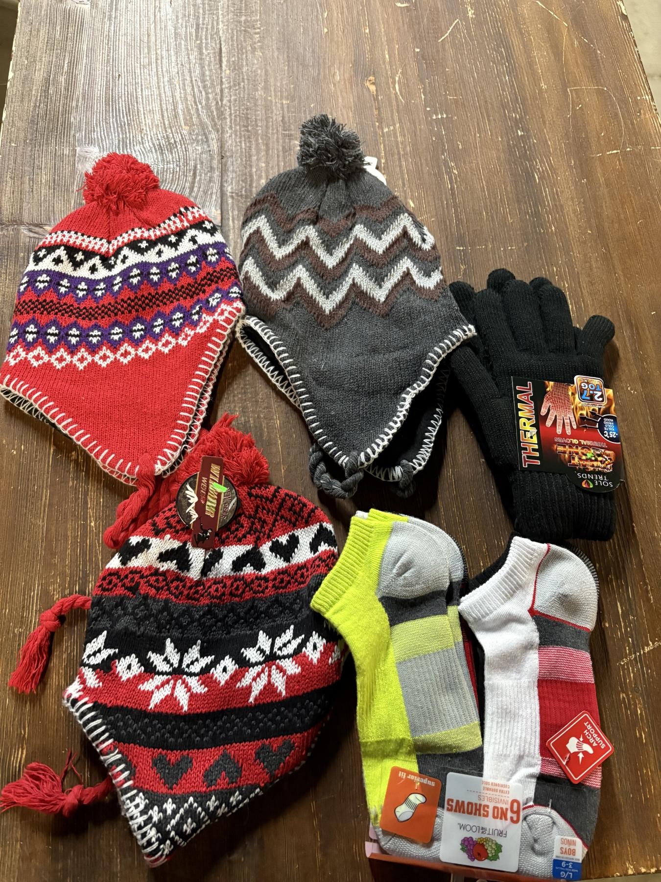 Hats - Thermal Gloves - Socks - 3 Winter Hats - Fruit of the Loom Socks - Thermal Gloves Black