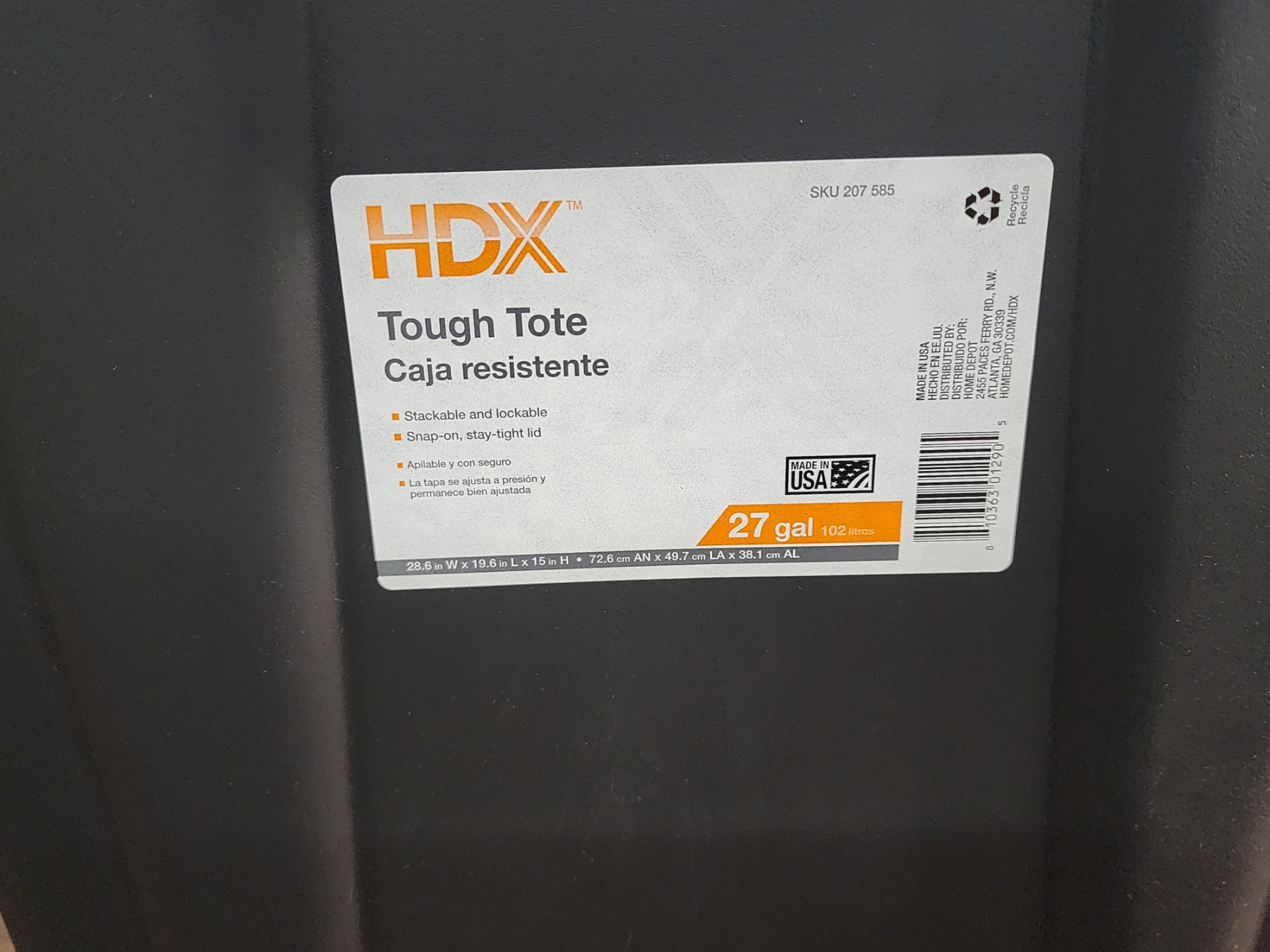 Heavy-Duty HDX 27-Gal Stackable Tote - 28.6in W x 19.6in L x 15in H