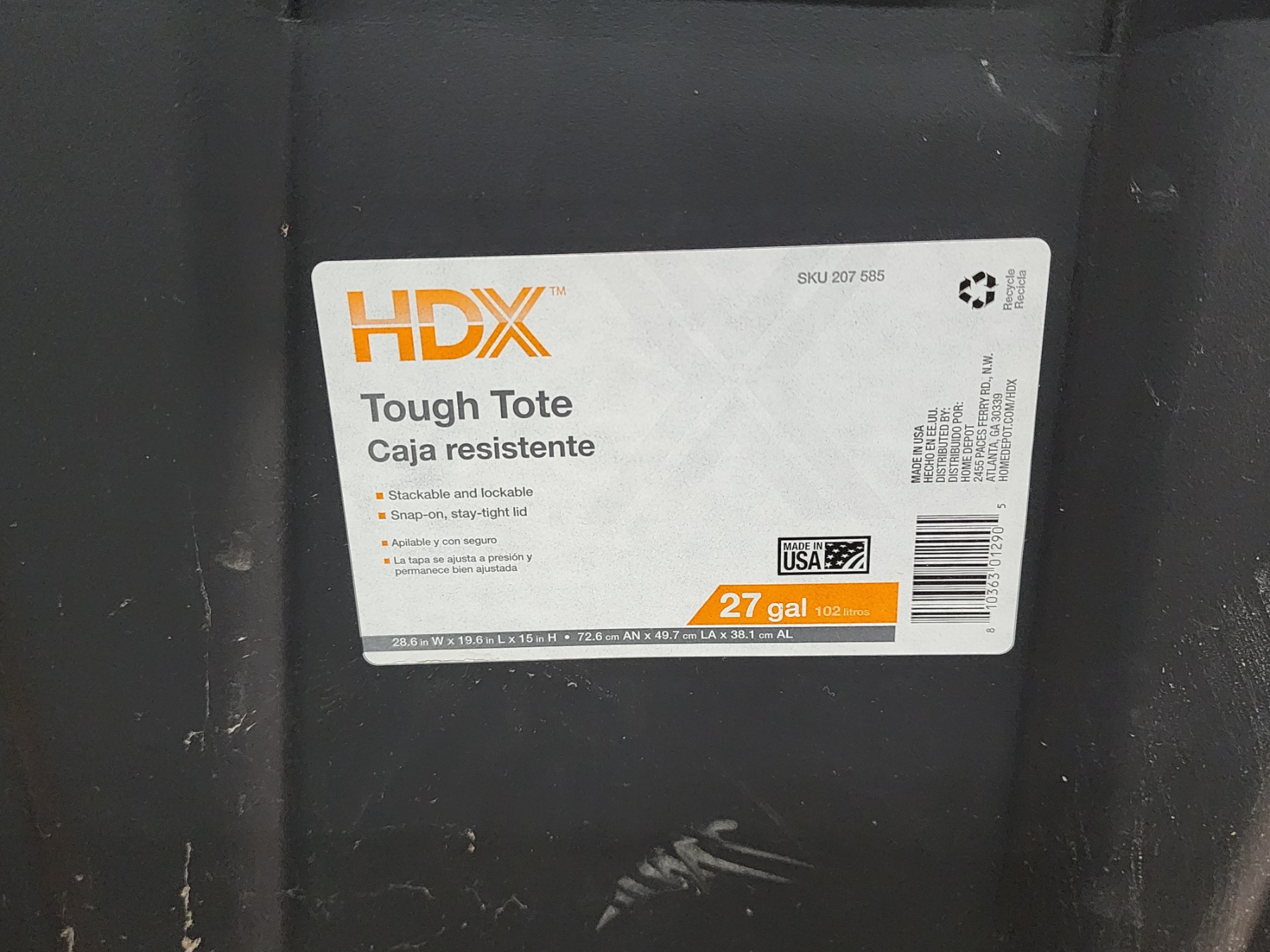 Heavy-Duty HDX 27-Gal Stackable Tote - 28.6in W x 19.6in L x 15in H