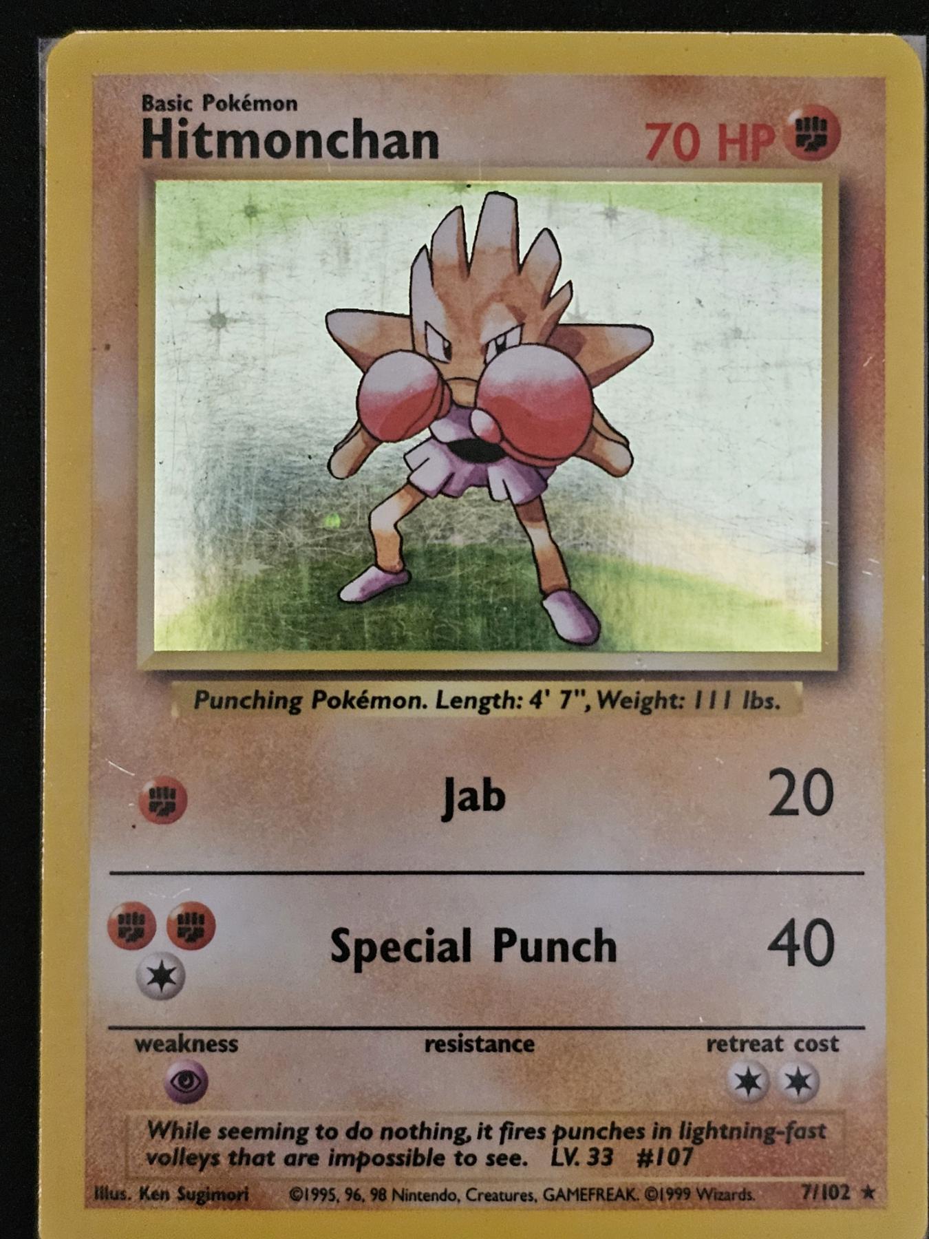 Hitmonchan 7/102 Rare Vintage Pokemon Trading Card - Comes with Protective Sleeve, GREAT CONDITION!!! PLACE YOUR BID AND CATCH 'EM ALL TODAY!!!