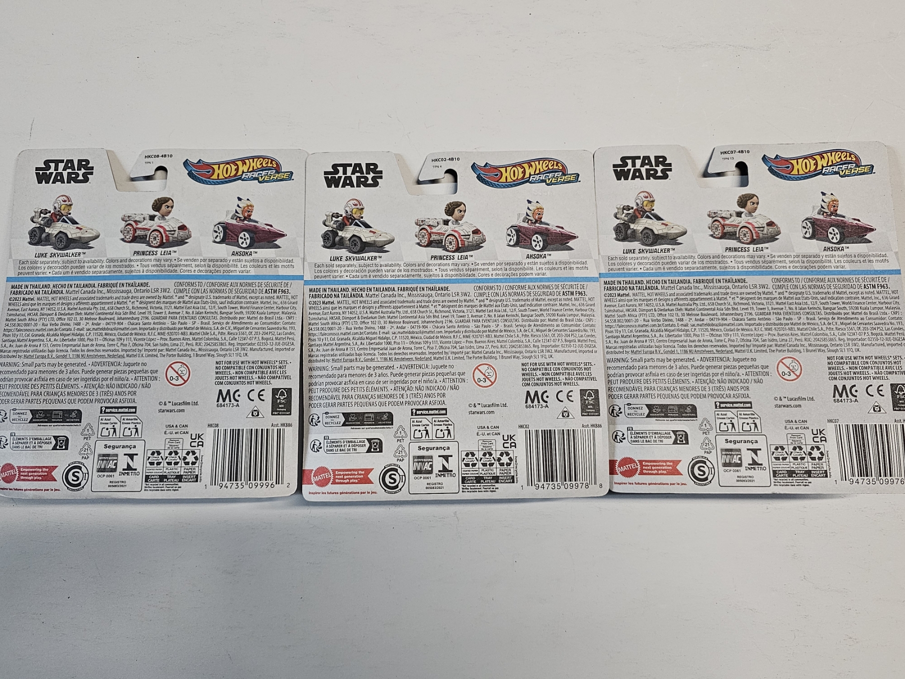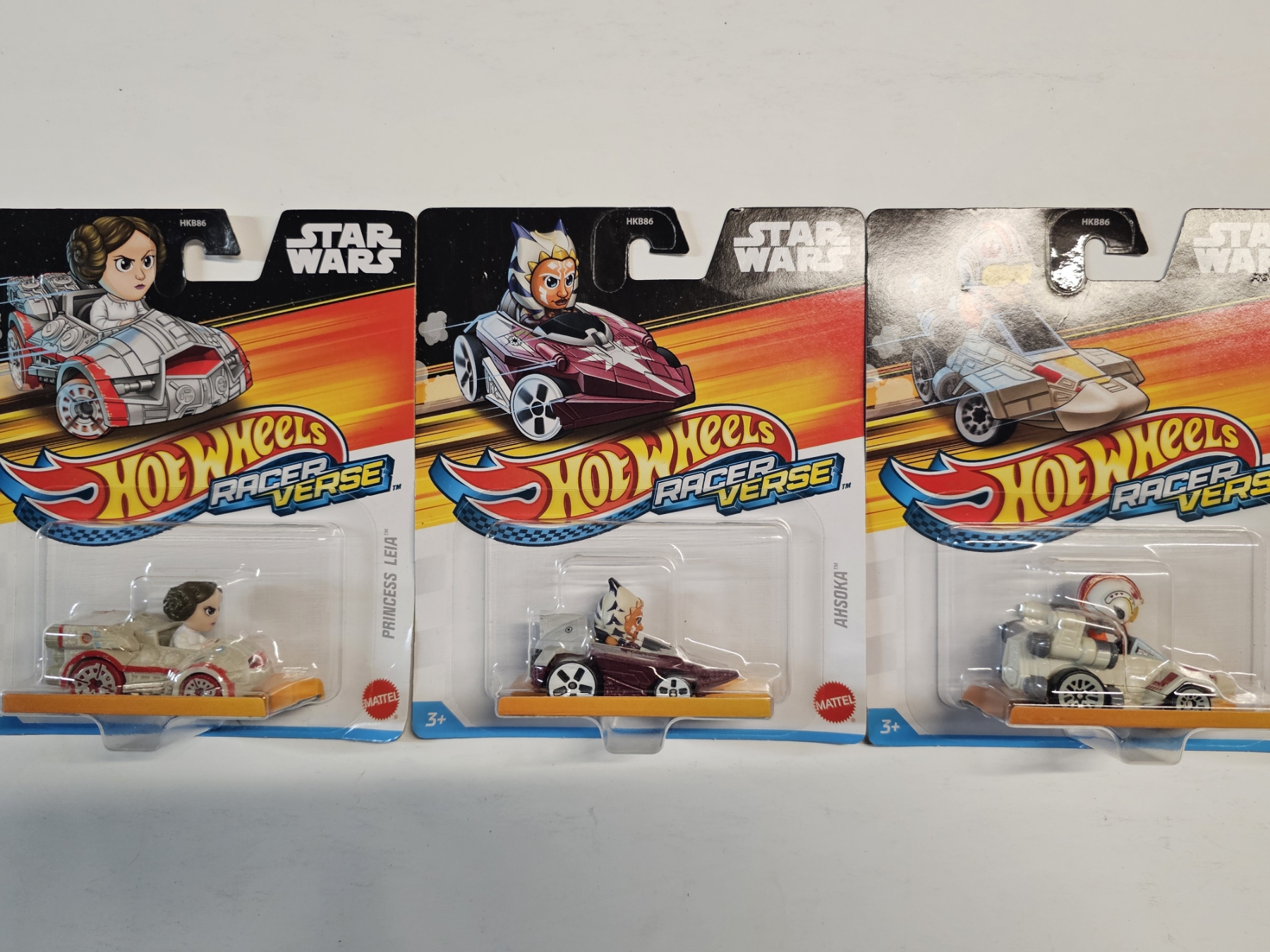Hot Wheels - Lot of (3) Star Wars Licensed - Princess Leia, Ahsoka, Luke Skywalker