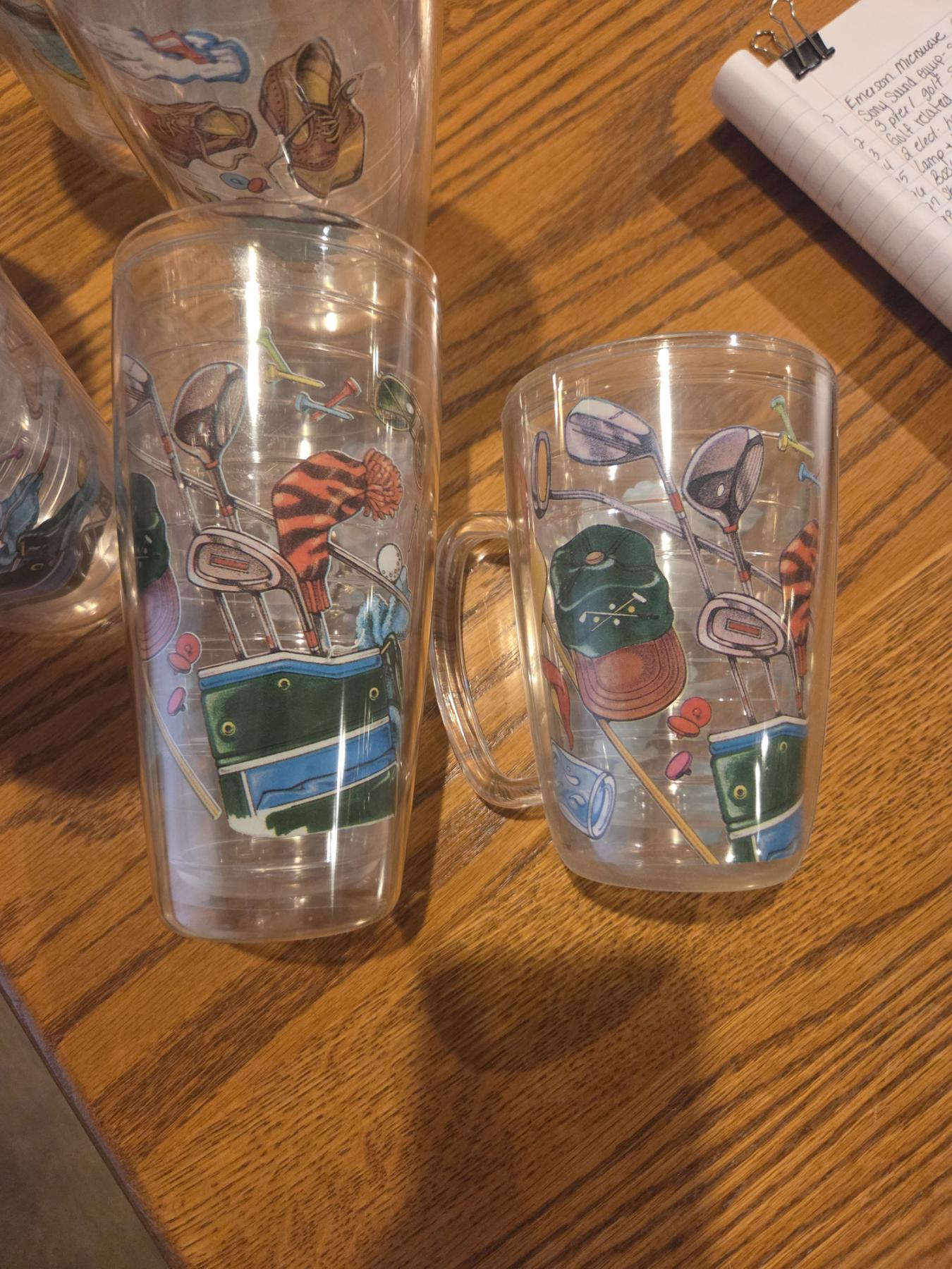Huge Group Of Plastic Golf Mugs & Cups, Placemats & Serving Tray