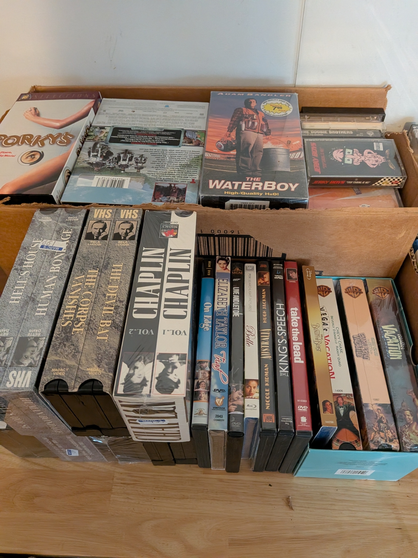Huge Lot Of DVD, VHS, Tapes, CDs & Metal Tower
