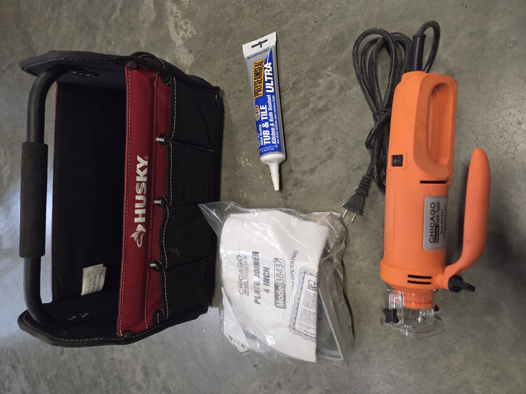 Husky 15'' Tool Tote Chicago Plate Joiner, And Tub & Tile Adhesive